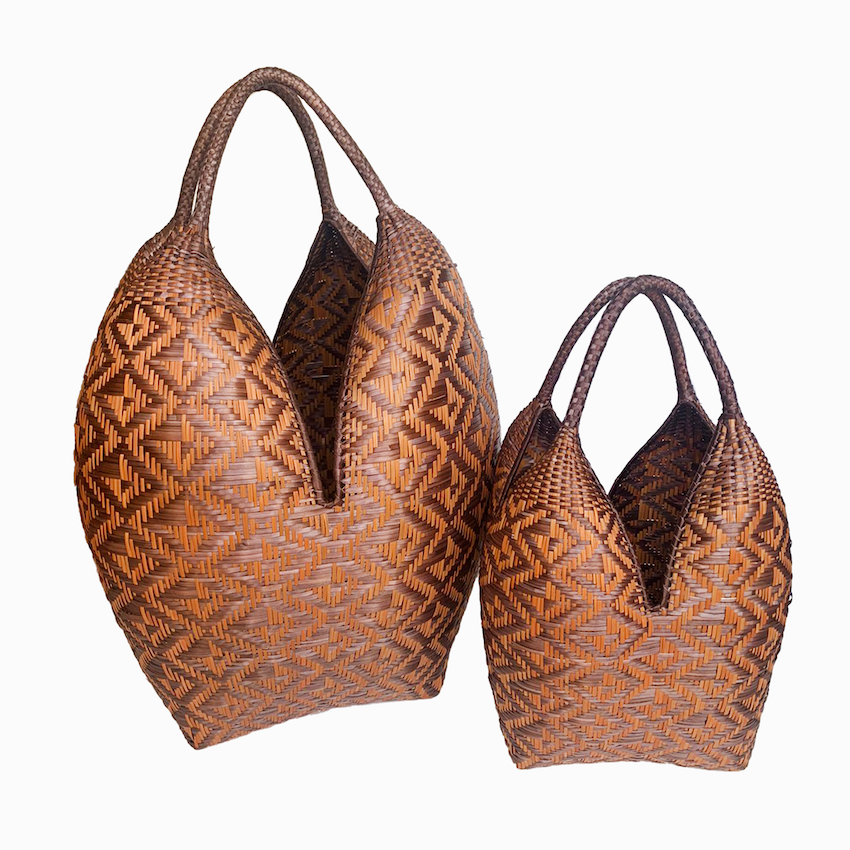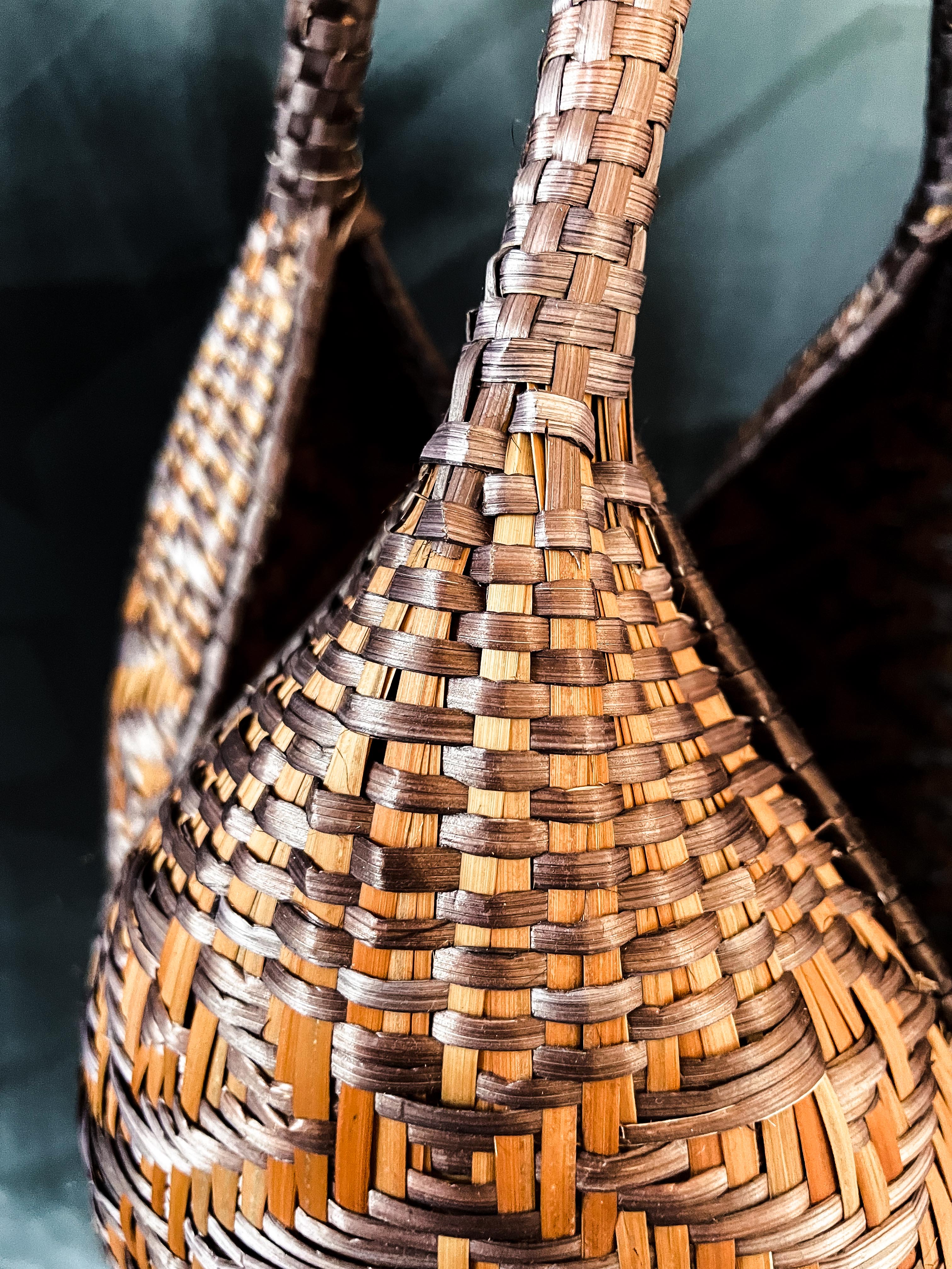 Diese außergewöhnlichen Körbe werden in Guapi, Cauca, Kolumbien, von Hand gewebt. Dieses besondere Handwerk wird bereits seit Generationen weitergegeben. Die Arbeit ist klar verteilt: Die Frauen weben die Körbe, die Männer wandern im Wald umher, um die notwendigen Materialien zu ernten.