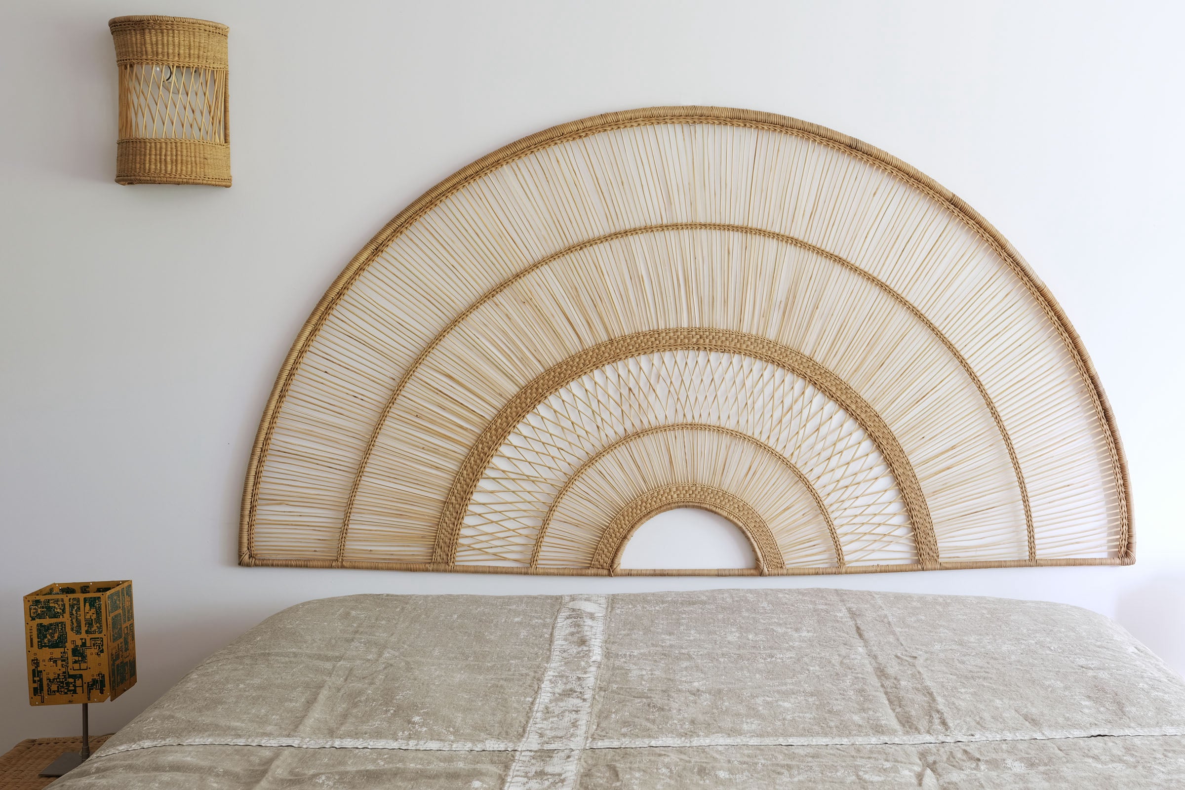 Atemberaubend schön ist dieses Kopfteil, handgefertigt aus Rattan in Malawi. Auch als Wanddekoration ein absolutes Highlight! Material: Cocculus hirsutus.