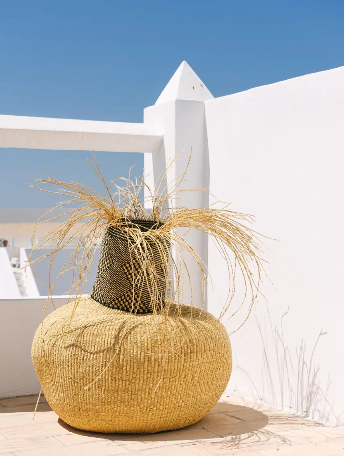 Die Weber nennen diesen Korb Tisanie Tia (Strange Tree Basket). Manchmal kämpfen Bäume unter den heißen und trockenen Bedingungen der Sahelzone. Sie beginnen seltsame Formen anzunehmen und noch mehr, wenn ihre Rinde für Medikamente geerntet wird.