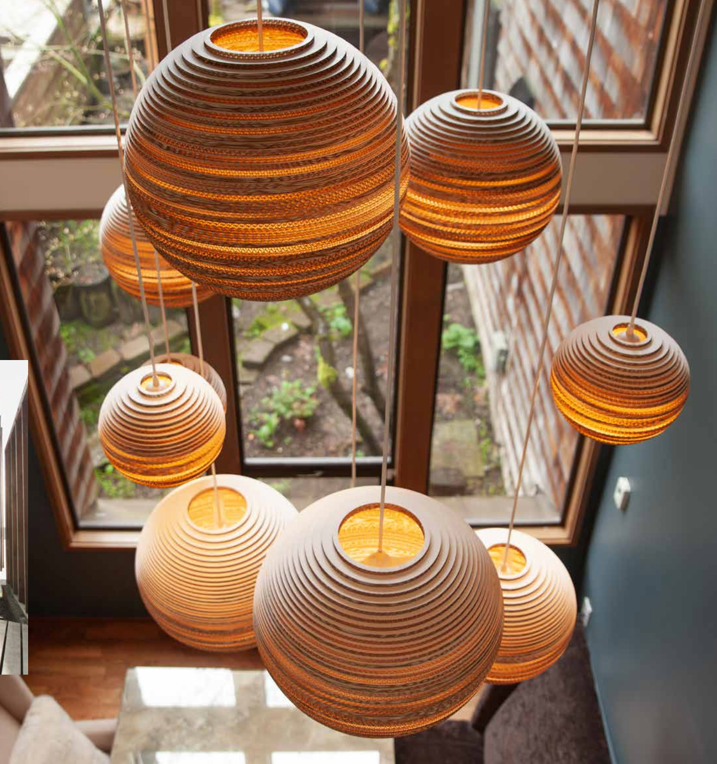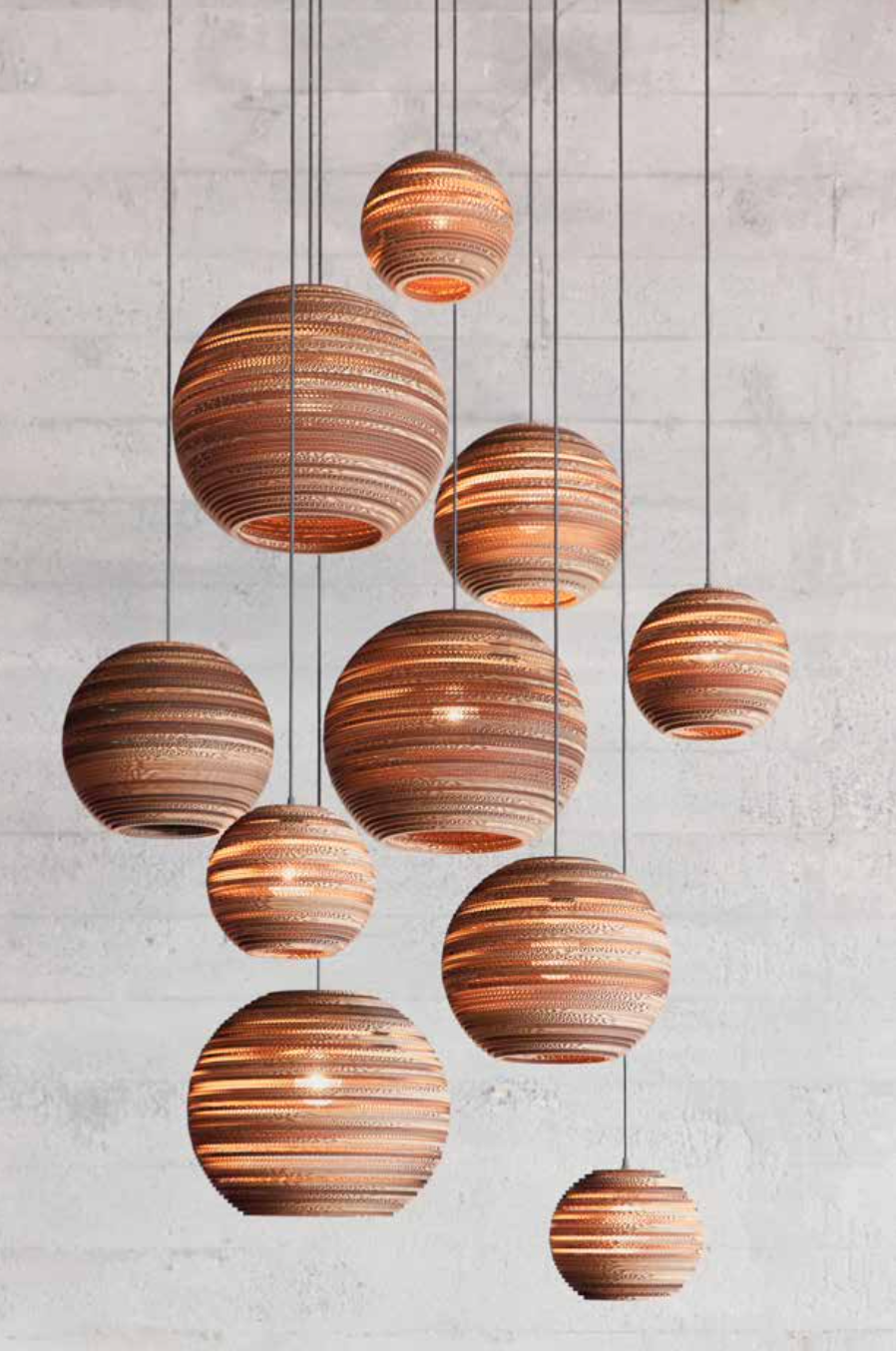 Designed in USA. Die aus recyceltem Karton handgefertigten Leuchten bieten eine warme, intime und funktionale Beleuchtung für jeden Anlass oder Raum. Jede Lampe ist präzise mit einem Laser geschnitten und von Hand mit ungiftigem Klebstoff zusammengebaut. Alle Leuchten sind mit einem ungiftigen Flammschutzmittel behandelt.