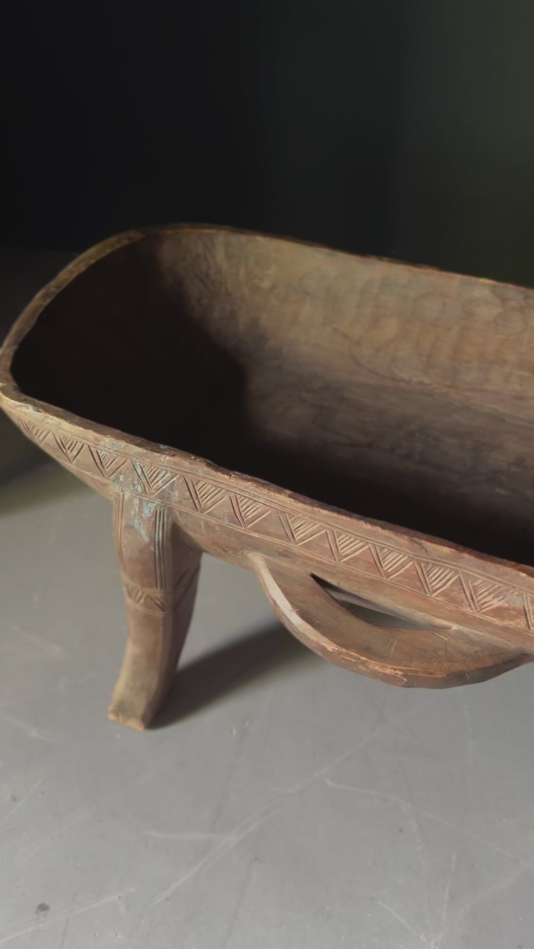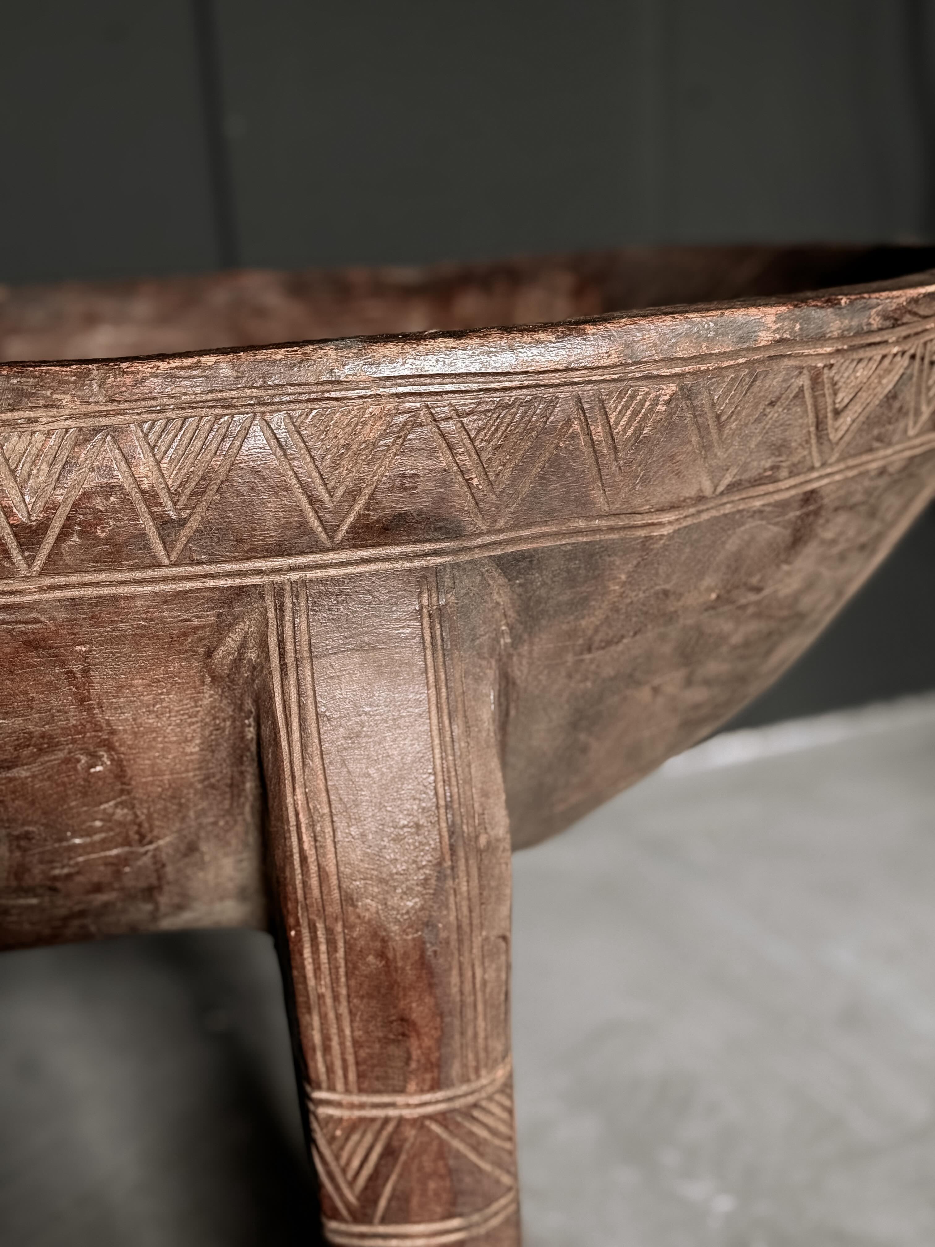 Wunderschöne alte Jinka Bowl aus Äthiopien. Mit ihren vier Beinen und ihrer beeindruckenden Größe eignet sie sich hervorragend als Coffee Table.
