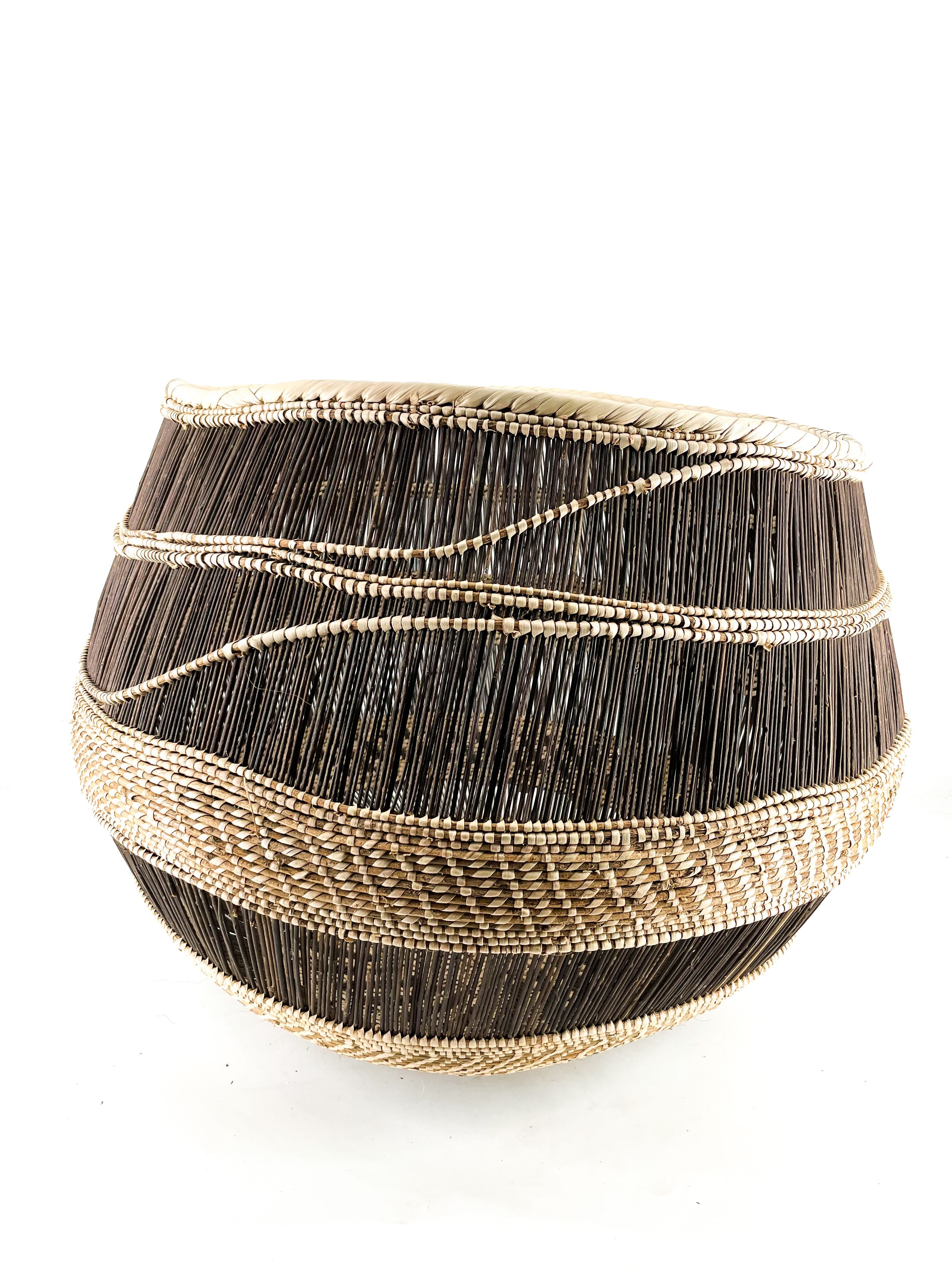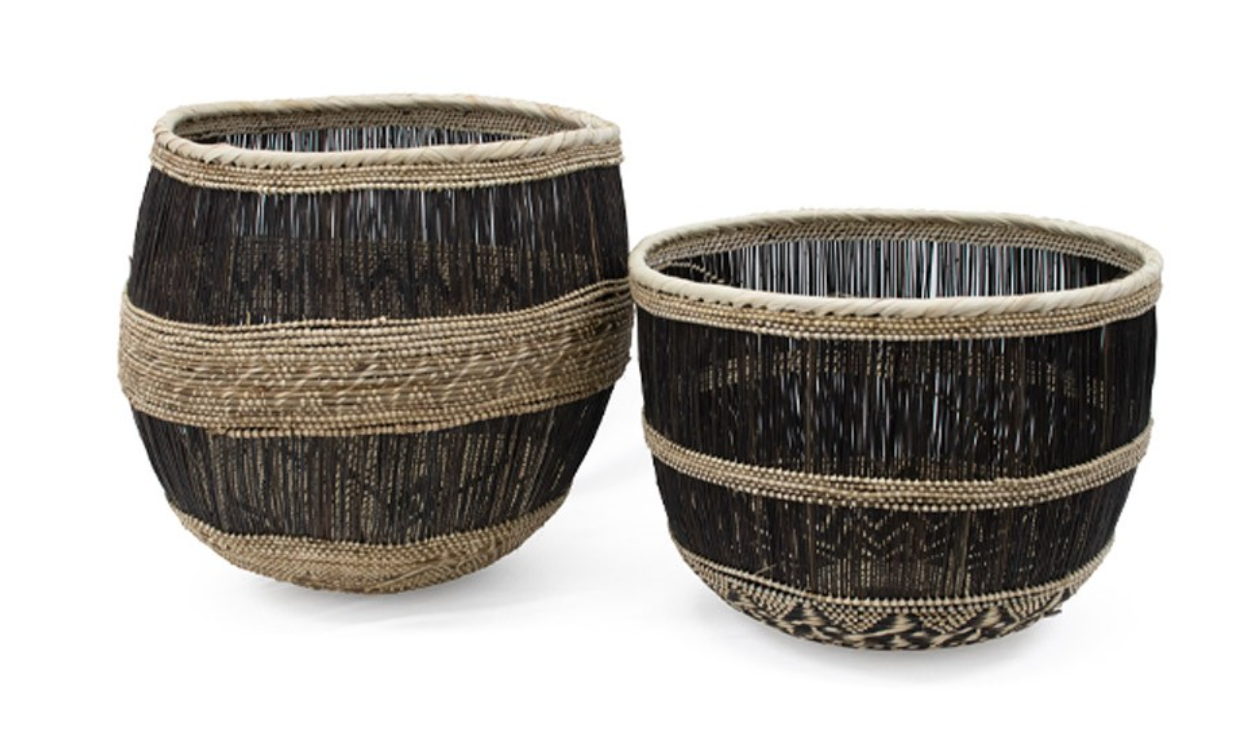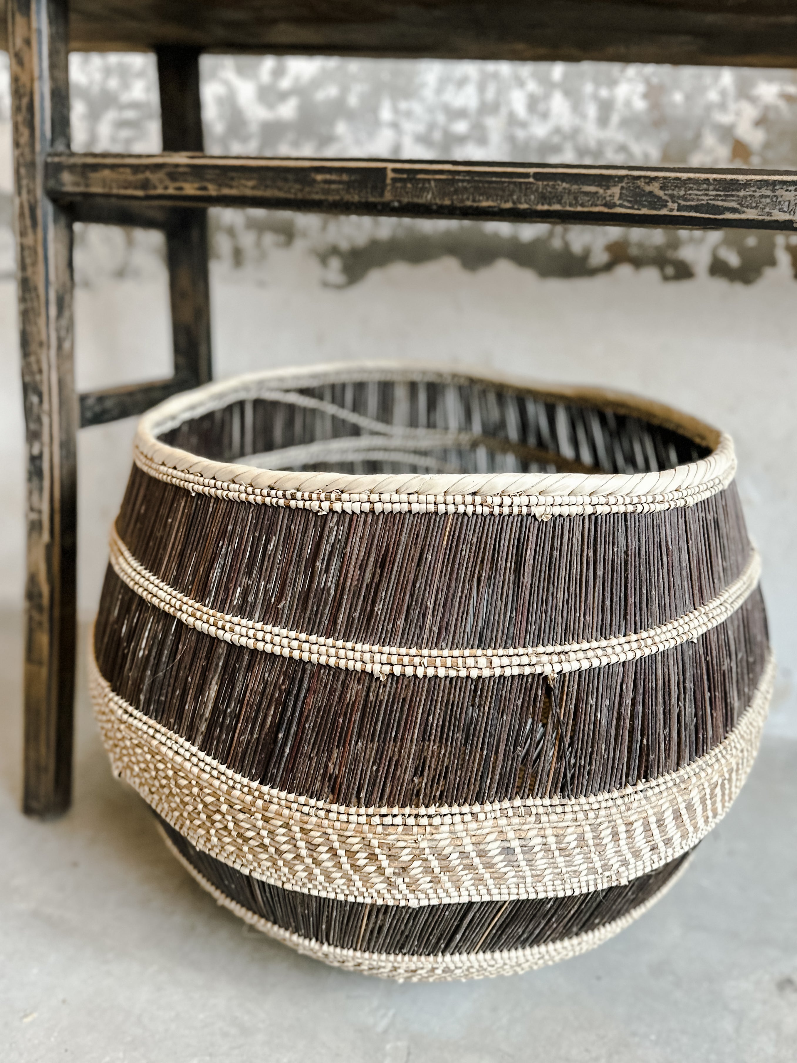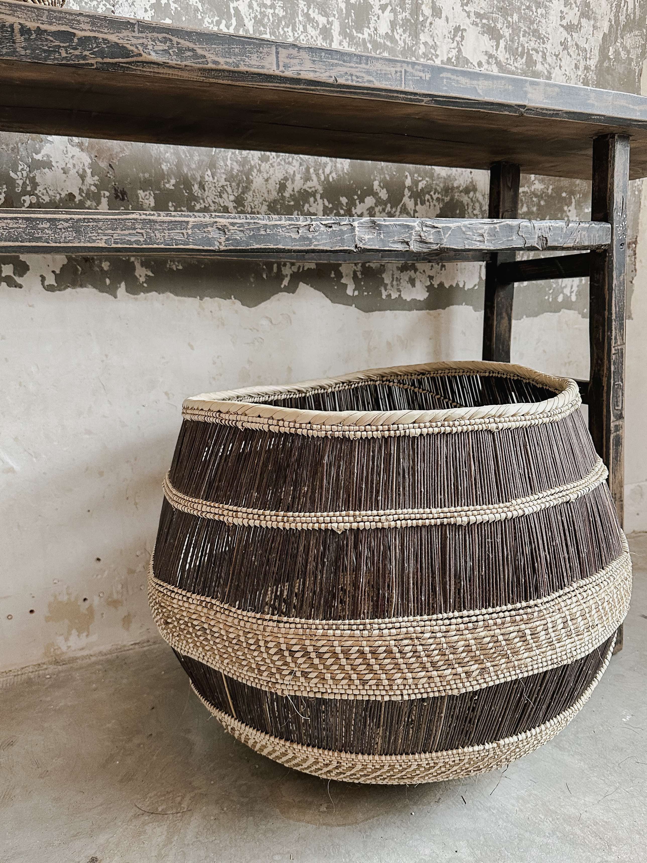 Diese einzigartigen Körbe aus Sambia werden aus Flussschilf gefertigt und mit natürlichen Rindenfarbstoffen gefärbt. Die Muster variieren leicht je nach Korb. Die perfekte Größe zum Aufbewahren von Decken, Kissen oder Wäsche.