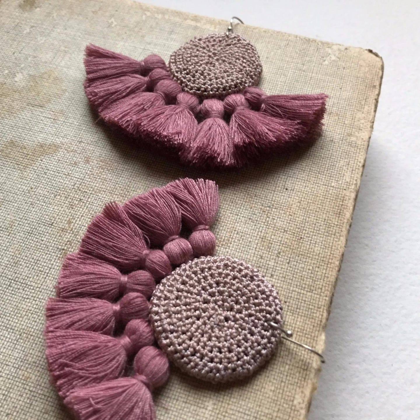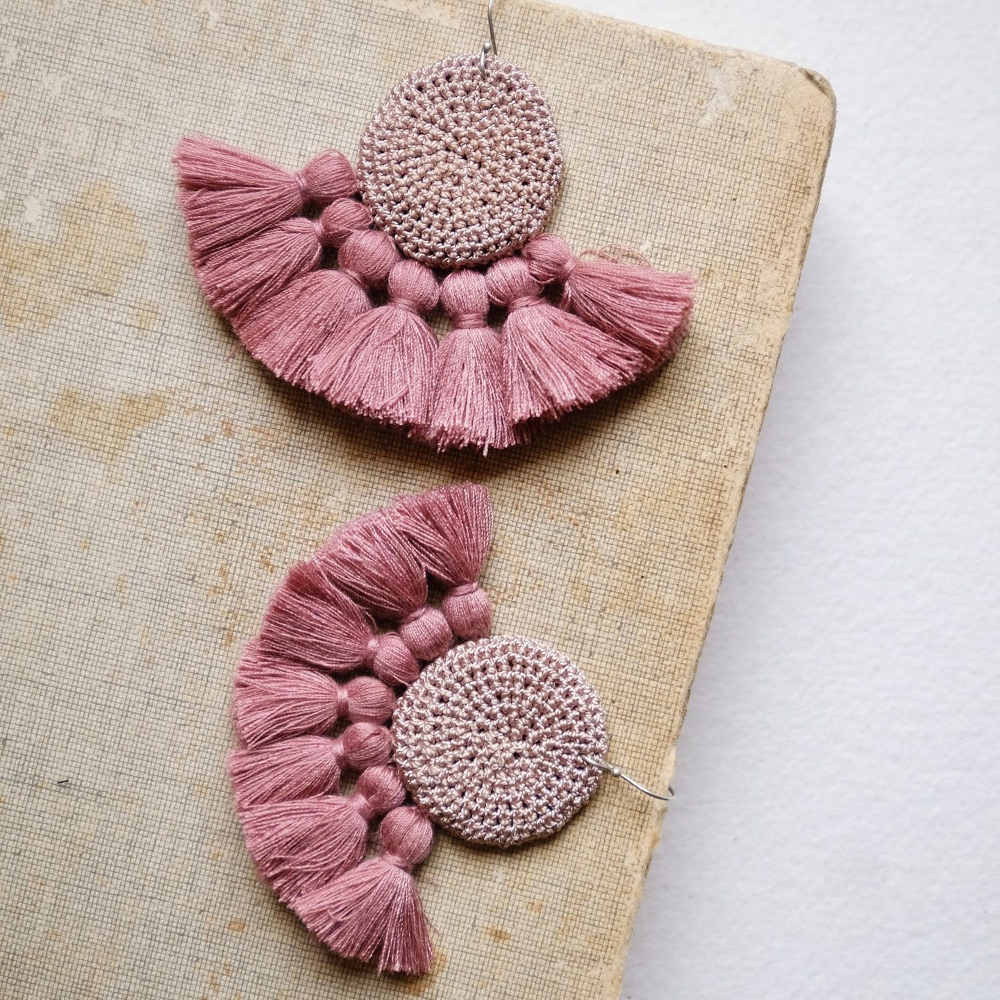 Silky Mink farbige Häkelscheibe mit handgefertigten Baumwollquasten in Dusty Pink.