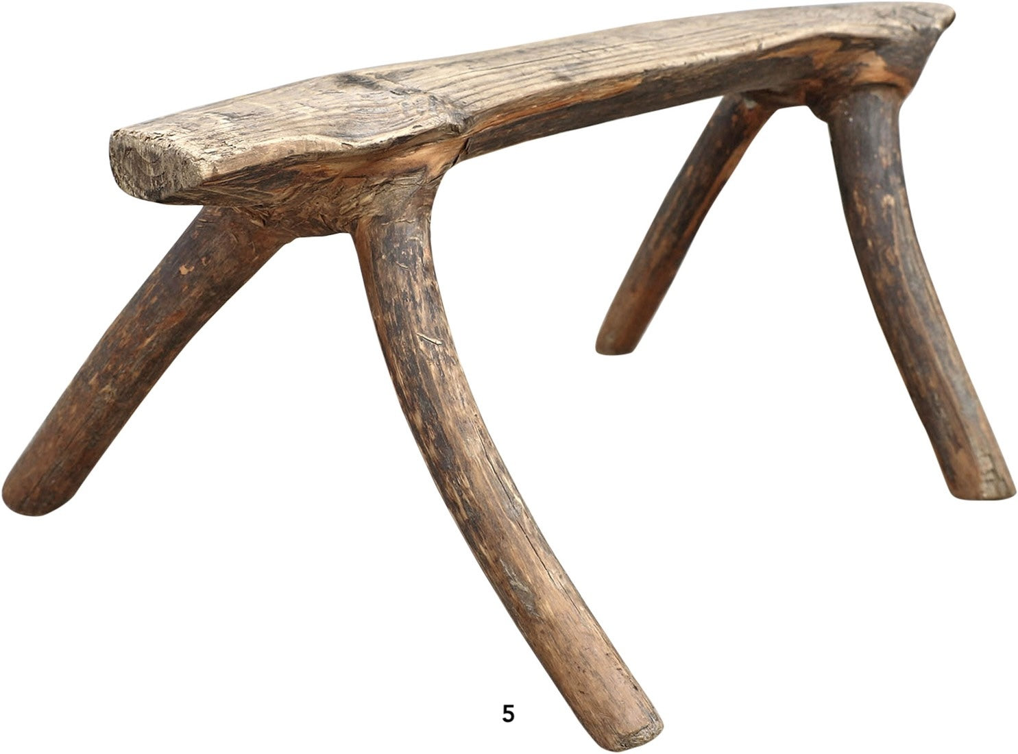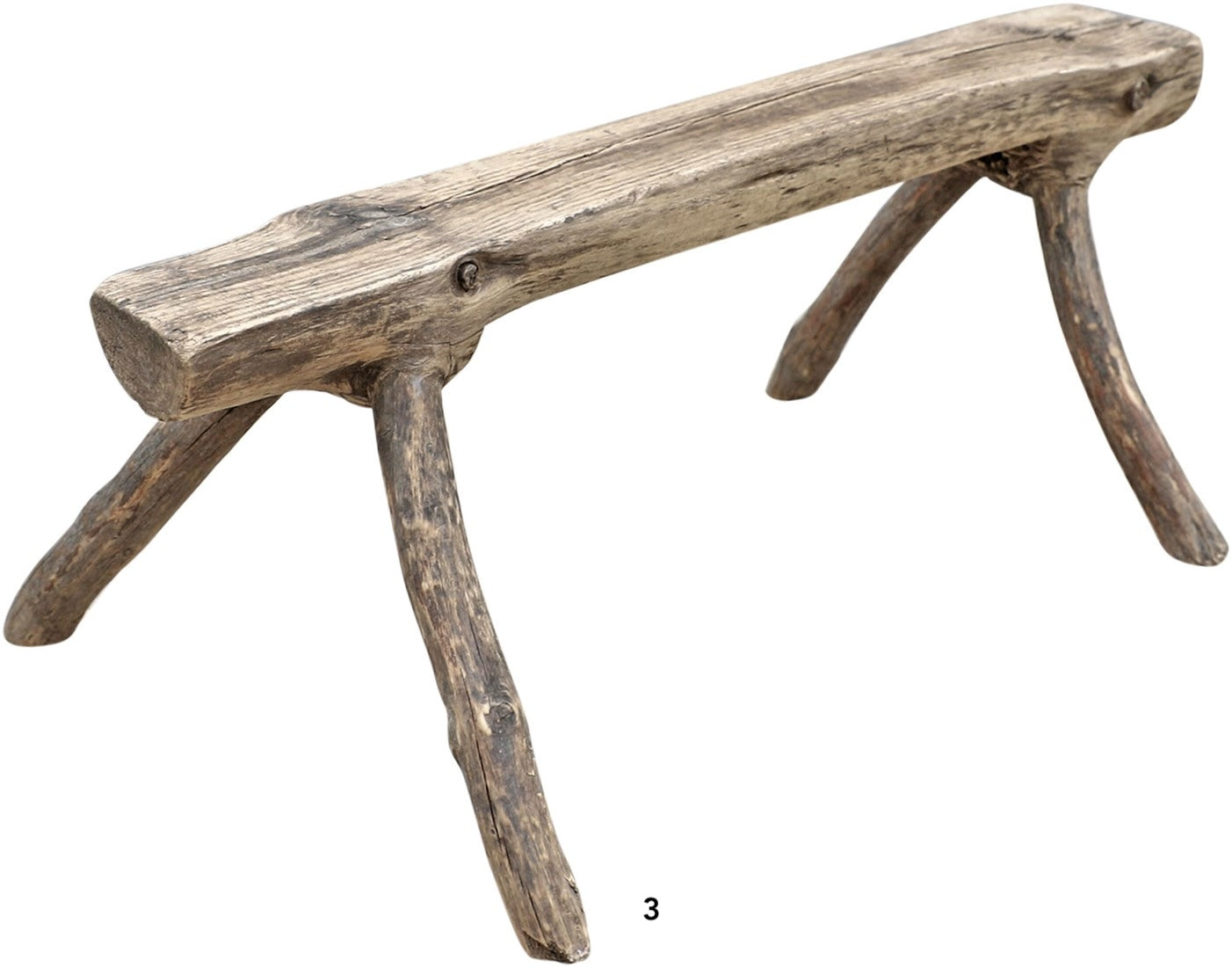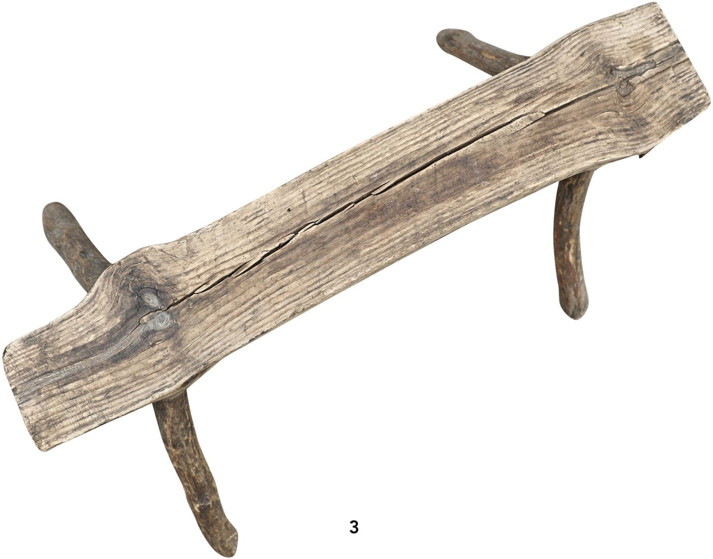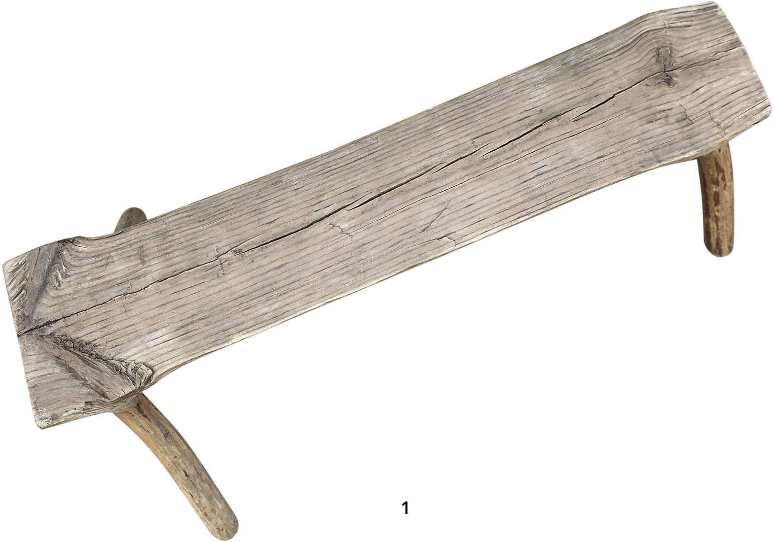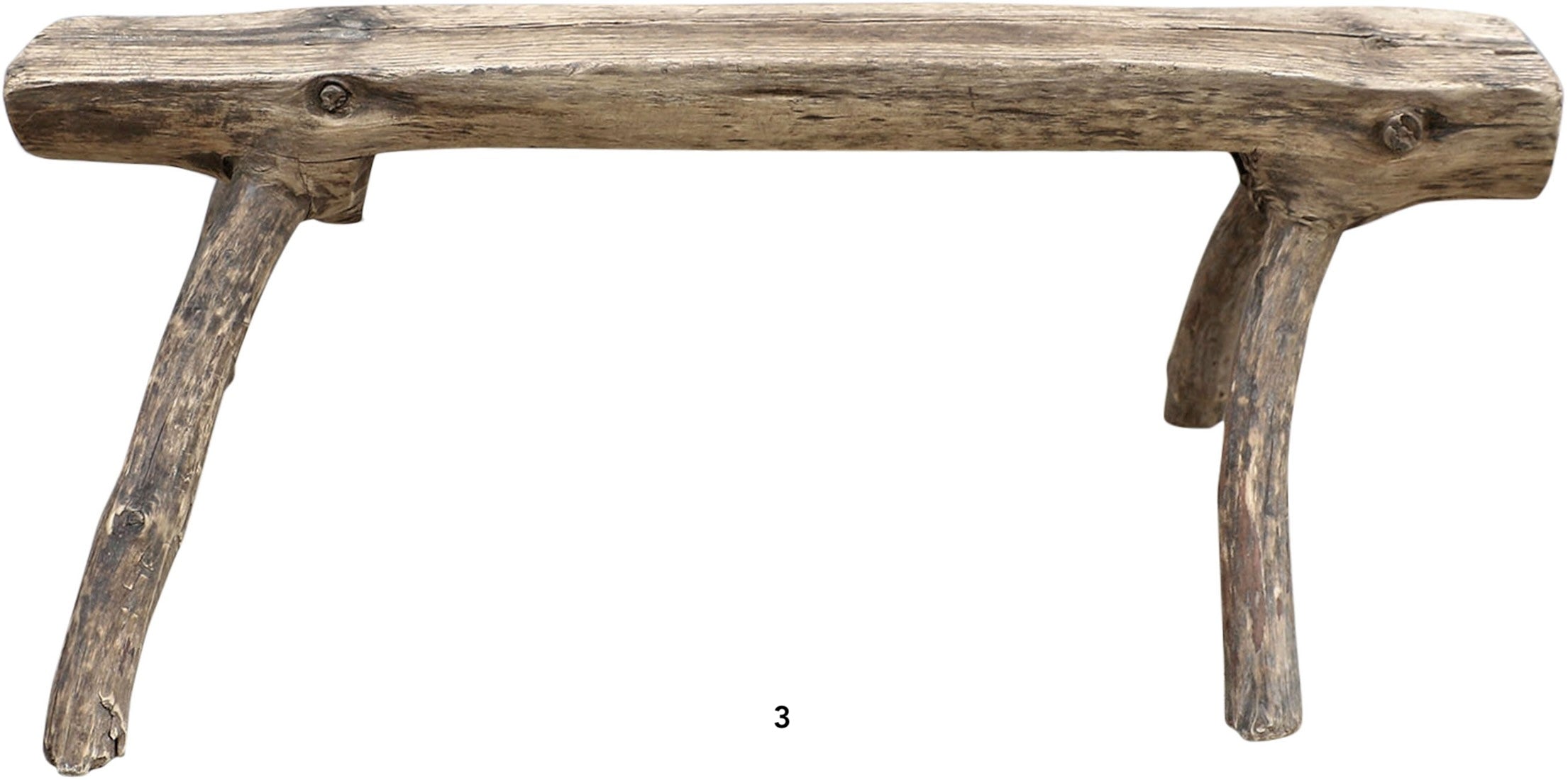 Diese kleine Kiefernbank aus China besticht durch ihre ursprüngliche Form. Sie wurde so gefertigt, wie das Holz gewachsen ist. Jede Bank ist ein Unikat und stammt aus der aus der Provinz Shandong, Mitte 20. Jahrhundert.