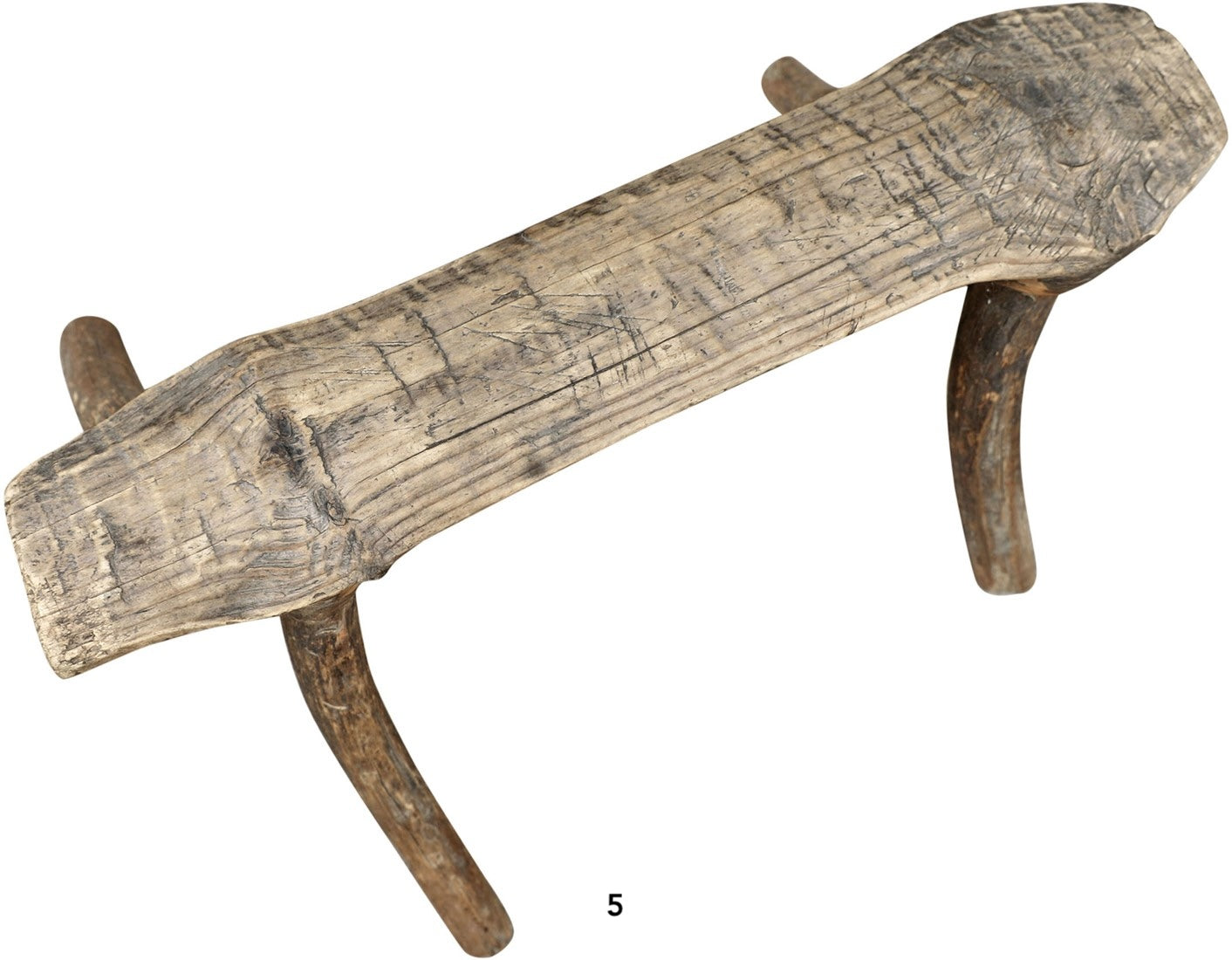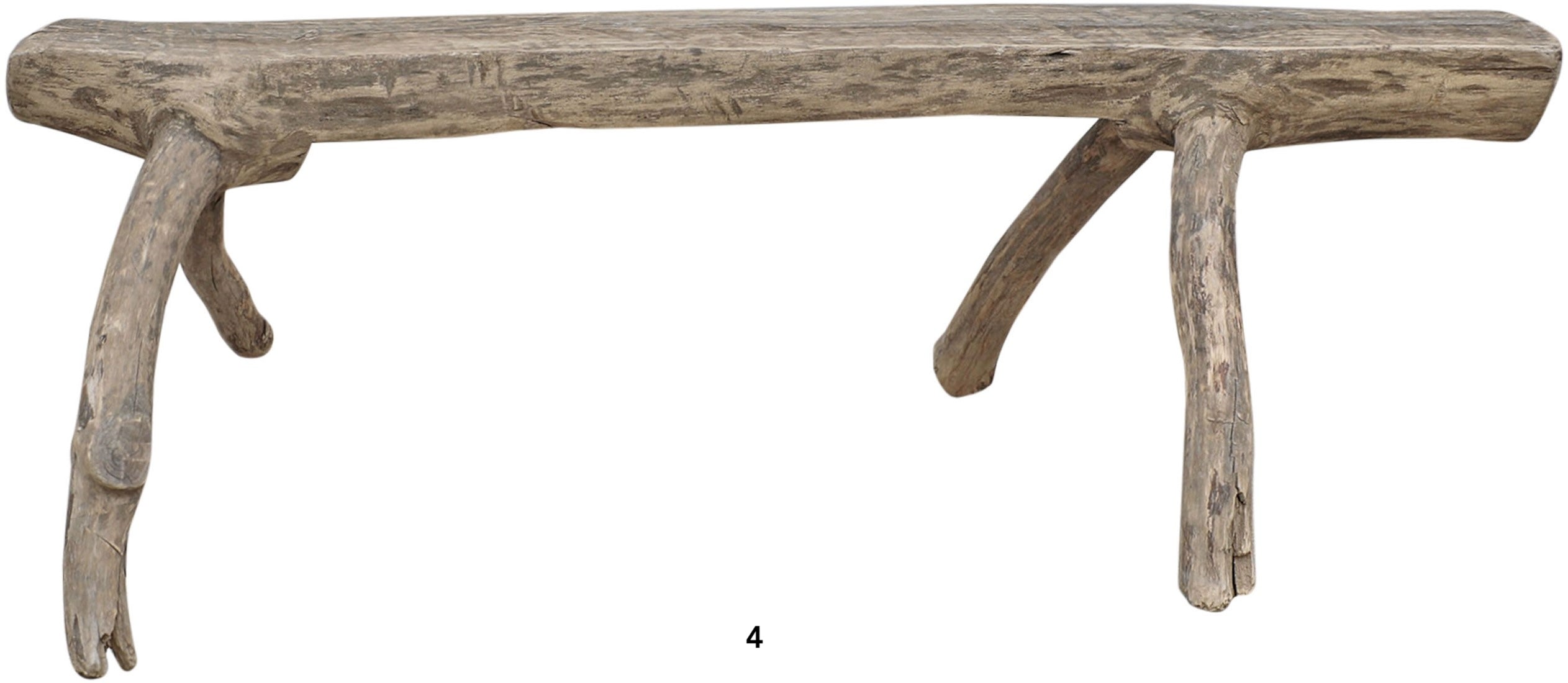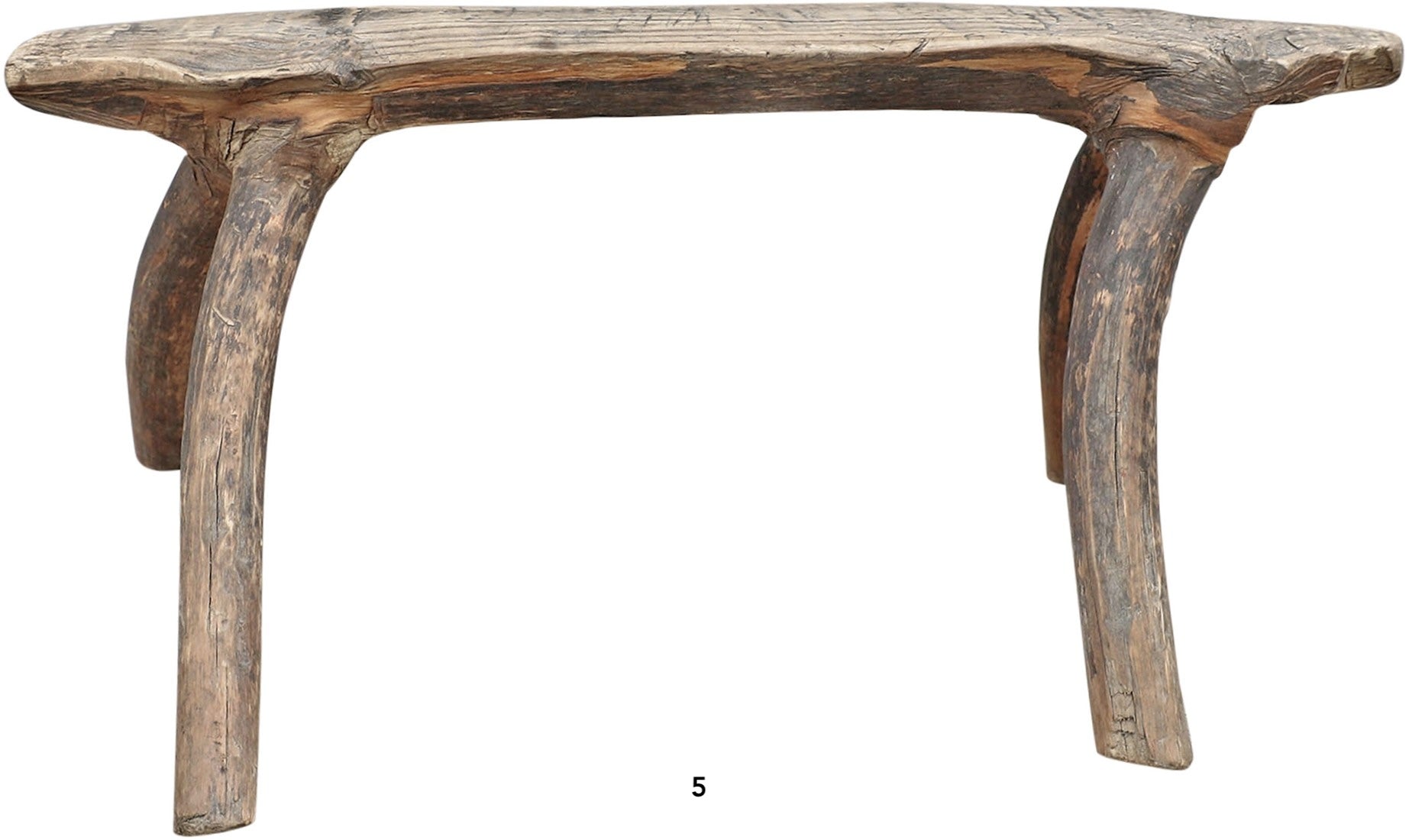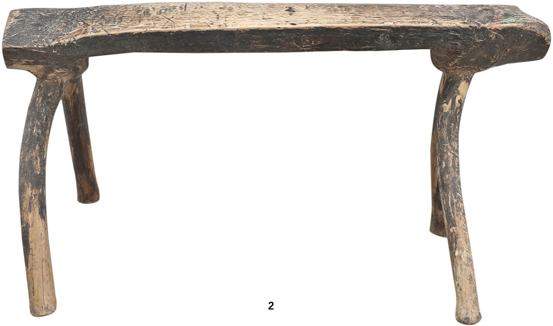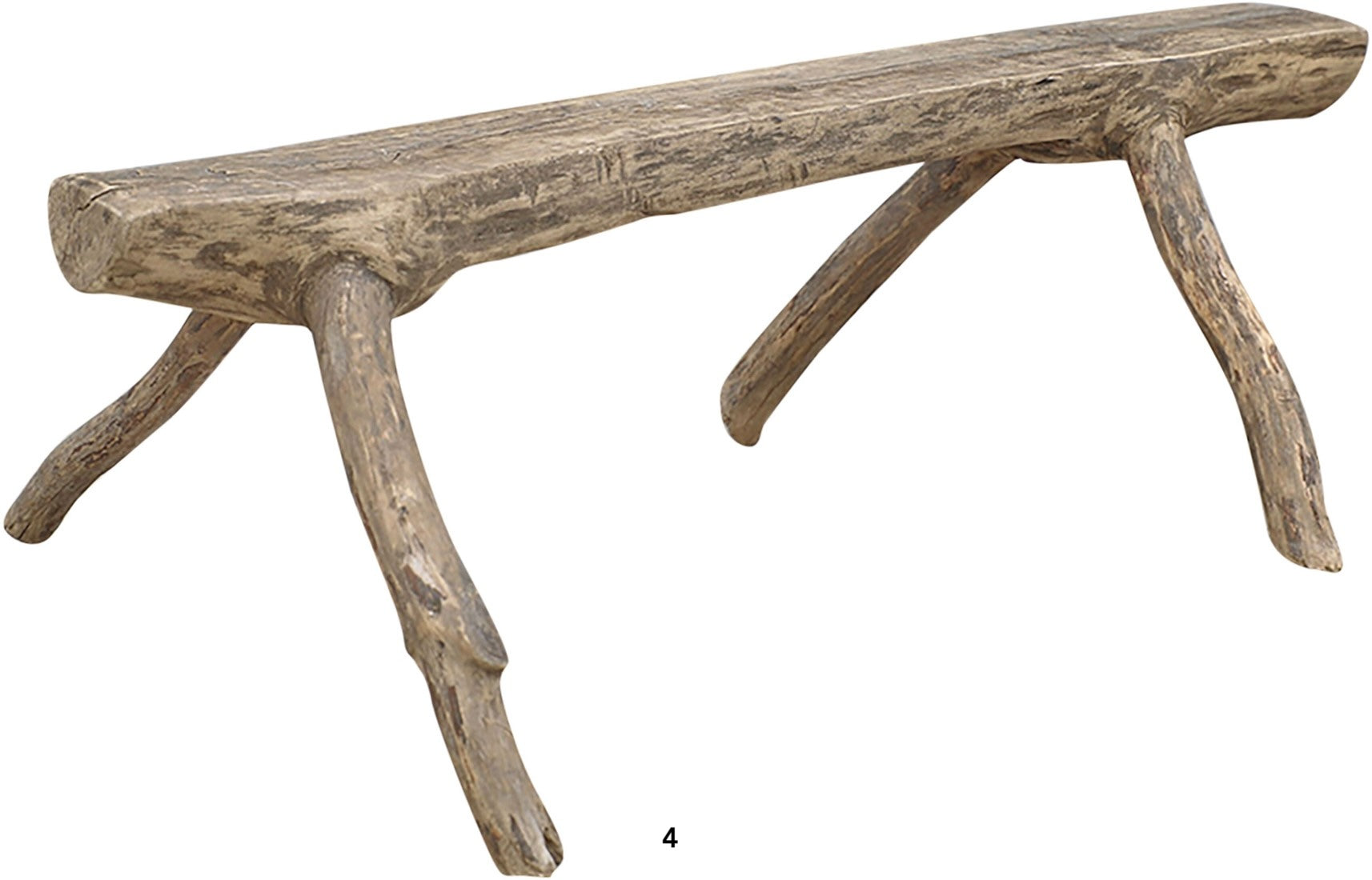 Diese kleine Kiefernbank aus China besticht durch ihre ursprüngliche Form. Sie wurde so gefertigt, wie das Holz gewachsen ist. Jede Bank ist ein Unikat und stammt aus der aus der Provinz Shandong, Mitte 20. Jahrhundert.