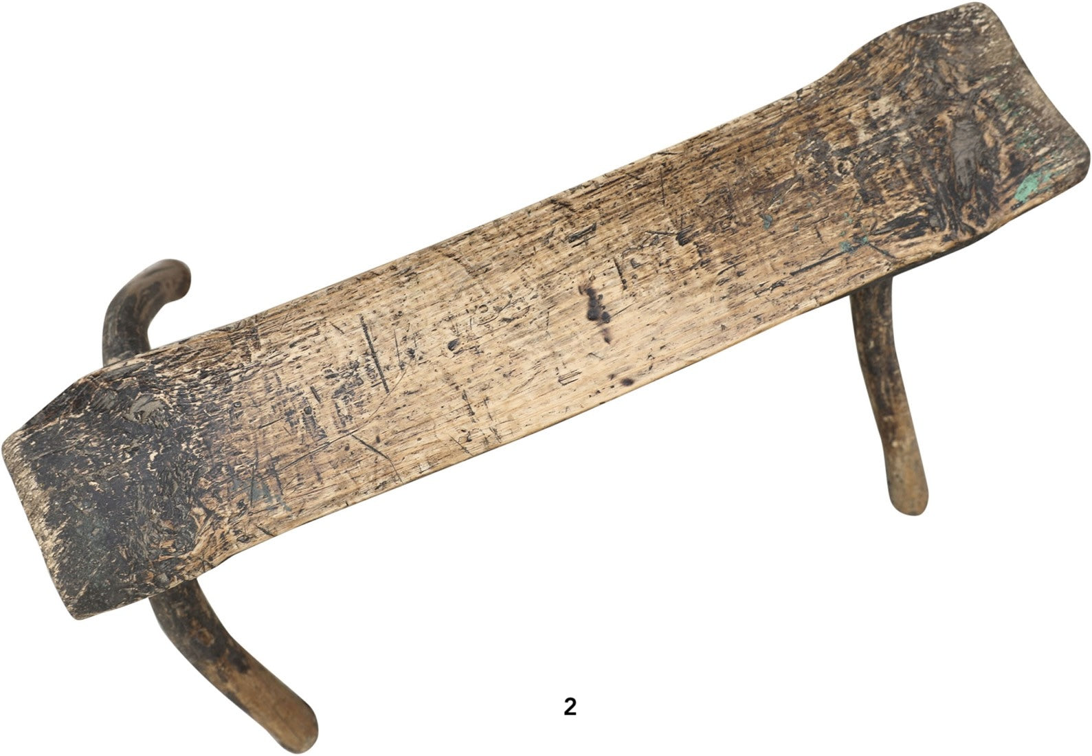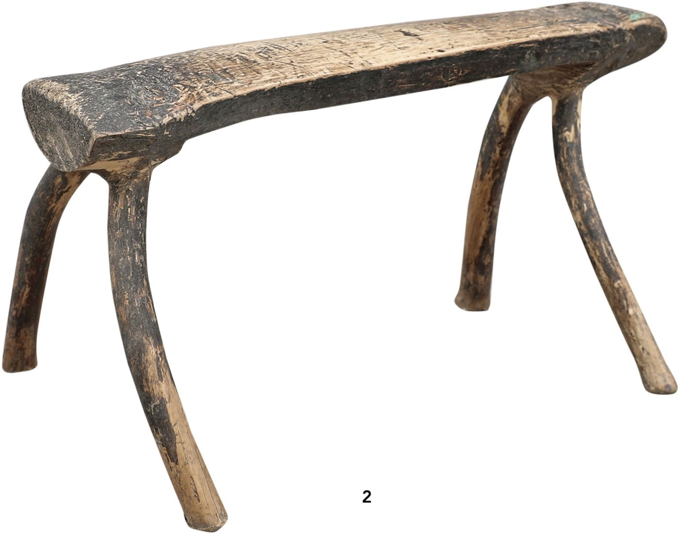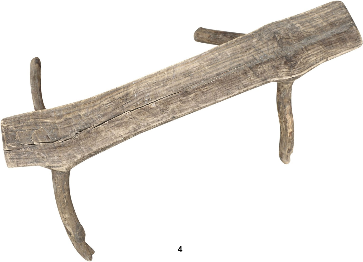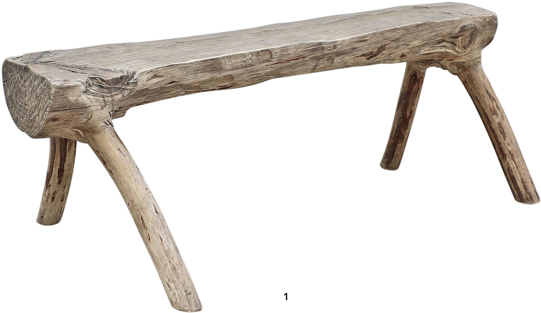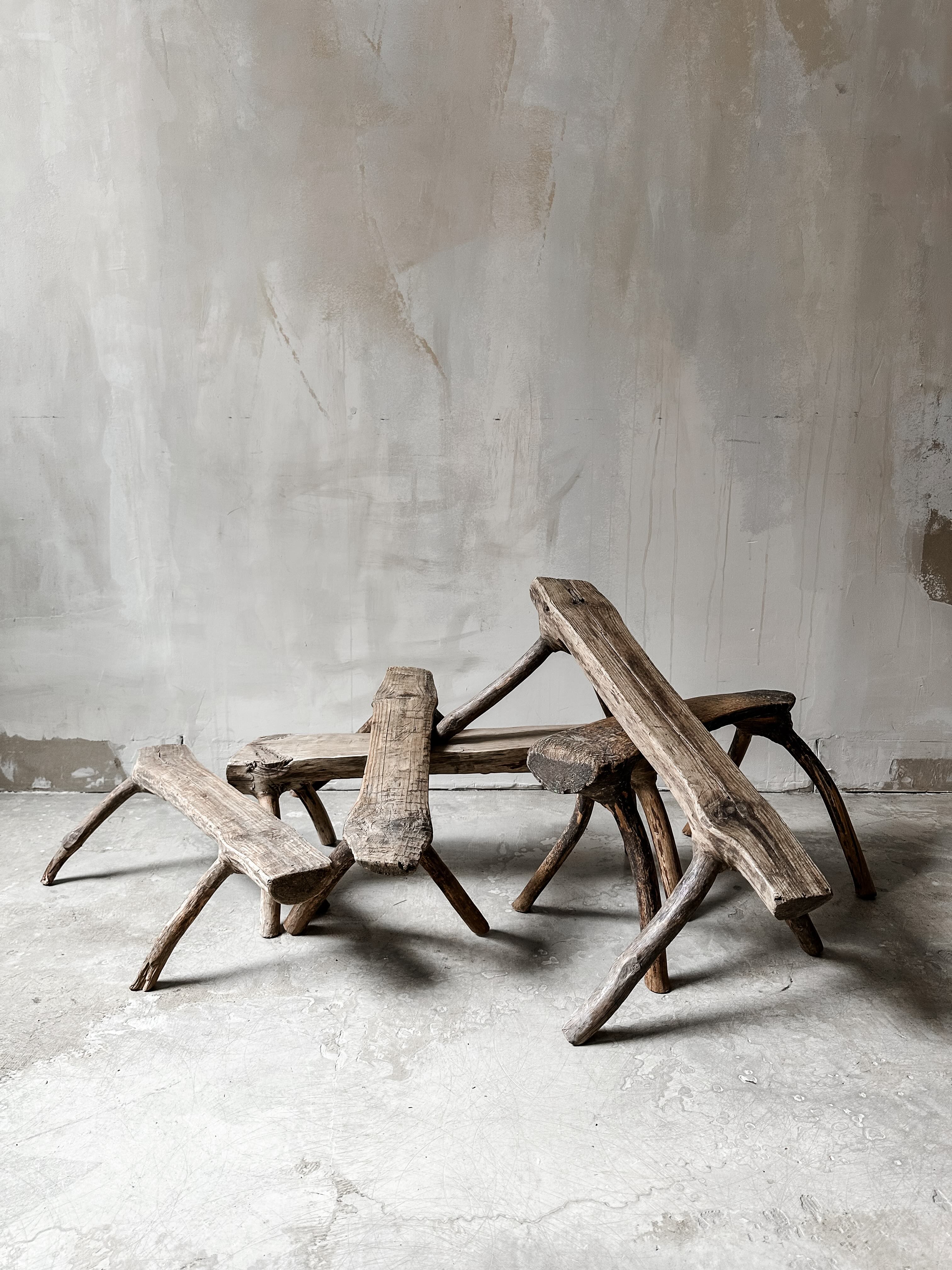 Diese kleine Kiefernbank aus China besticht durch ihre ursprüngliche Form. Sie wurde so gefertigt, wie das Holz gewachsen ist. Jede Bank ist ein Unikat und stammt aus der aus der Provinz Shandong, Mitte 20. Jahrhundert.