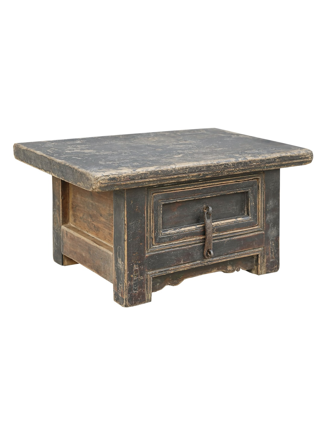 Diese kompakten, vom Alltag gezeichneten Möbelstücke - einst genutzt in Dorfschulen oder häuslichen Lernräumen - eignen sich heute hervorragend als Nachttische. Aus robustem Holz von Hand gefertigt, tragen sie sichtbare Spuren der Vergangenheit: abgerundete Ecken, Tintenflecken und hin und wieder ein eingeritzter Name erzählen vom stillen Rhythmus des frühen Lernens.