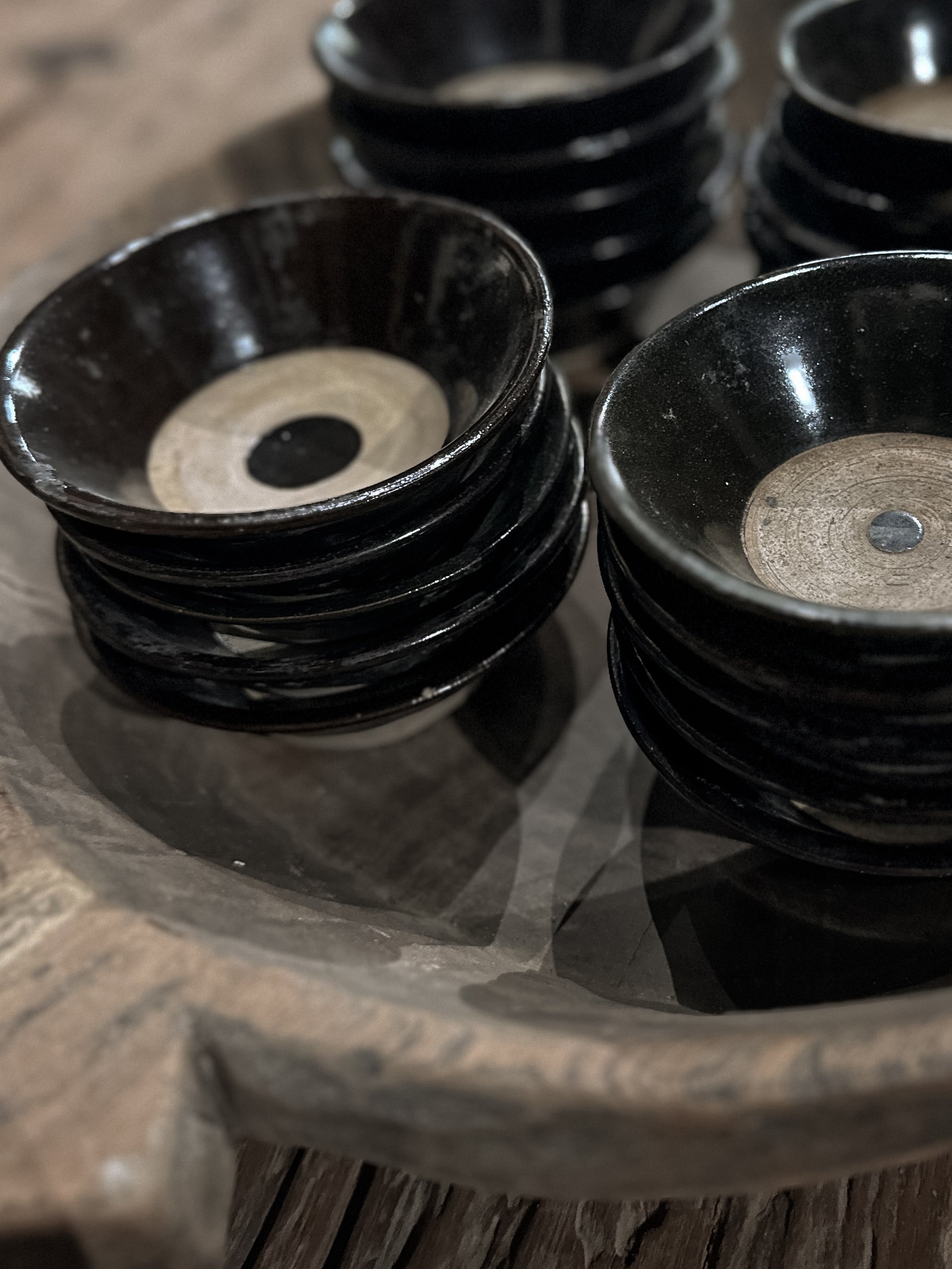 Alte, schwarz-braun glasierte Steingut-Schale aus Nordchina. Wundervolle Dekoration in jedem Zuhause.