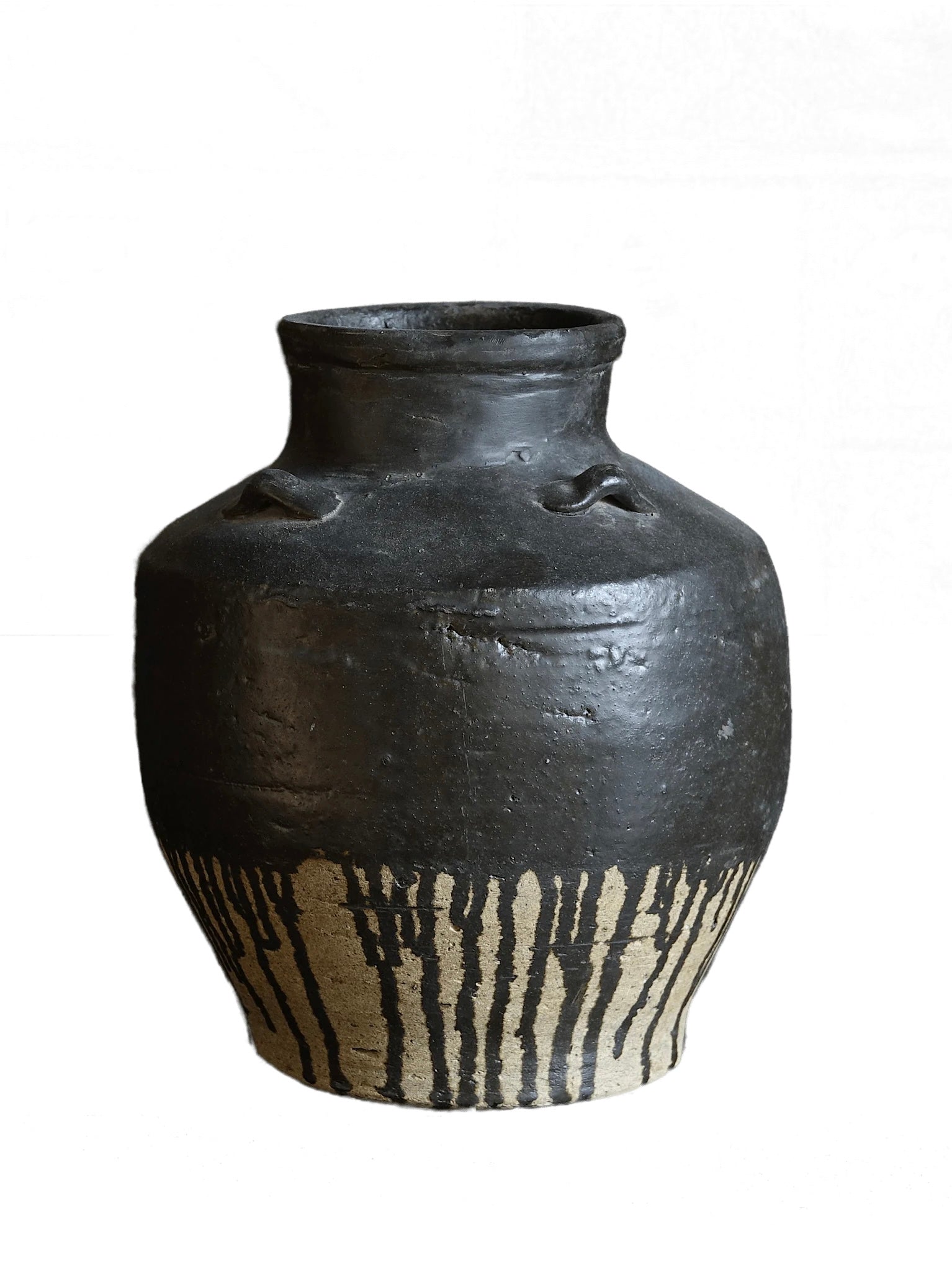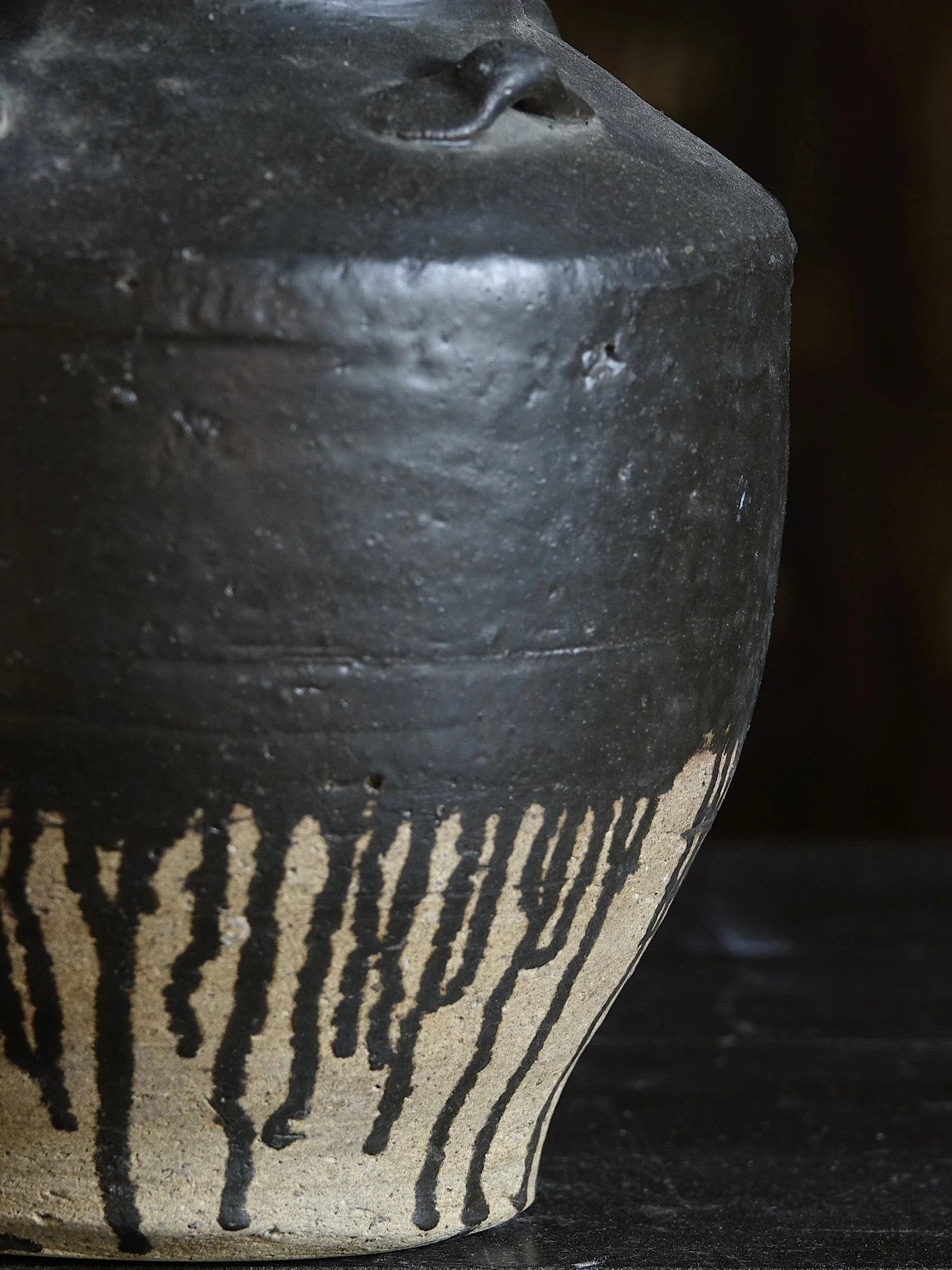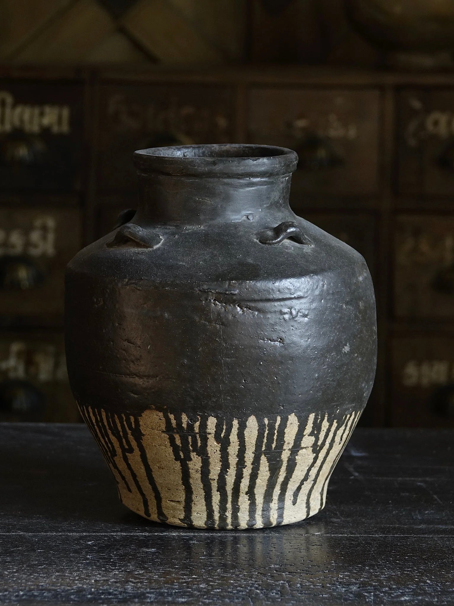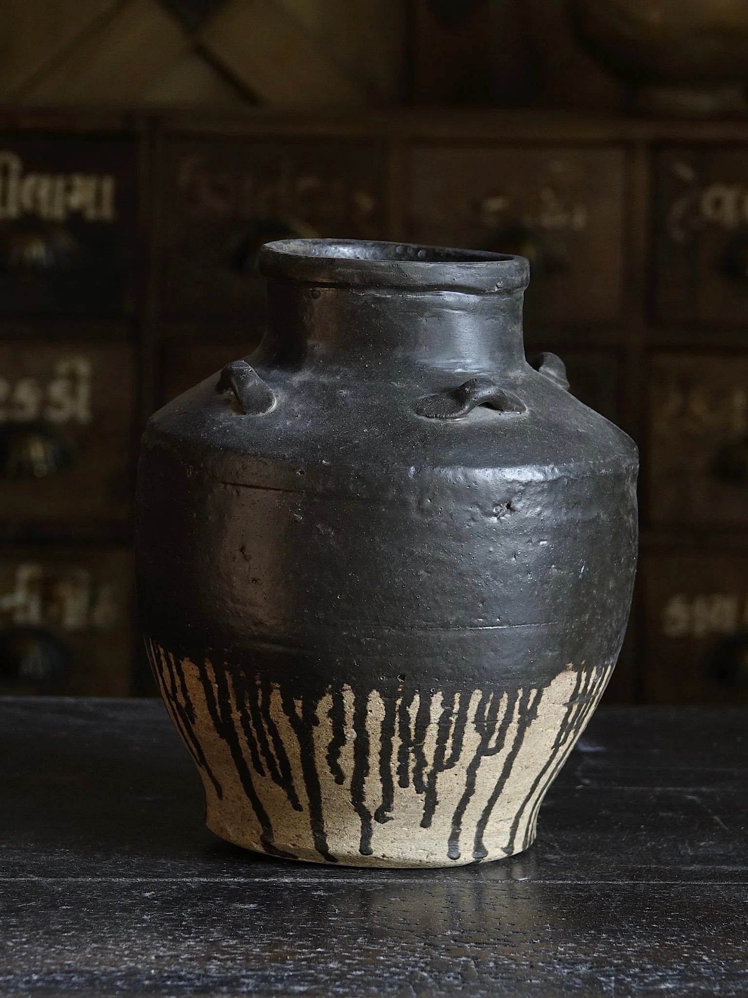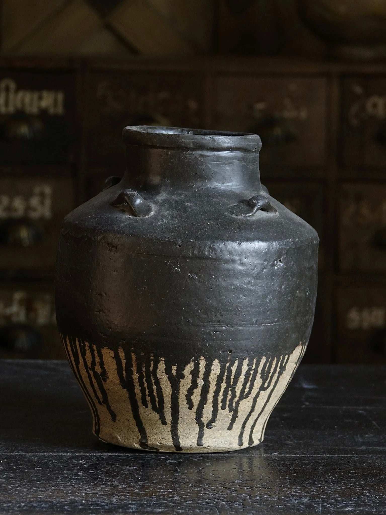 Einzigartiger Keramiktopf aus Indien. Die verlaufene Farbe und seine Unregelmäßigkeiten macht ihn zu einem kleinen Kunstwerk.