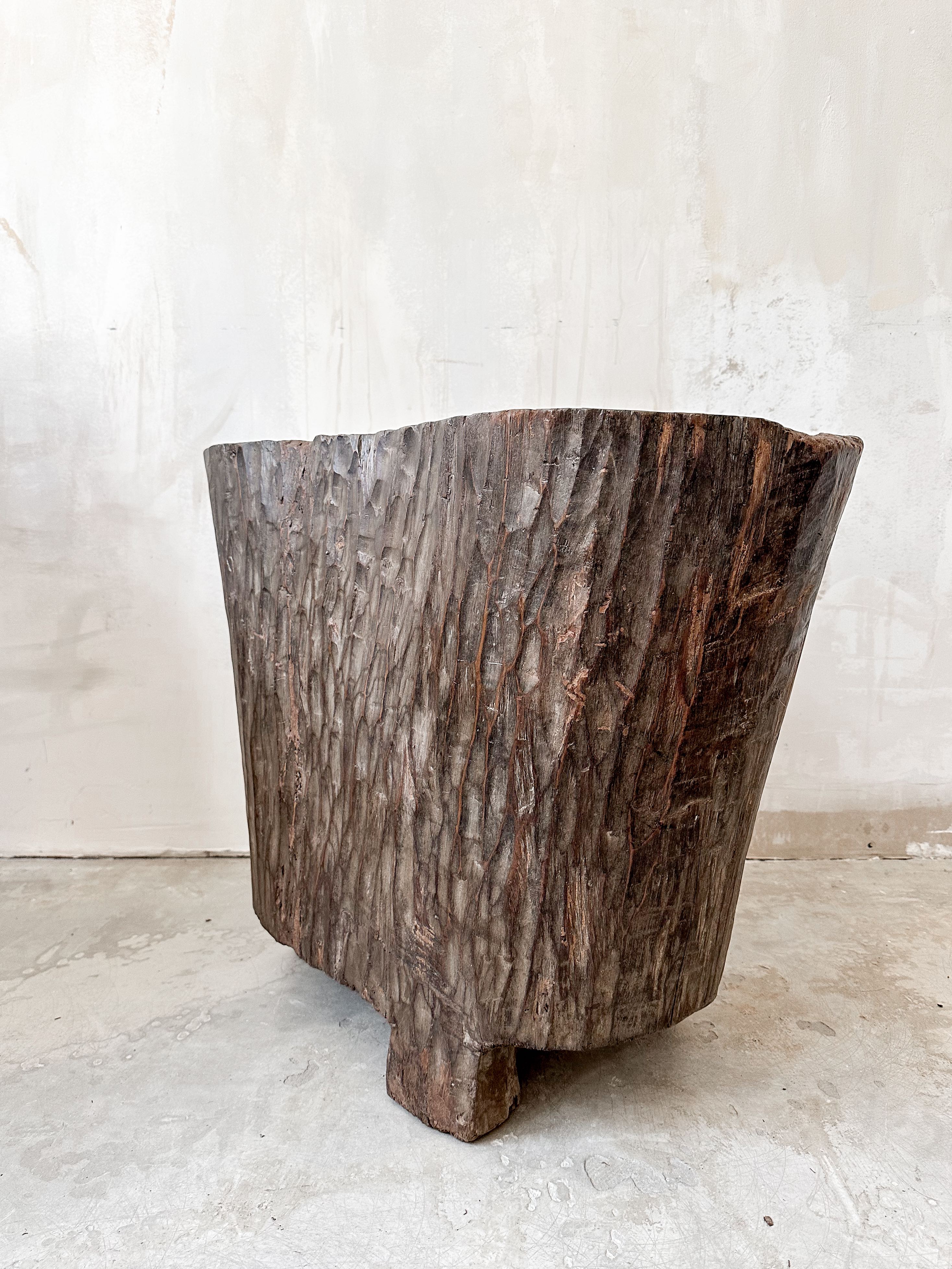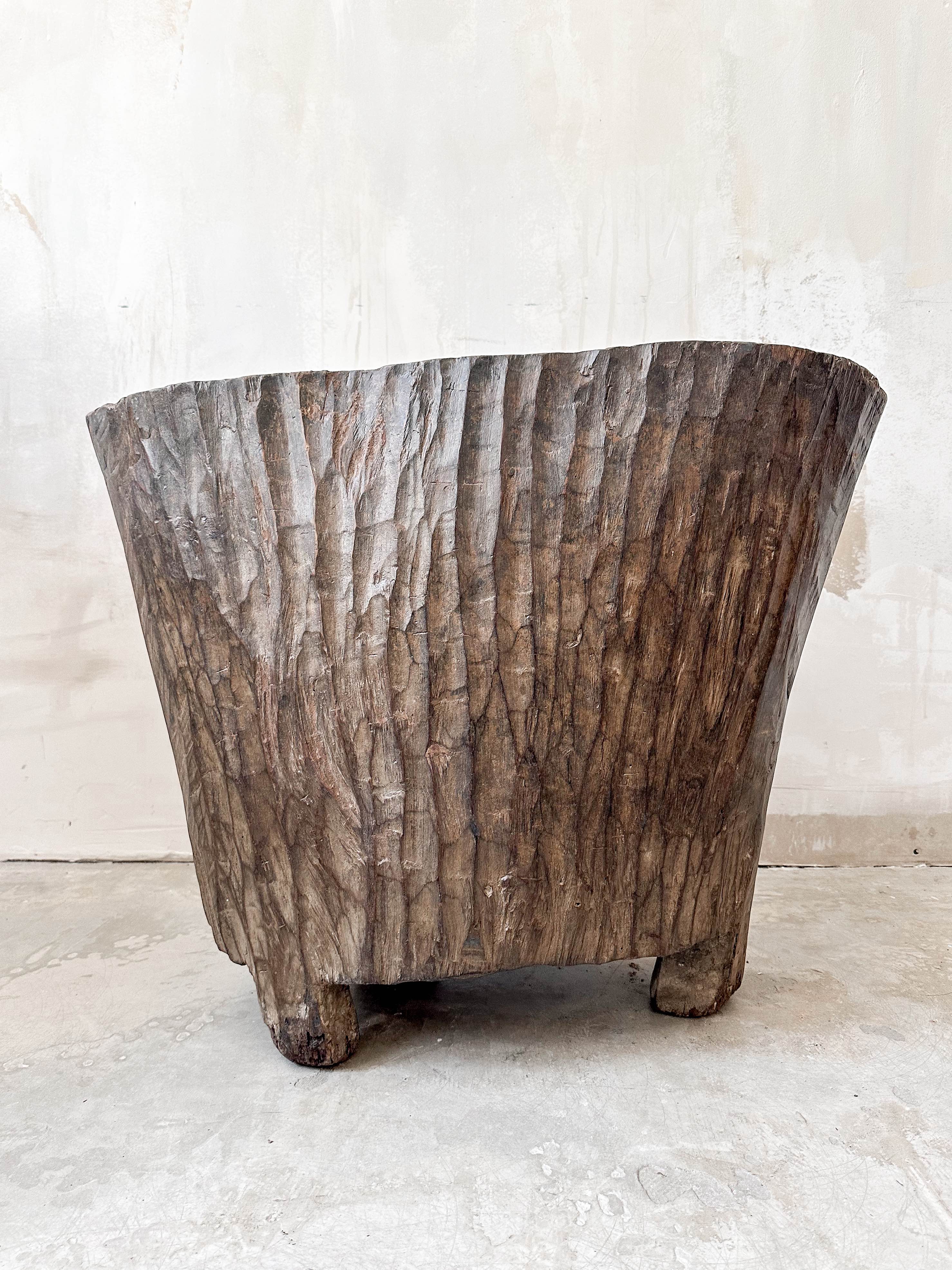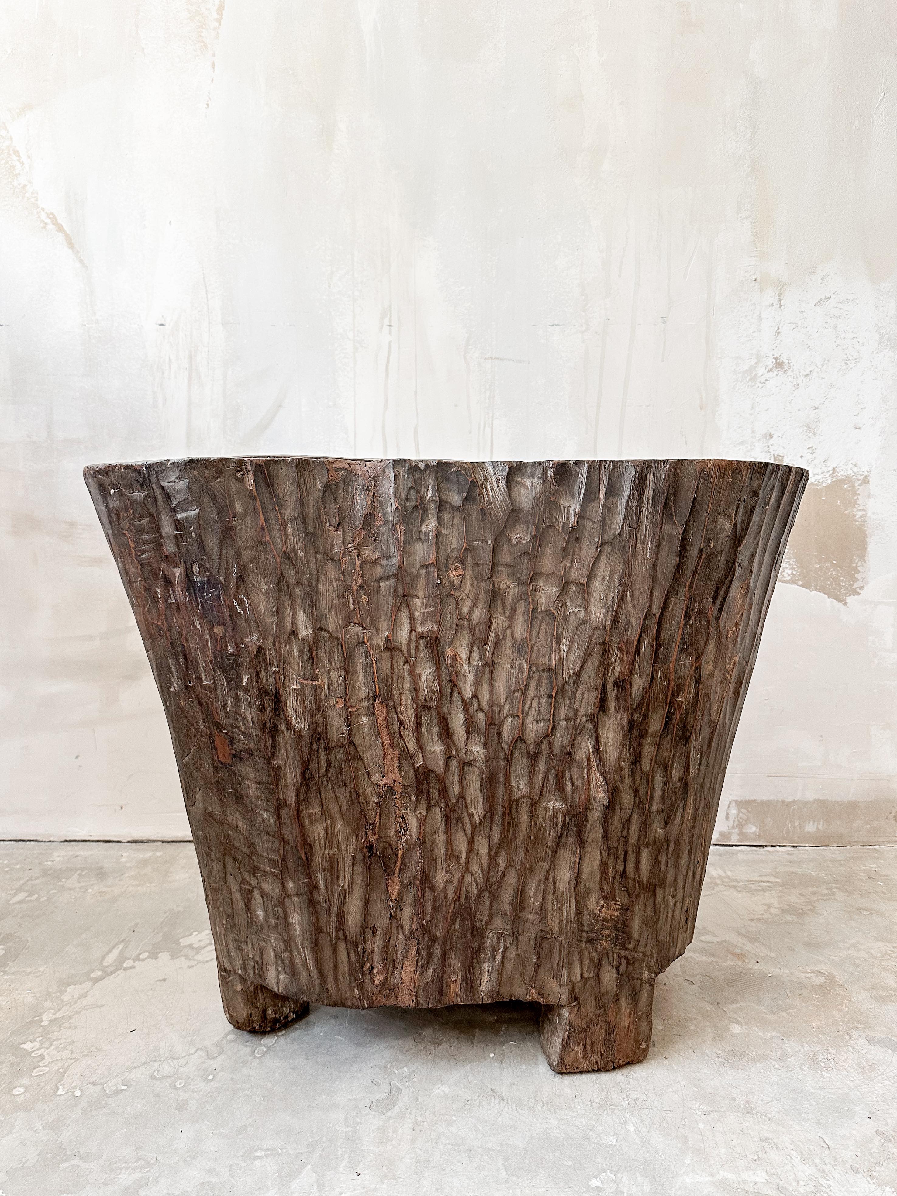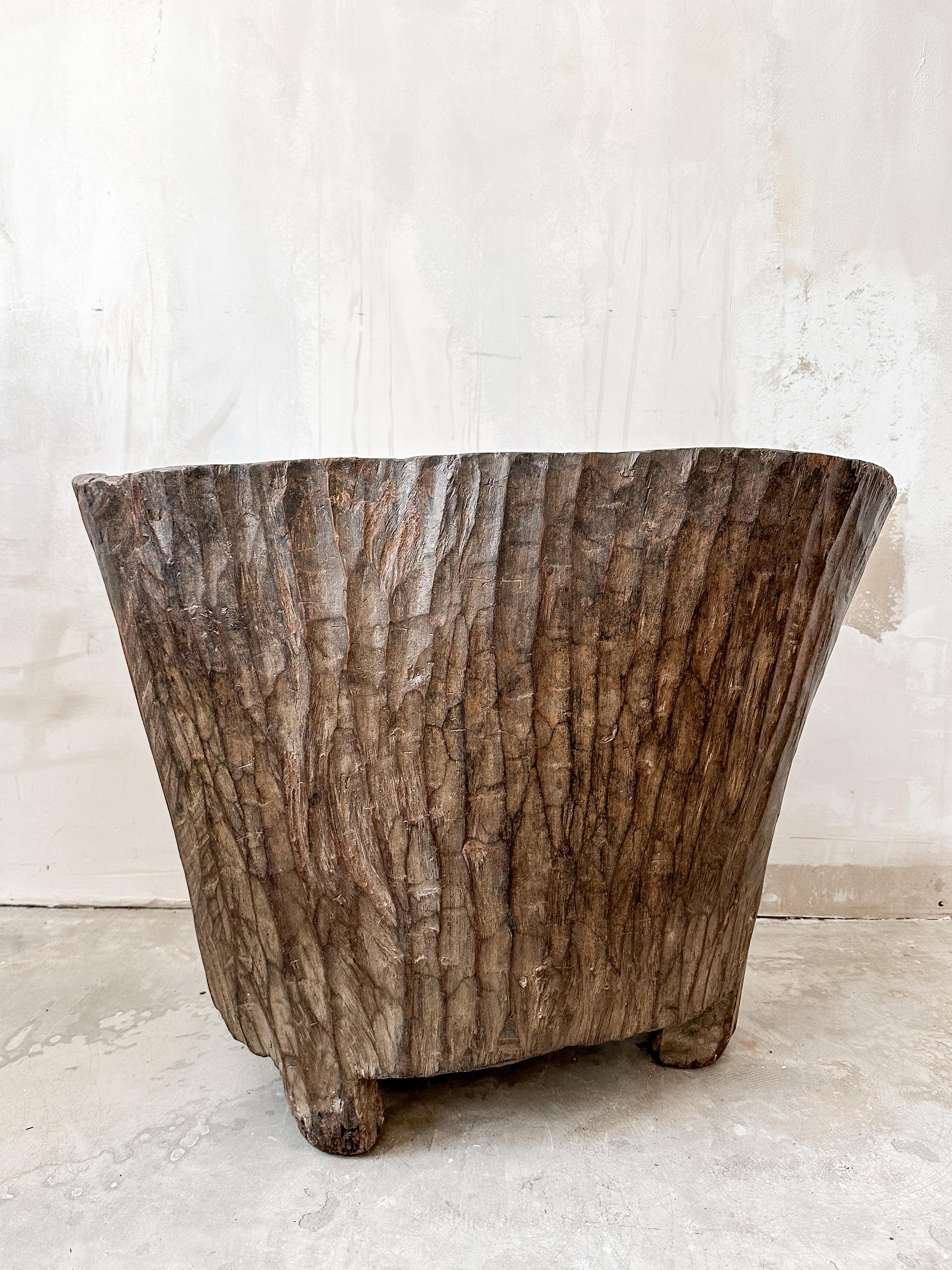 Dieses alte Pflanzgefäß ist handgeschnitzt aus einem massiven Stück Holz. Aus Nagaland in Indien. Die Form ist einfach so außergewöhnlich!