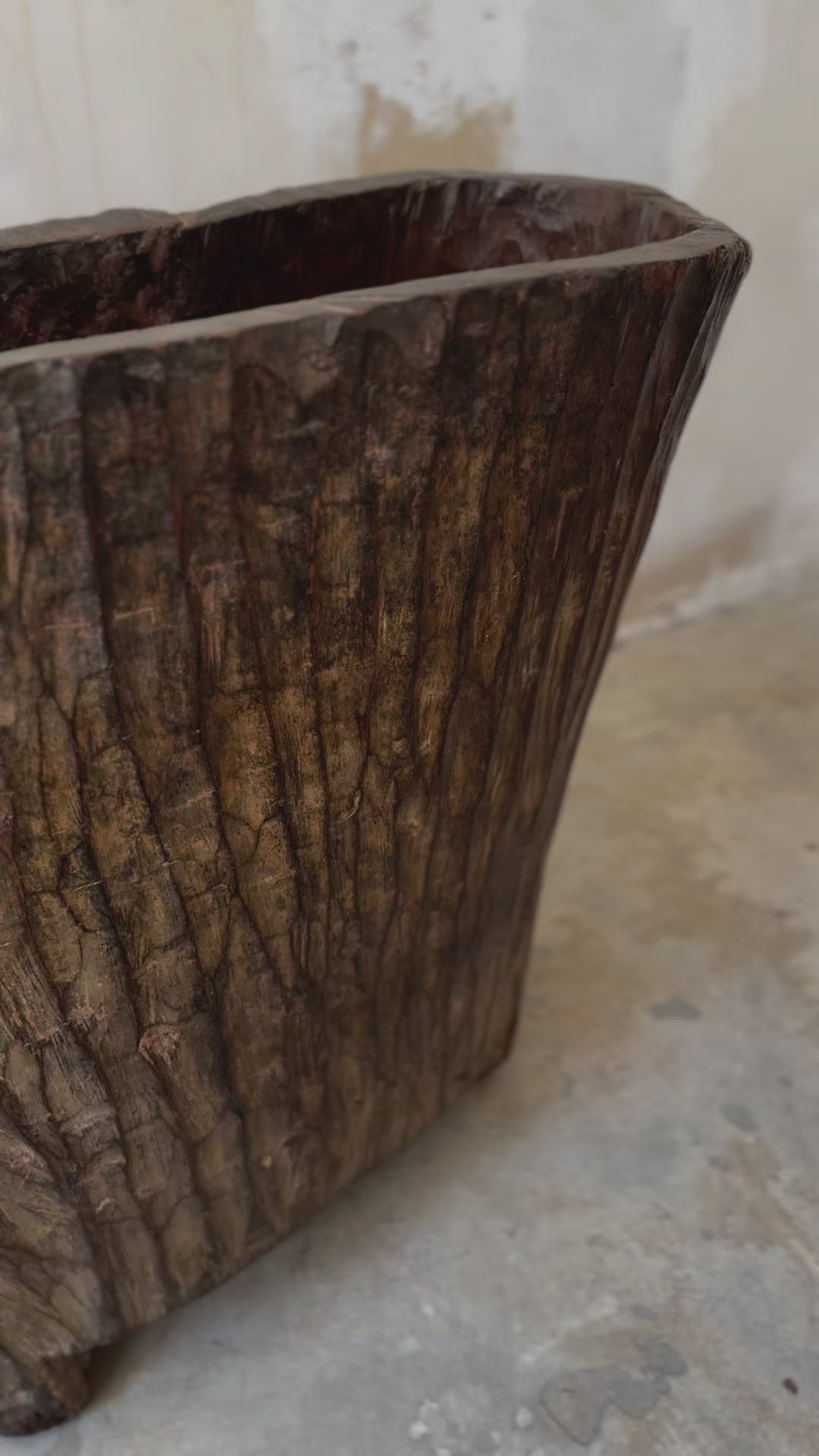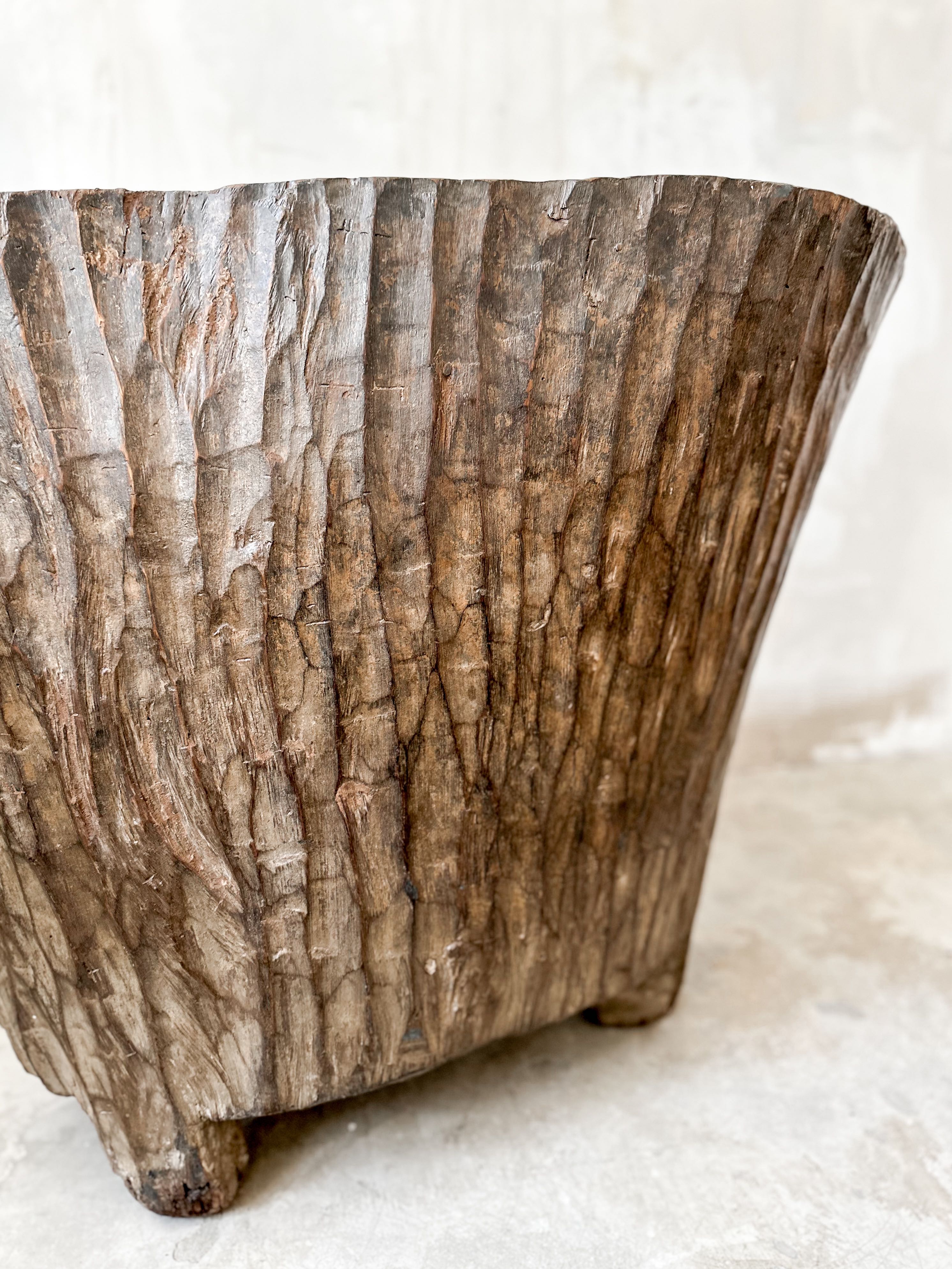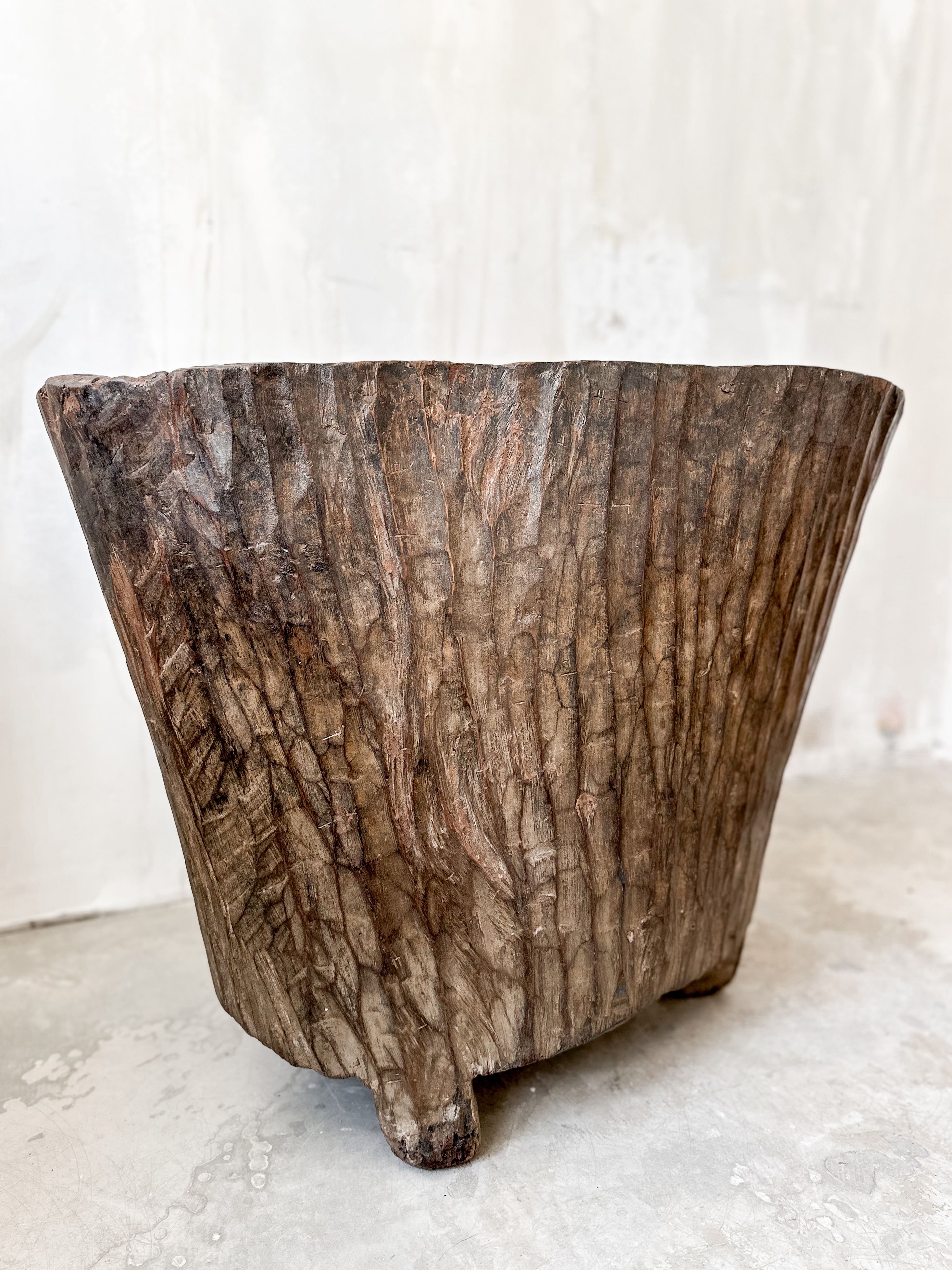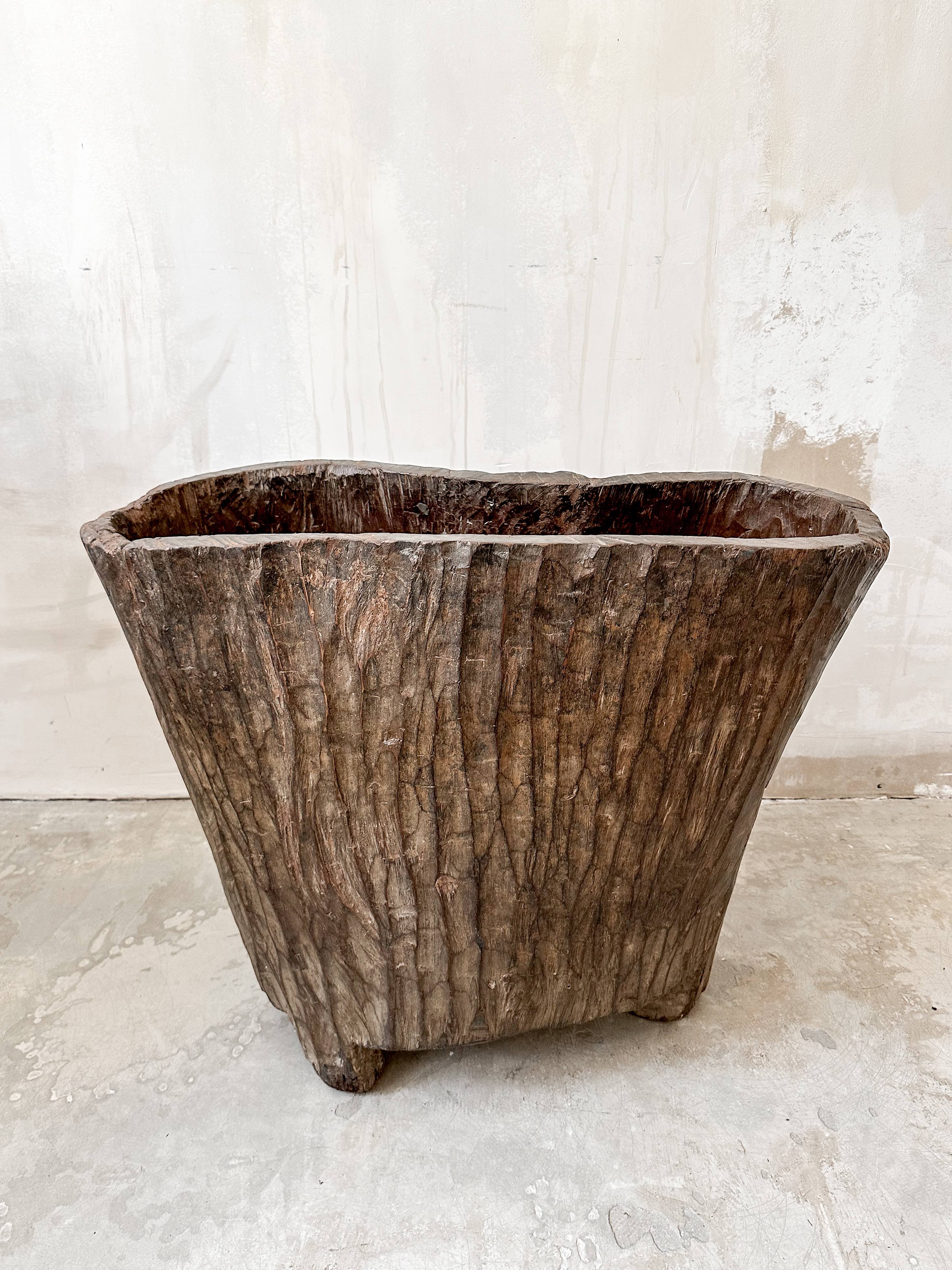 Dieses alte Pflanzgefäß ist handgeschnitzt aus einem massiven Stück Holz. Aus Nagaland in Indien. Die Form ist einfach so außergewöhnlich!