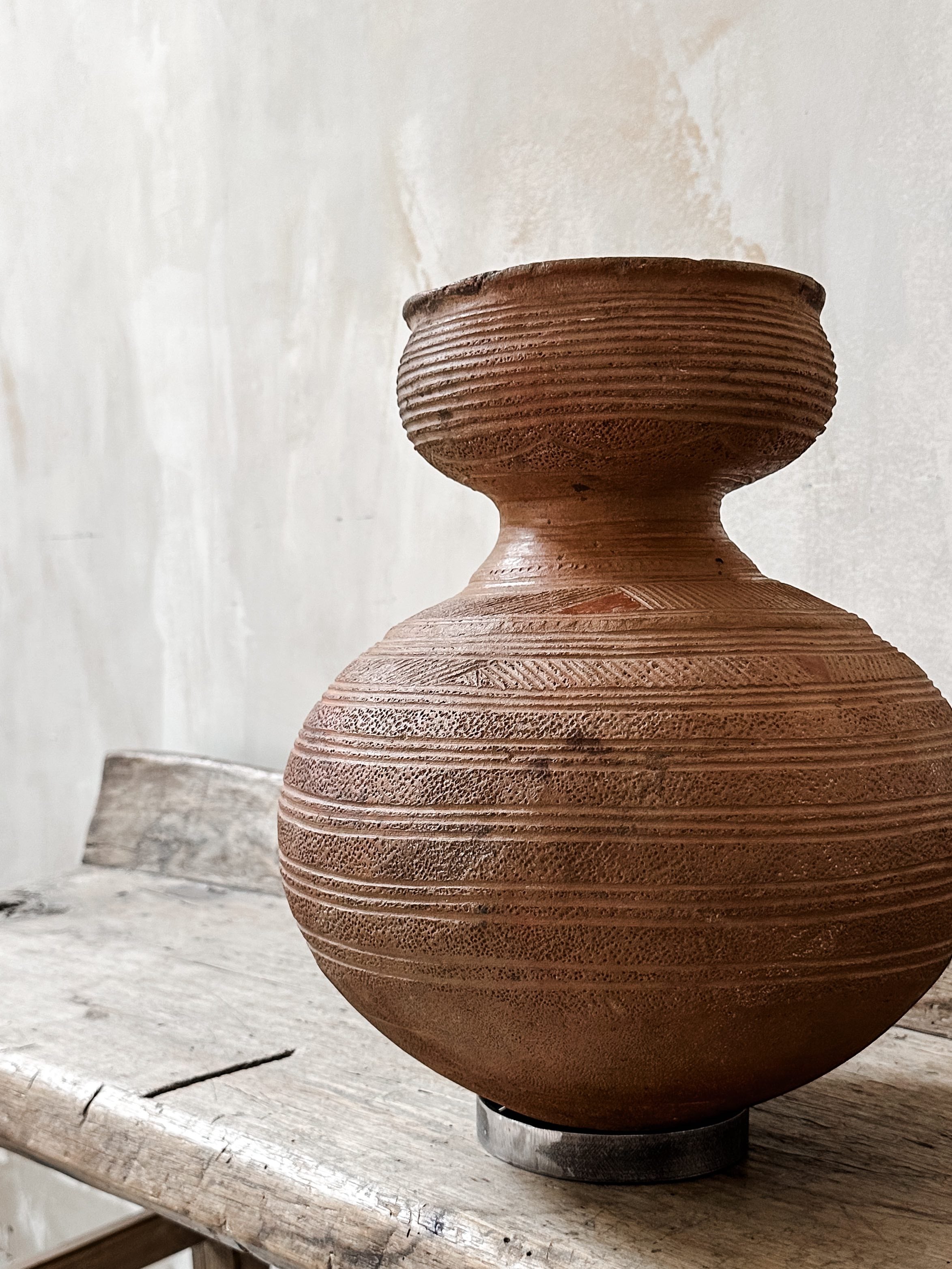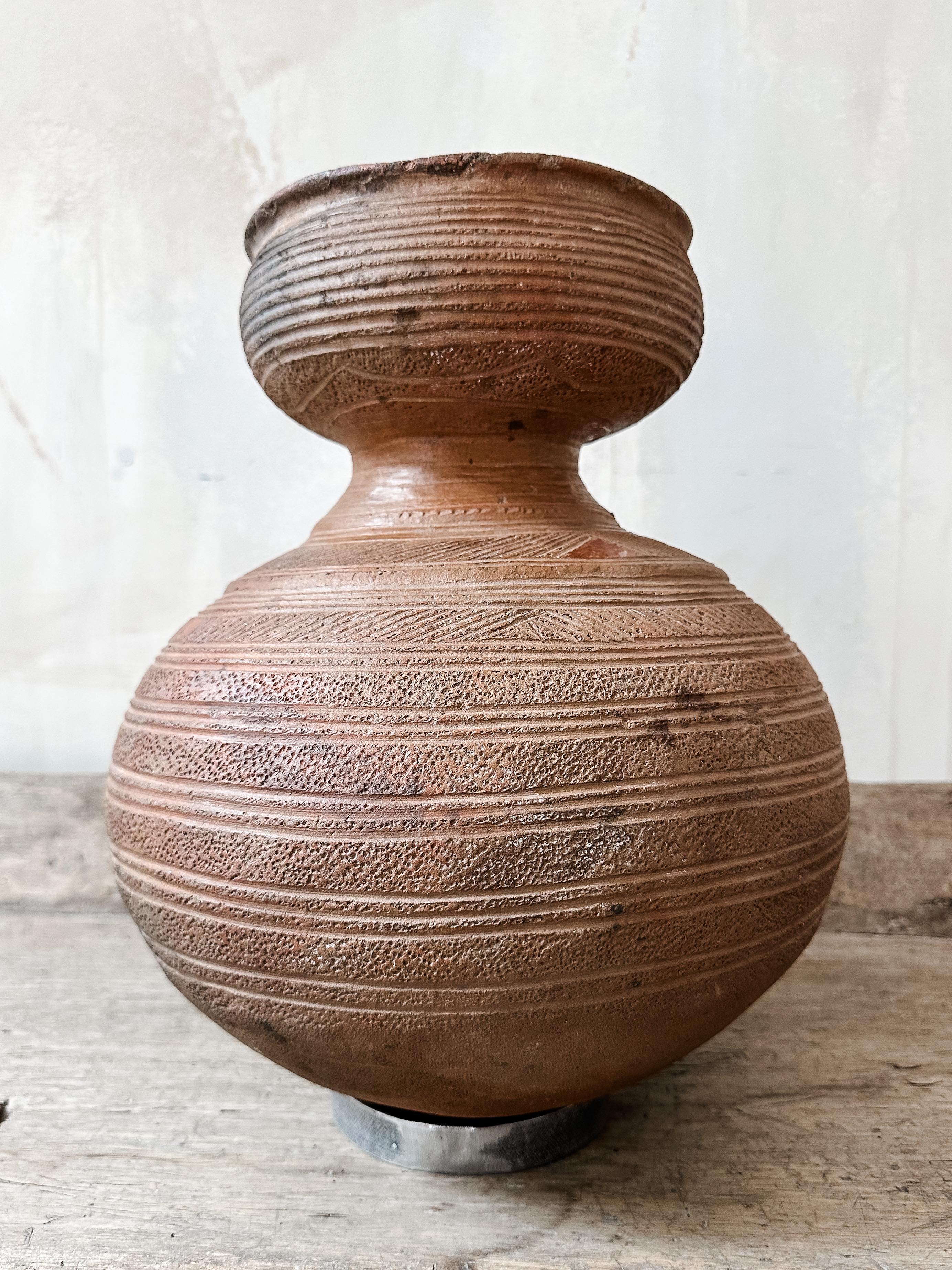 Diese Pottery ist ein seltenes Einzelstück aus Nigeria mit einer einzigartigen Form, einst verwendet zur Lagerung von Wasser.