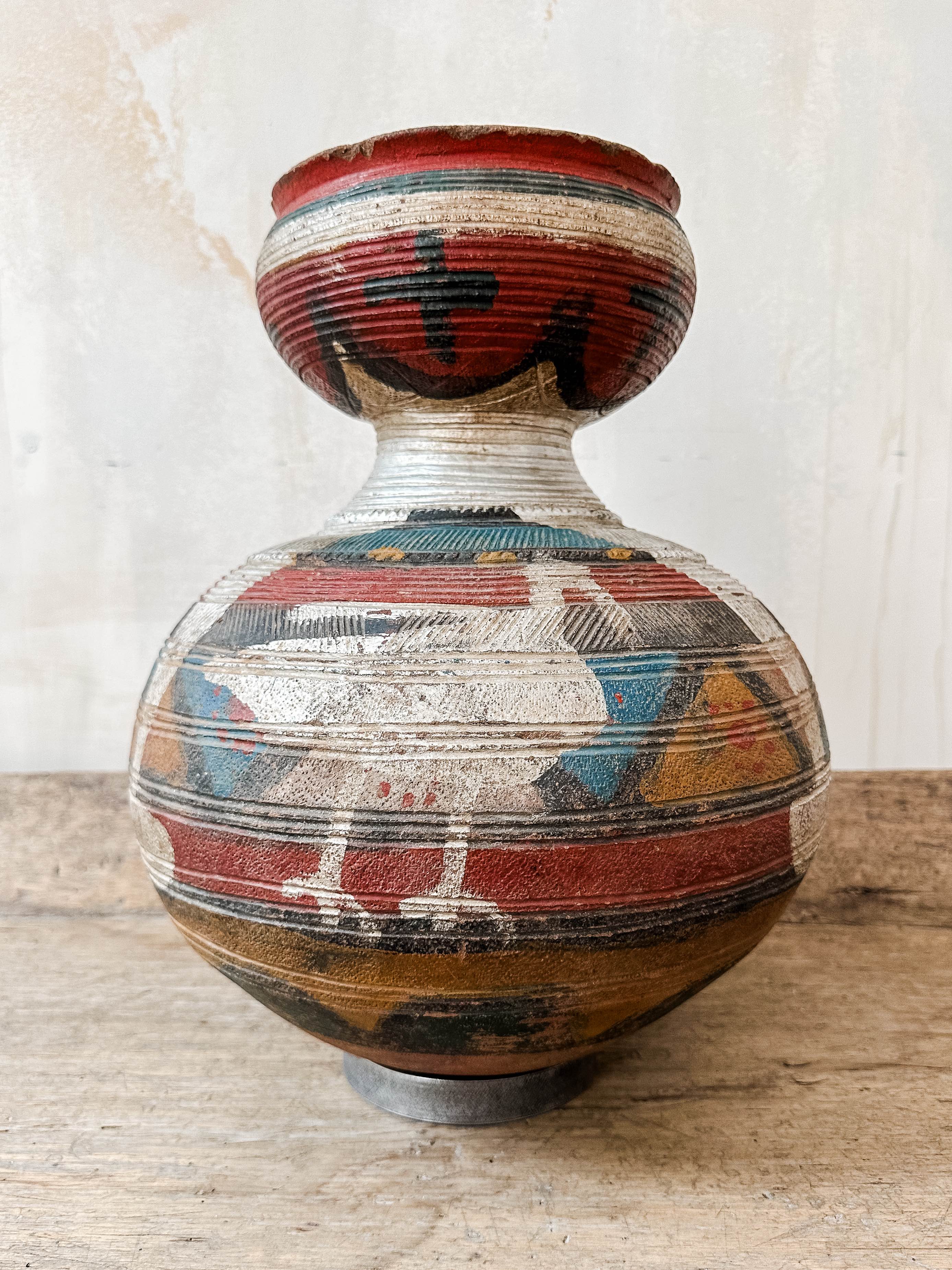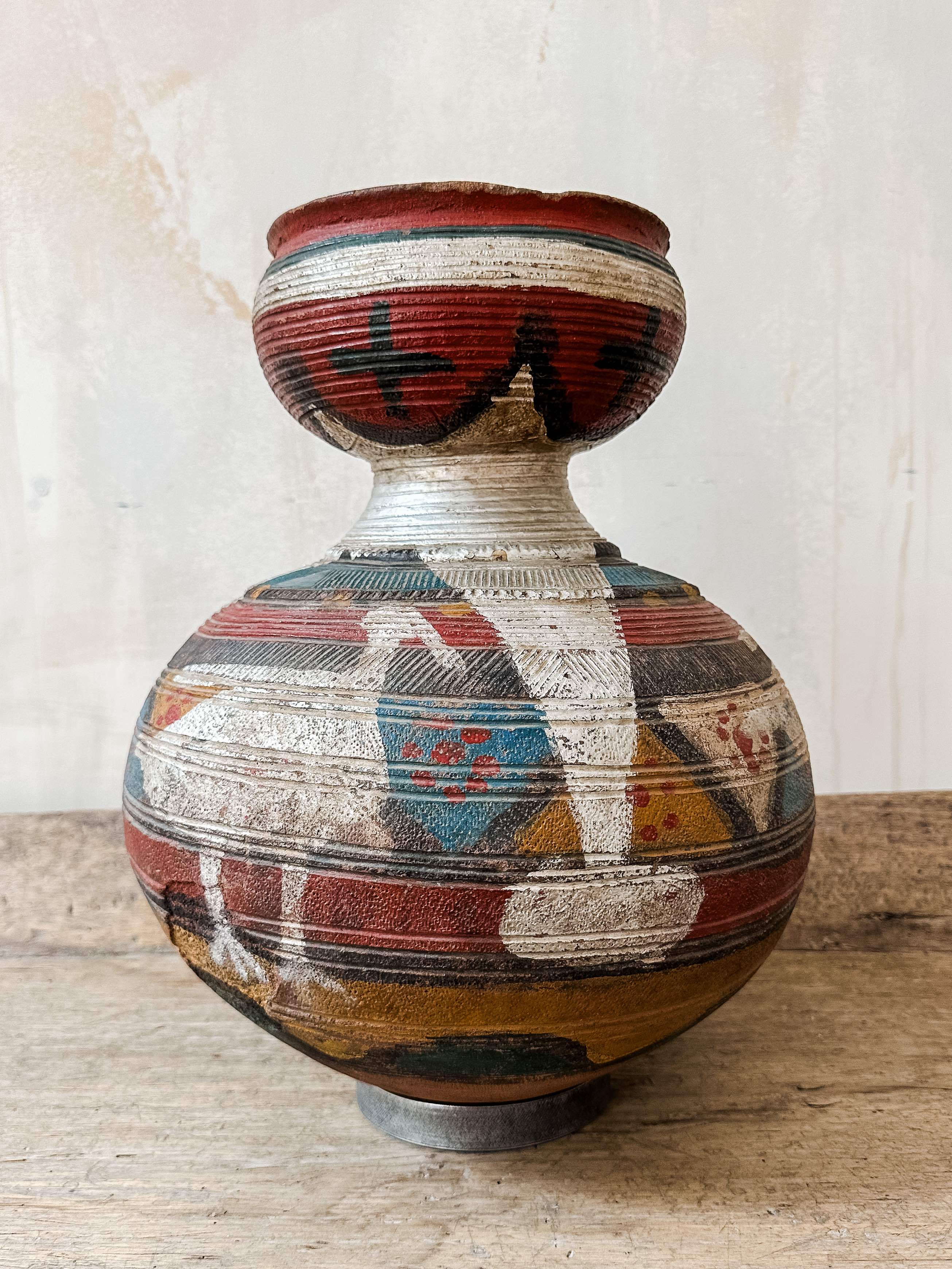 Diese Pottery ist ein seltenes Einzelstück aus Nigeria mit einer einzigartigen Form, einst verwendet zur Lagerung von Wasser.