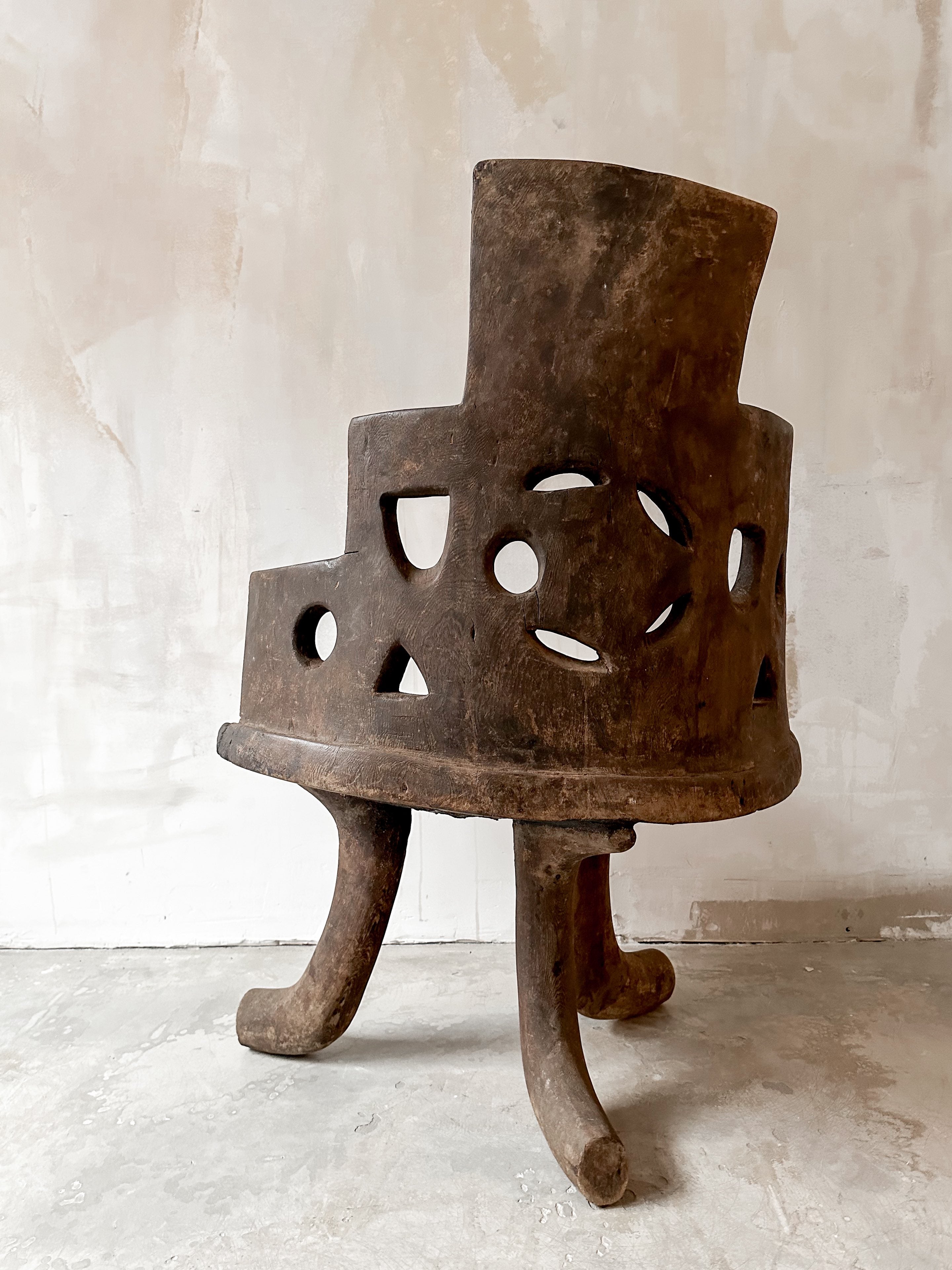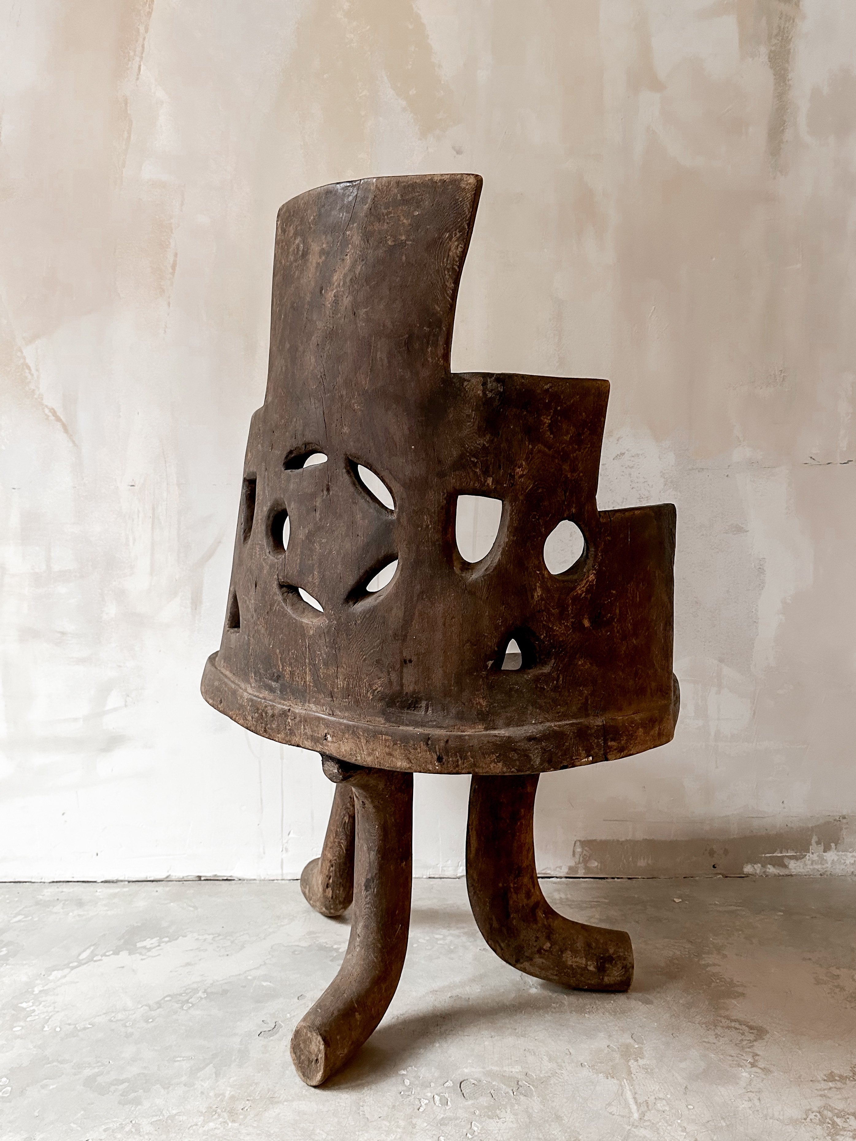 Unser alter Oromo Stuhl ist mehr als ein Stuhl, er ist eine Skulptur. Seine imposante Größe und Ausstrahlung sind absolut einzigartig.