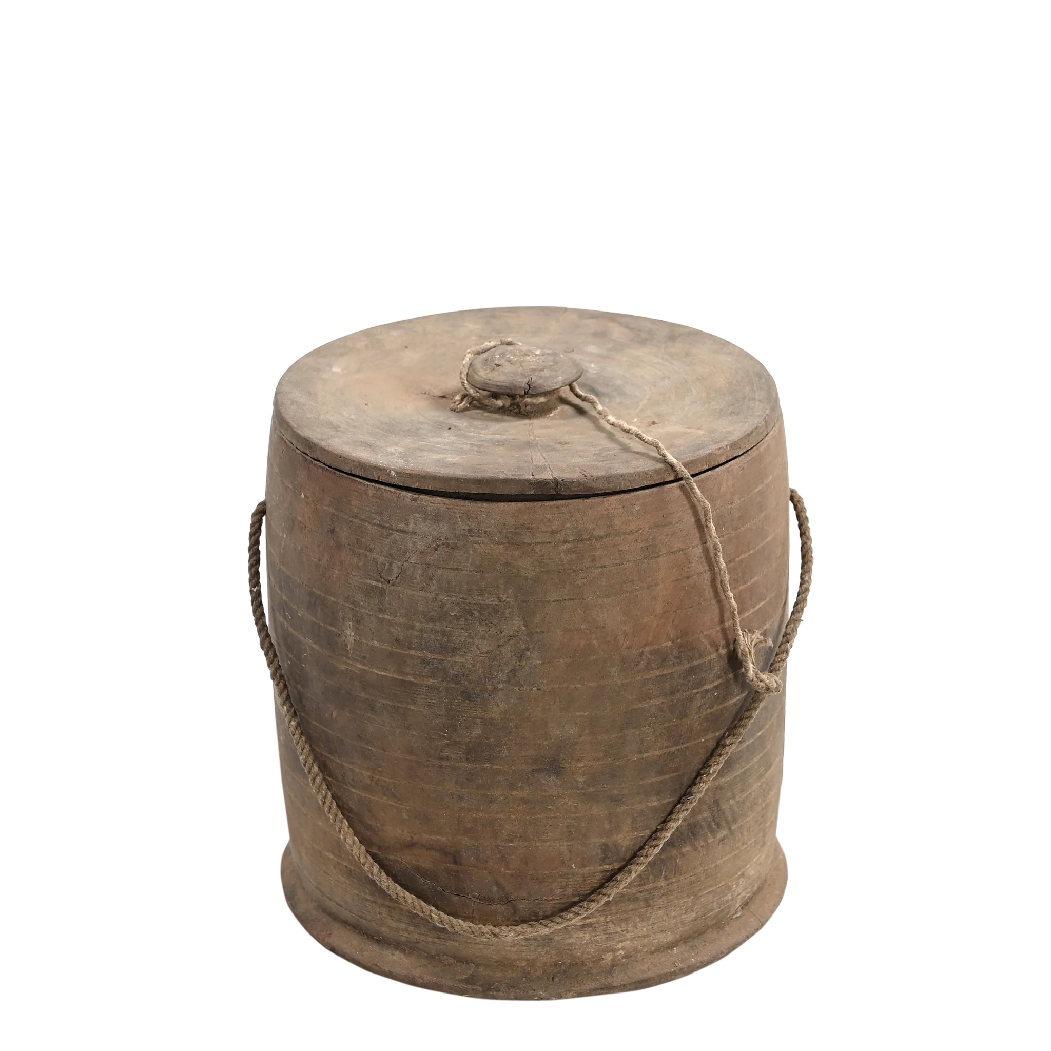Diese alte Holzbox mit Deckel ist ein authentisches Stück aus Indien, das ebenso schlicht und auch wunderschön ist. Für Liebhaber von traditionellem Design und kleinen Schätzen.