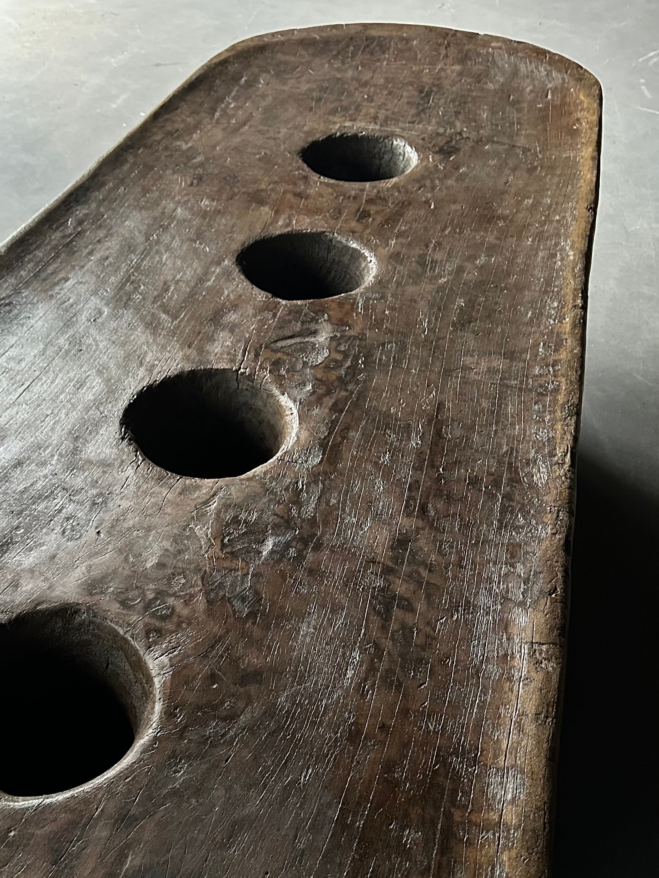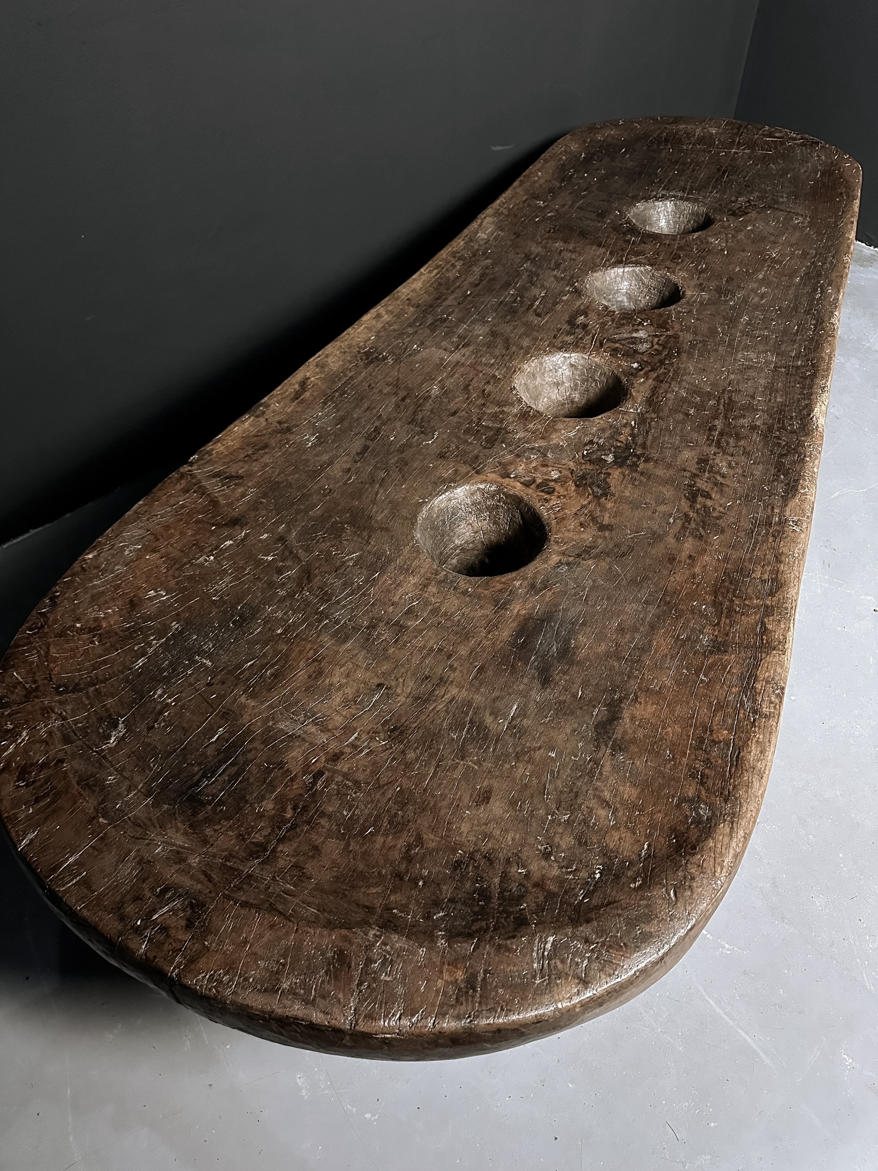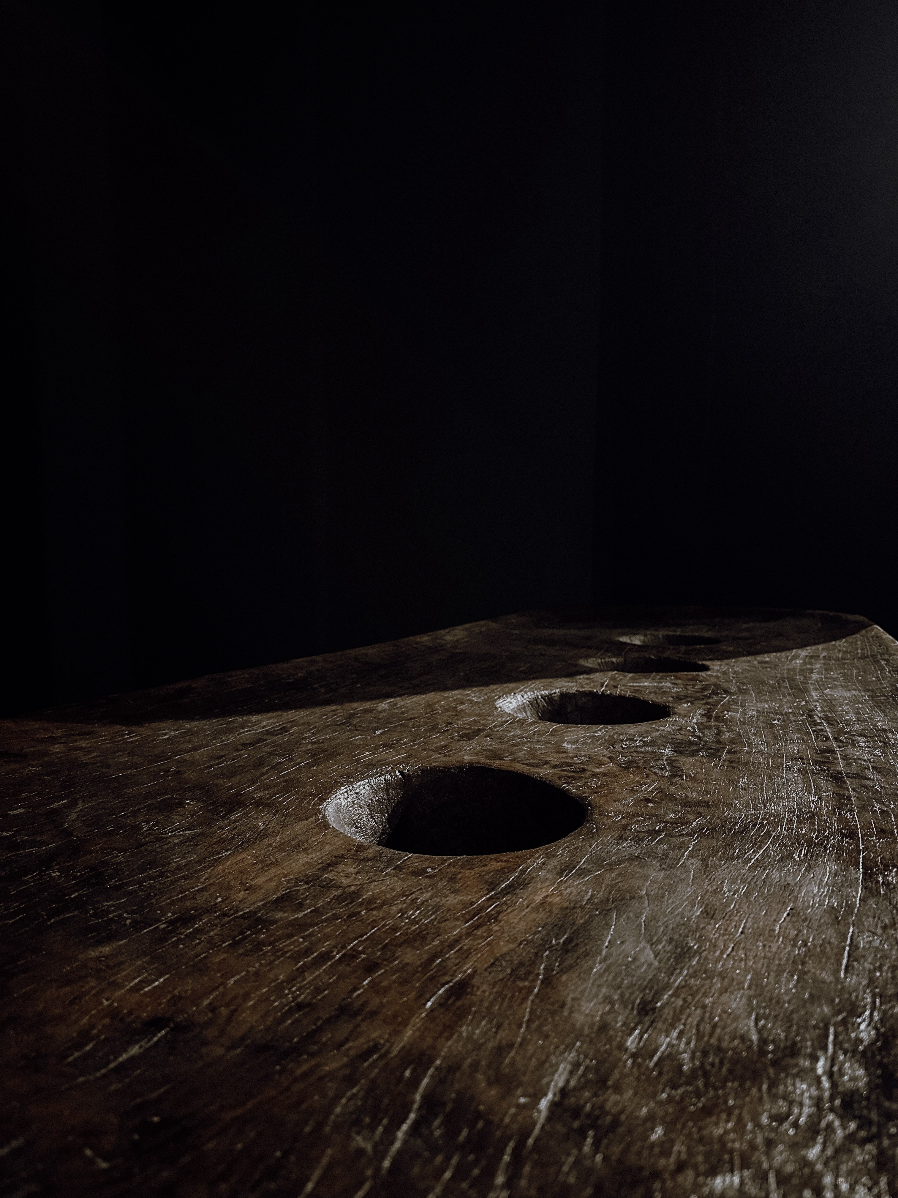 Aus einem Stück Holz gefertigt, verkörpert er den Einfallsreichtum des Naga Volkes. Zur Zubereitung von Speisen und zum Mahlen von Getreide verwendet, dienten diese Tische als Zentrum der Familie: Hier wurden Geschichten ausgetauscht und kulinarische Traditionen von einer Generation an die nächste weitergegeben.