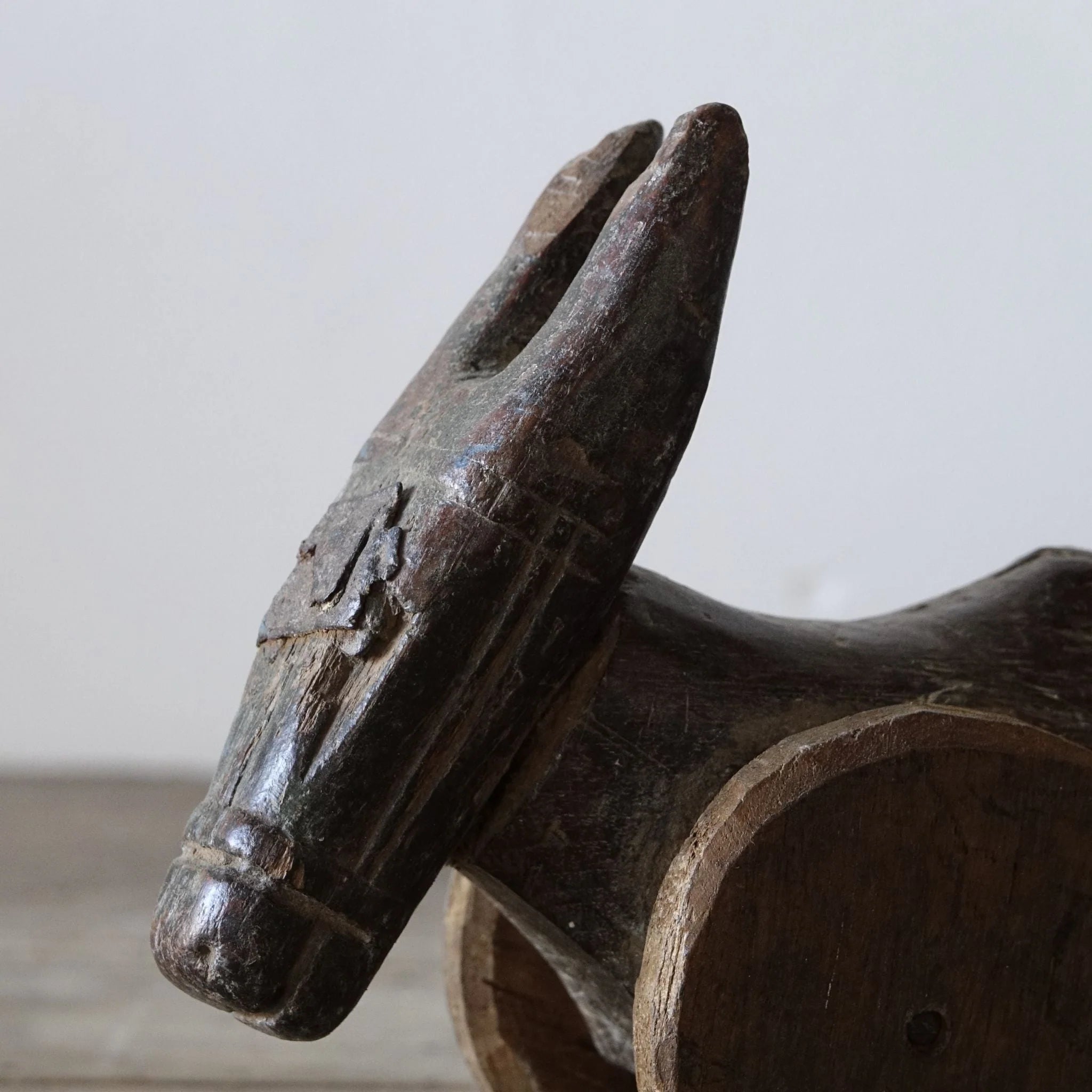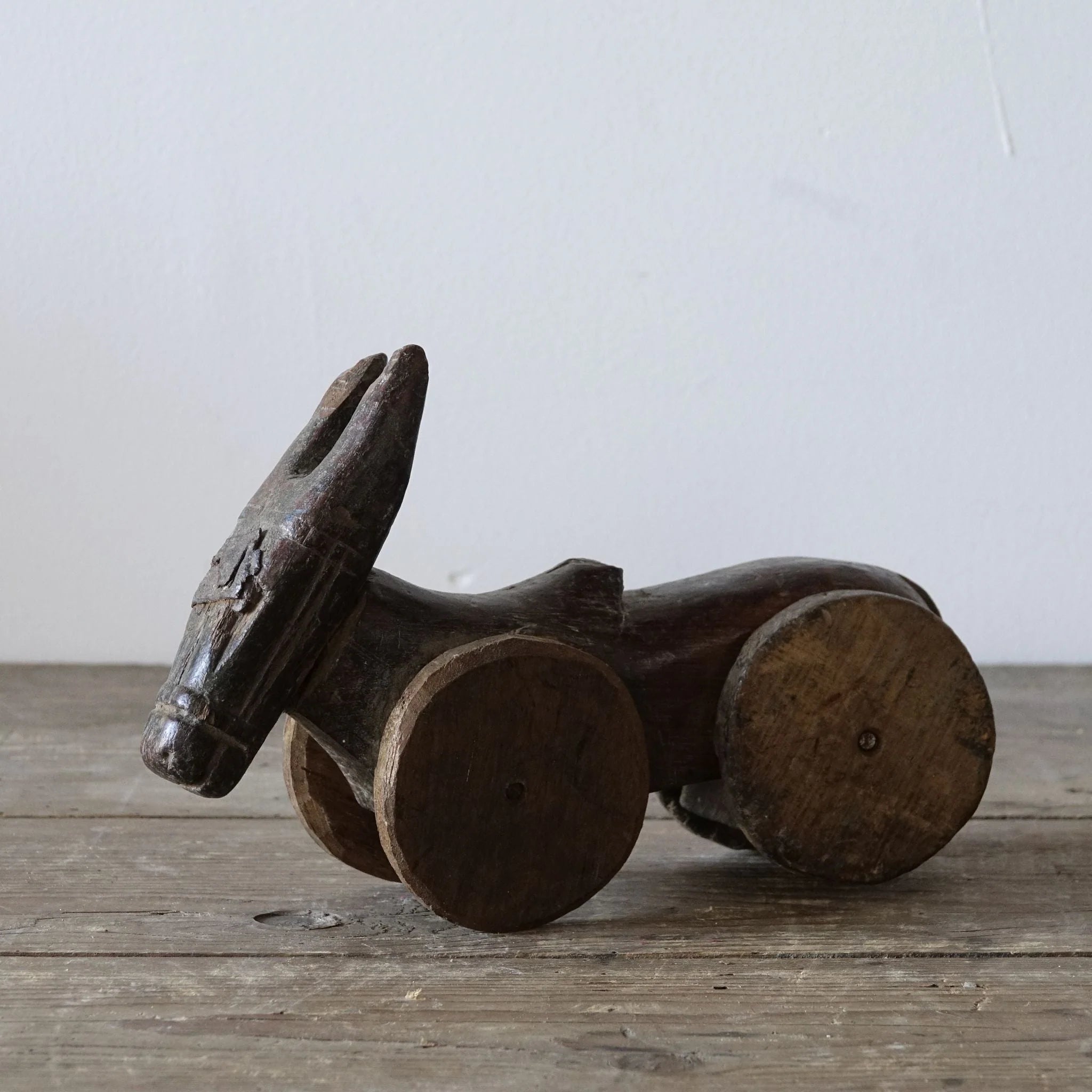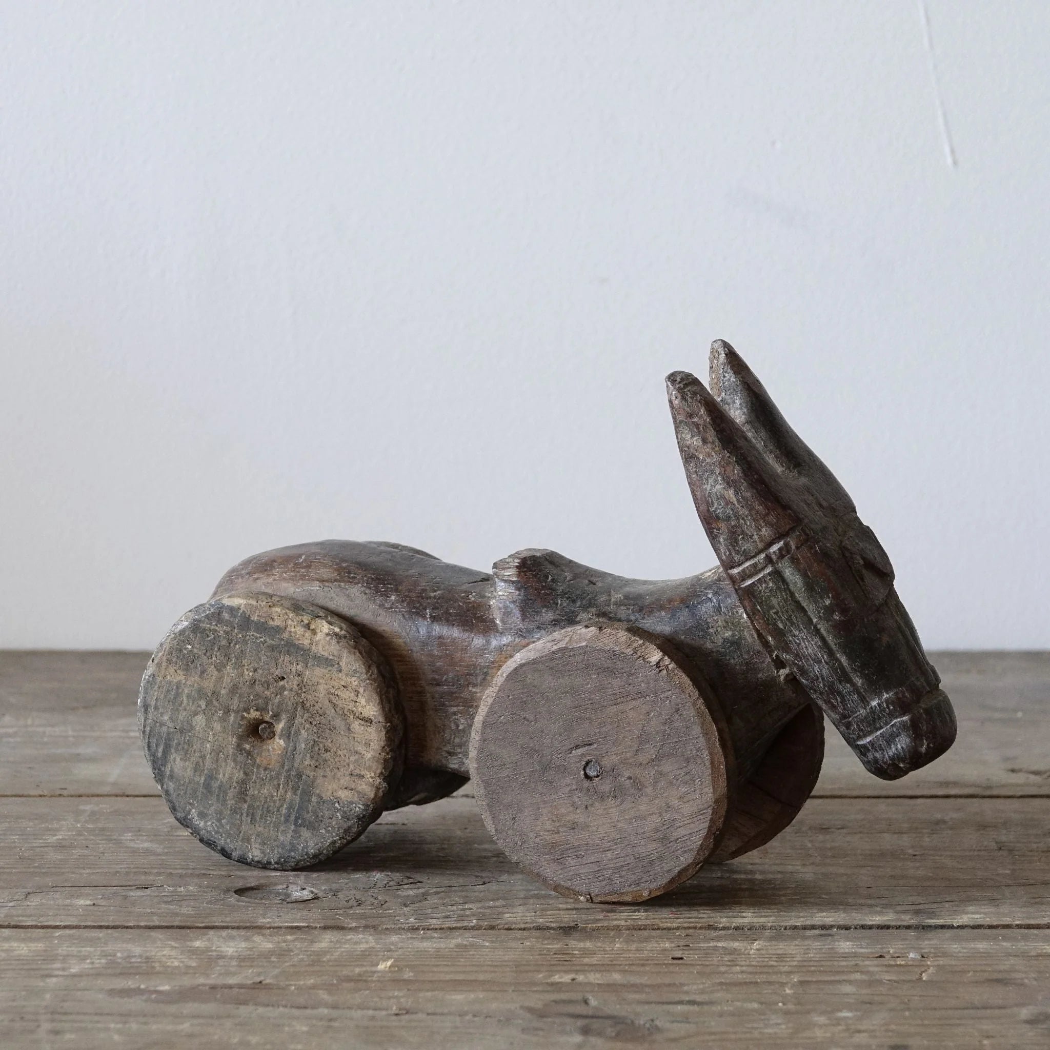 Bezauberndes Original Tempelspielzeug: Nandi, der heilige Stier, auf Rädern.
