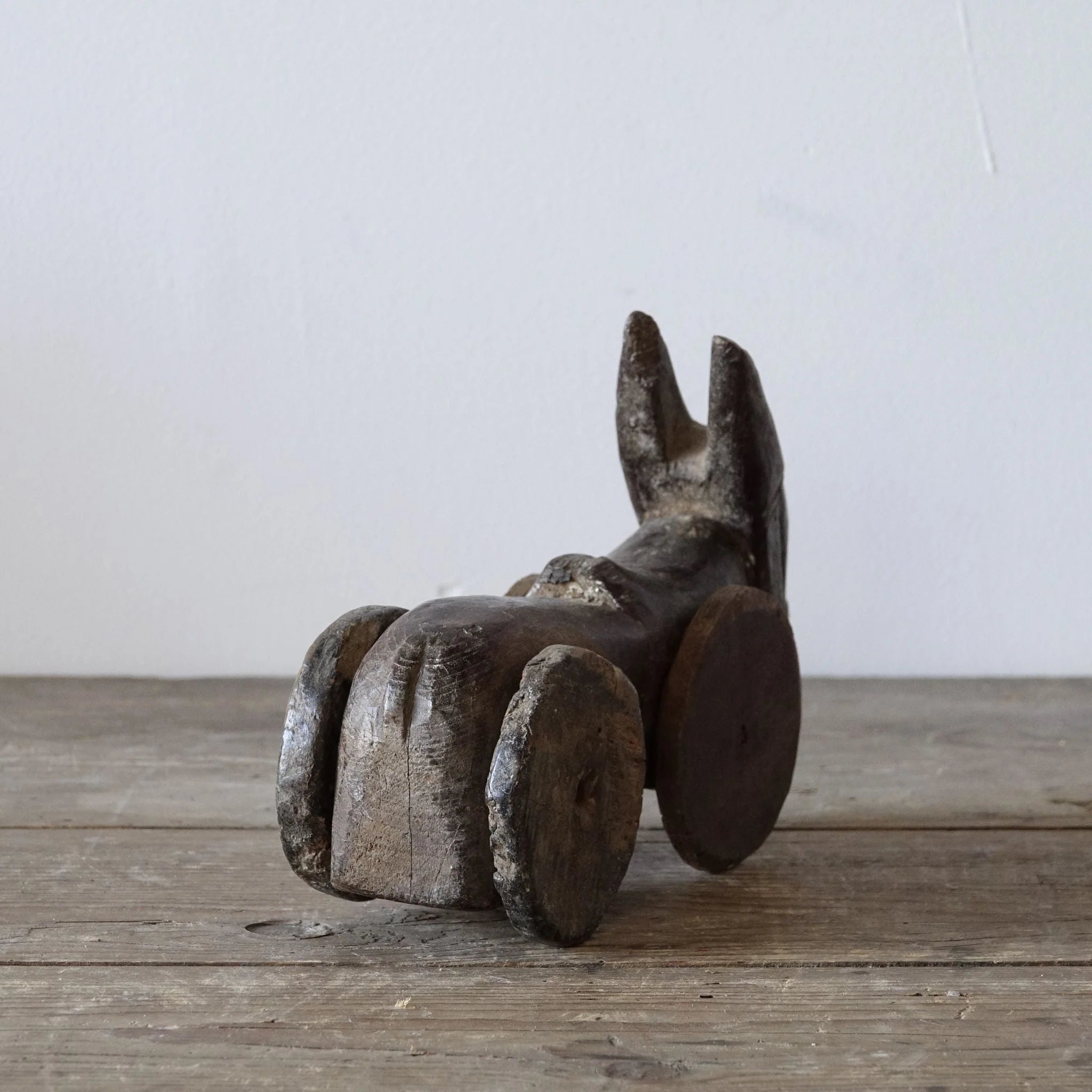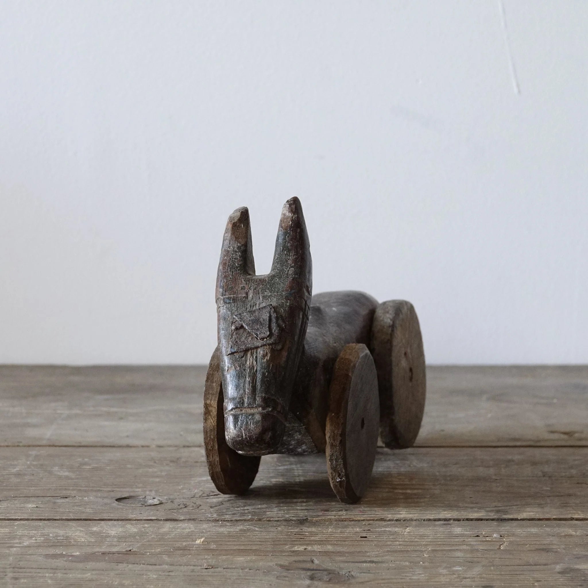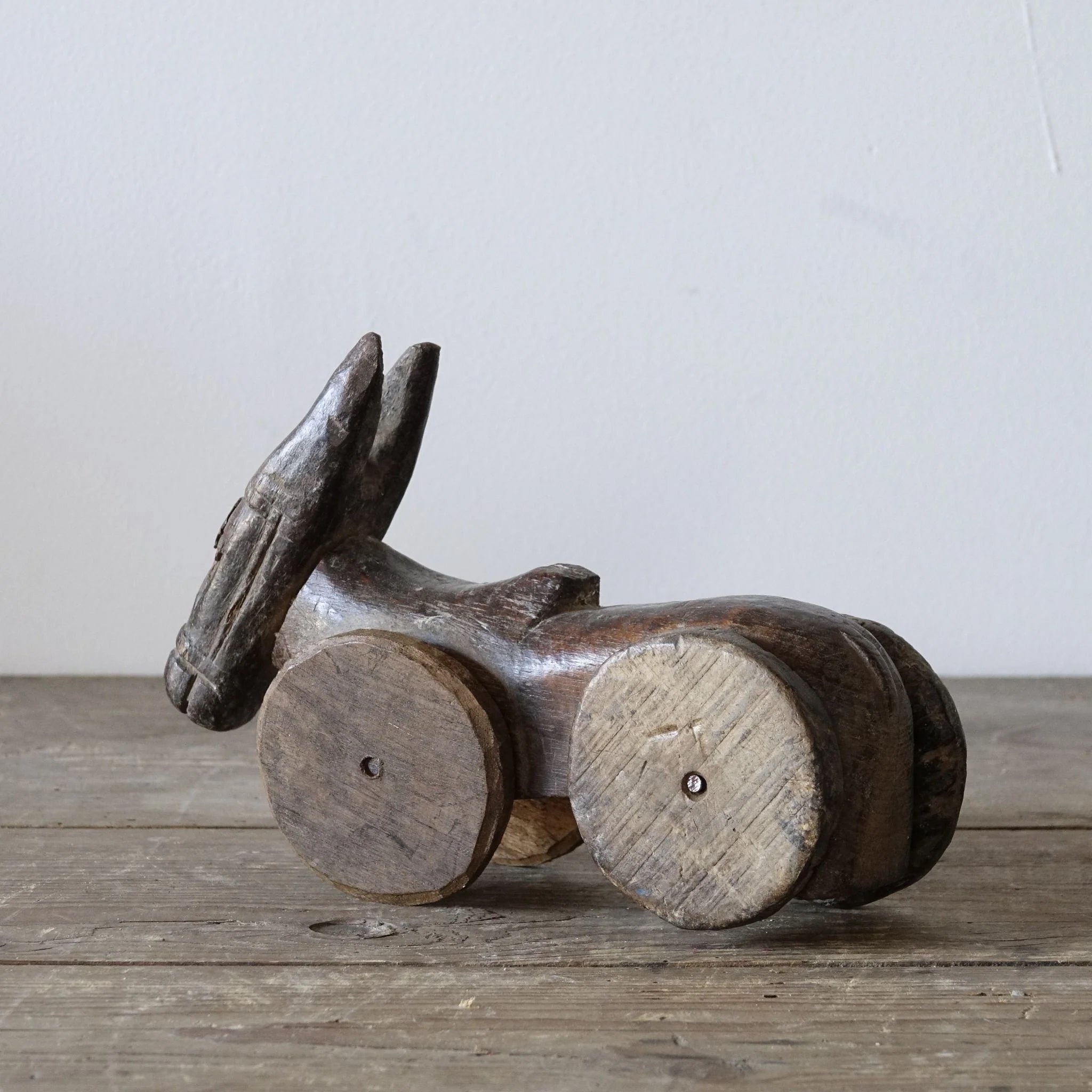 Bezauberndes Original Tempelspielzeug: Nandi, der heilige Stier, auf Rädern.