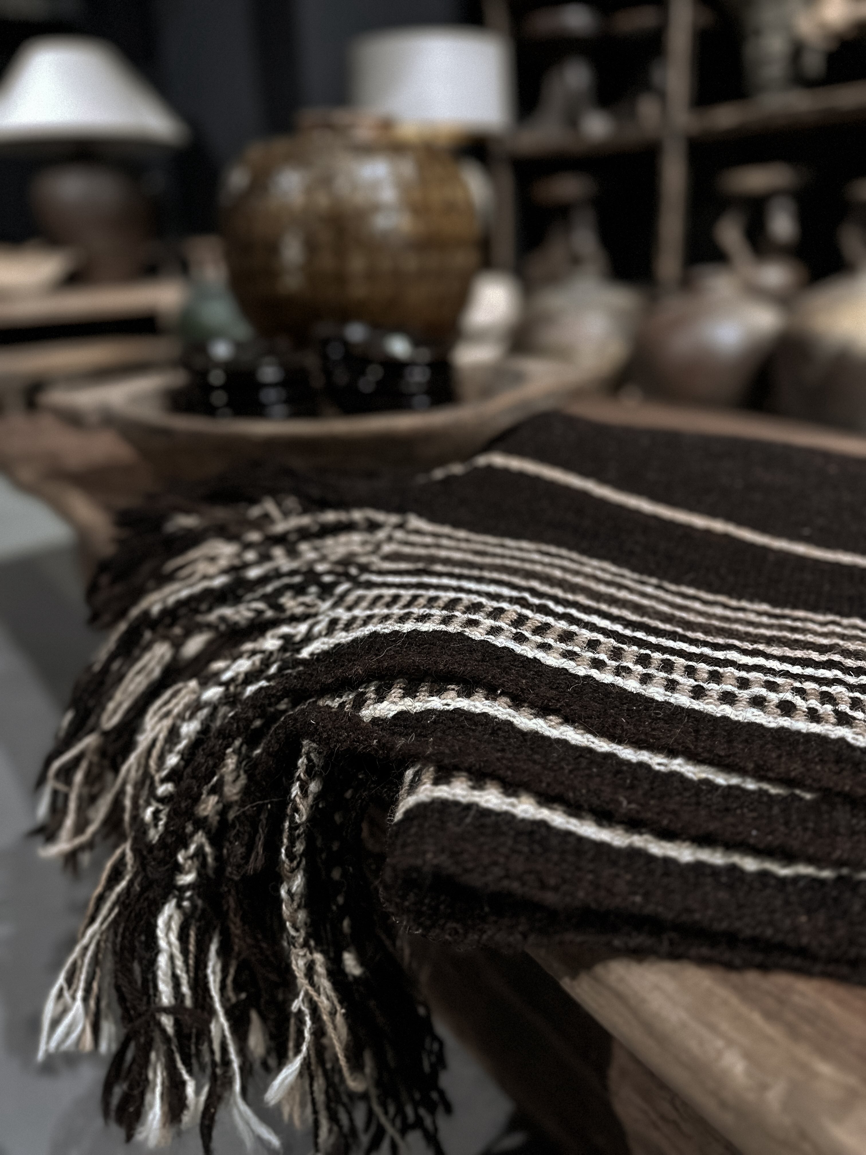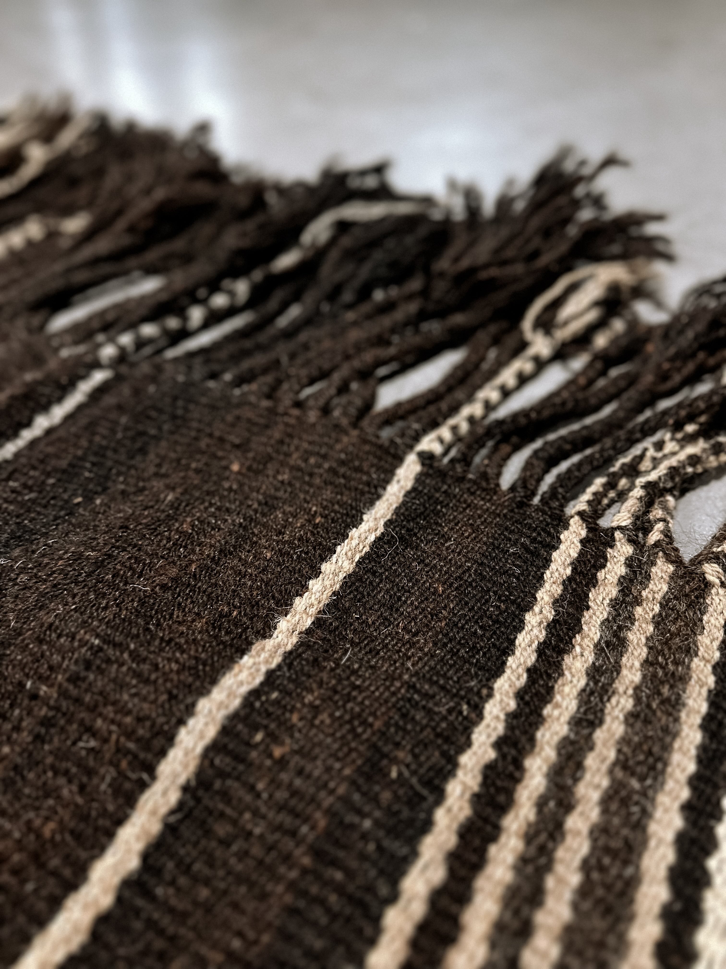 Diesen einzigartigen Teppich aus 100% Wolle haben wir selbst im Oman ausgesucht. Er bezaubert einfach: durch seine grobe, dichte Webart, die wundervollen Erdtöne, die großartige Handarbeit, das schwere Material.