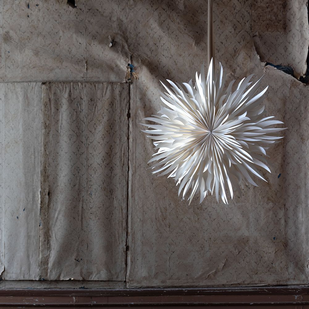 Lieferumfang: Papierstern, passendes Kabel (transparente Schnur, Länge 500cm) mit Schalter sowie LED Licht T26 – Warm White. Energieklasse A++ - E, Max 25 Watt, Sockel E14.