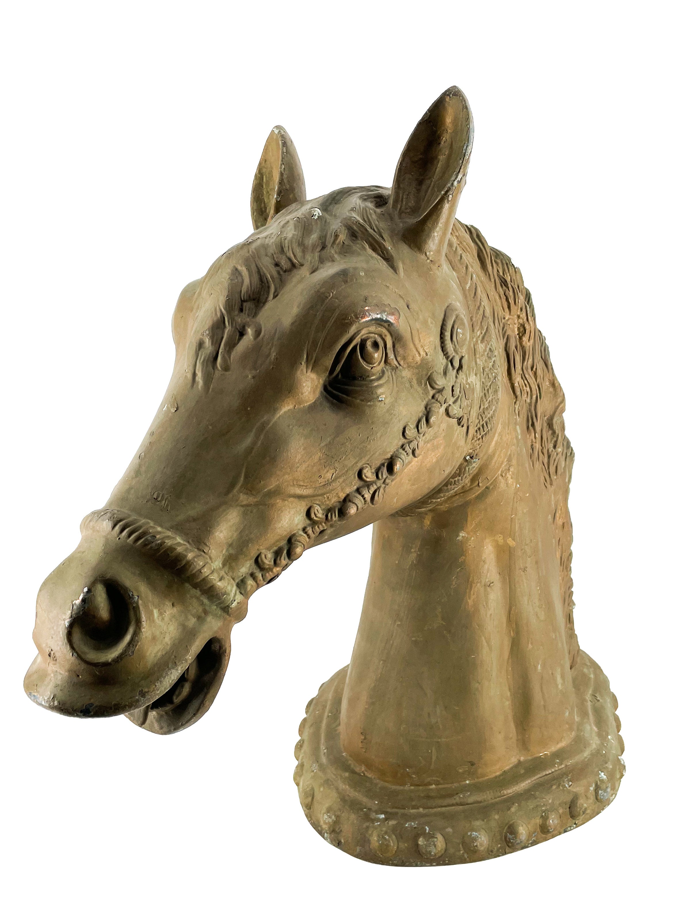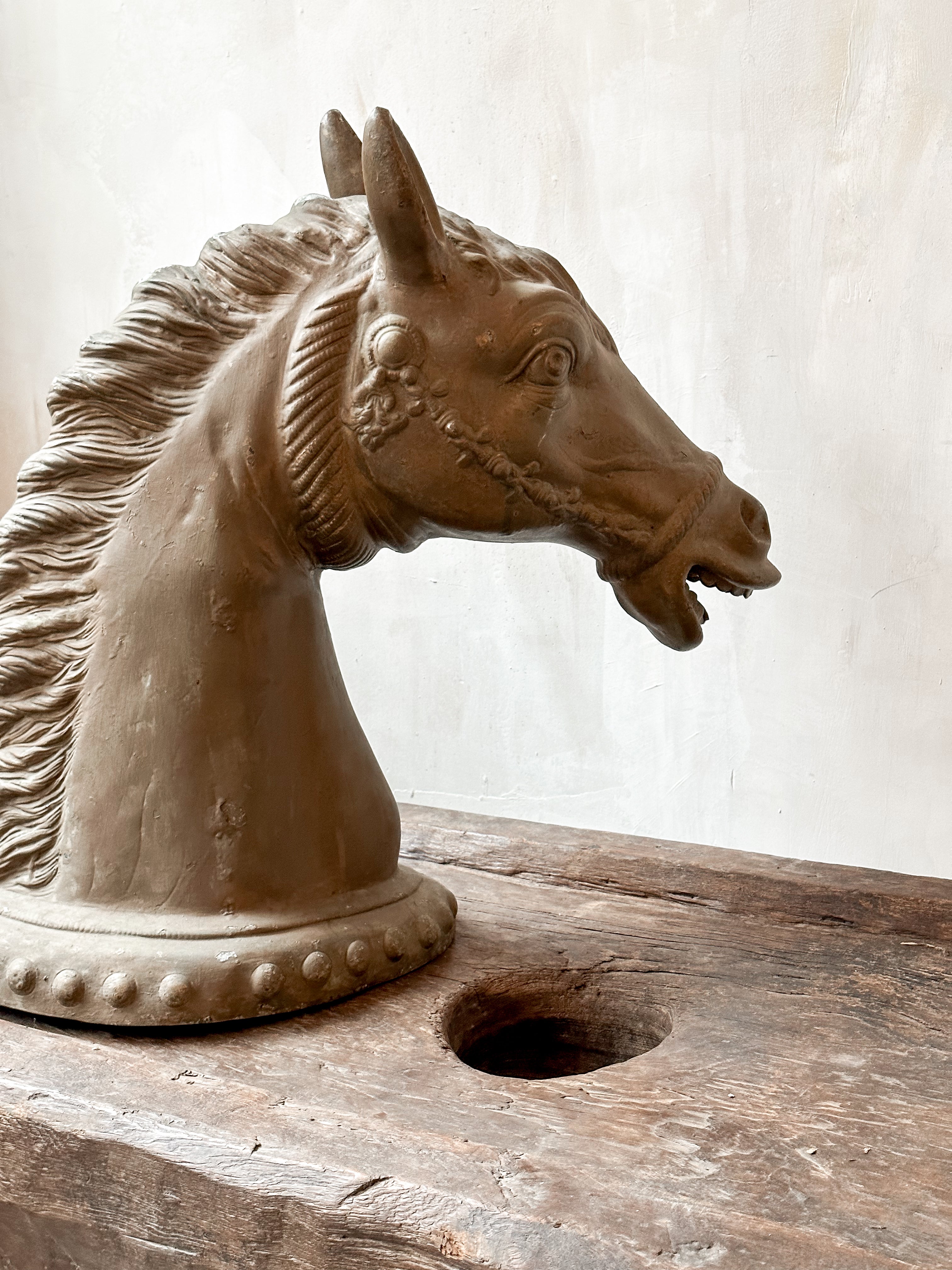 Eindrucksvoller Pferdekopf aus Aluminium. Wir haben uns die beiden verfügbaren Exemplare aus Indien gesichert.