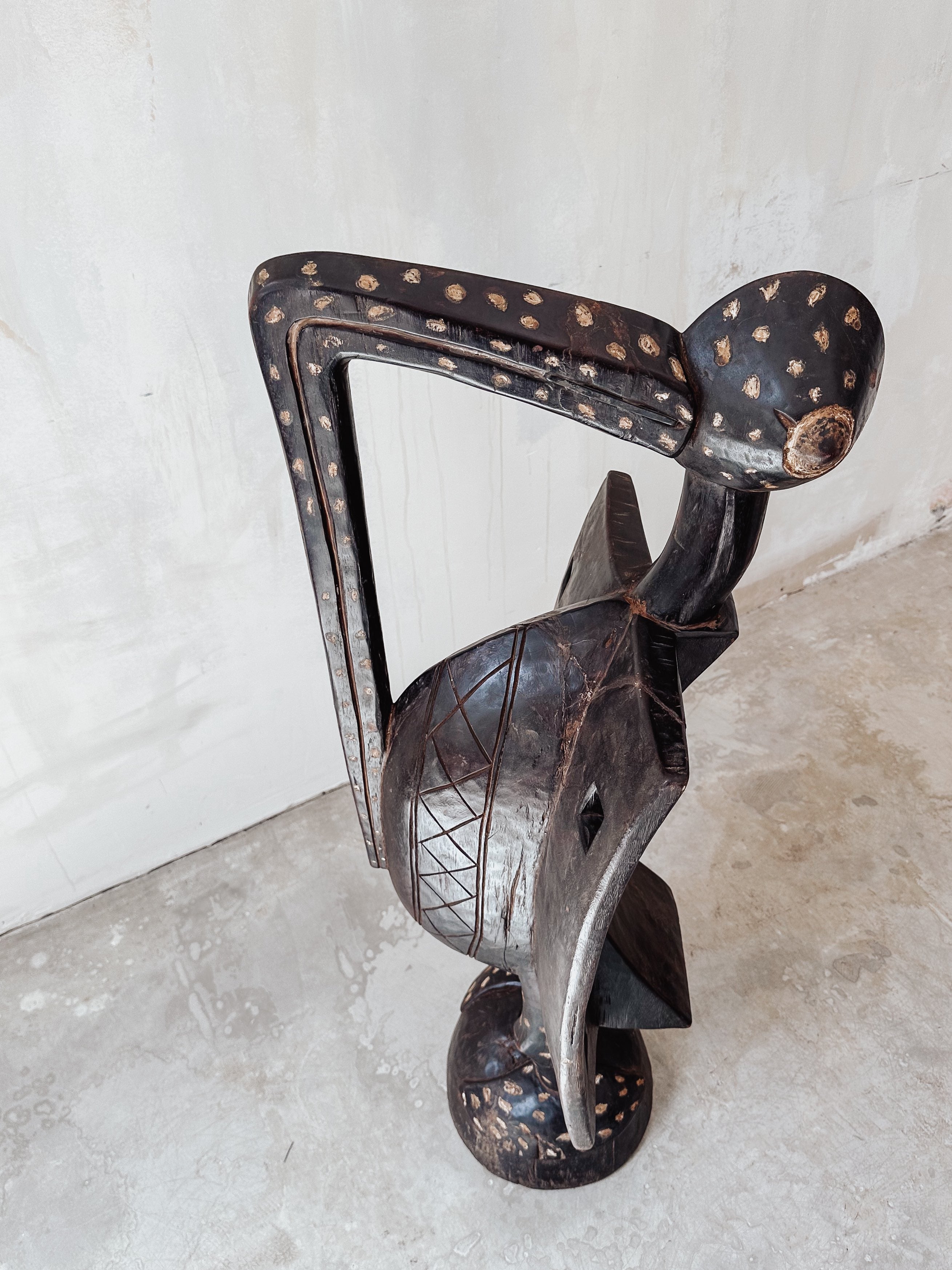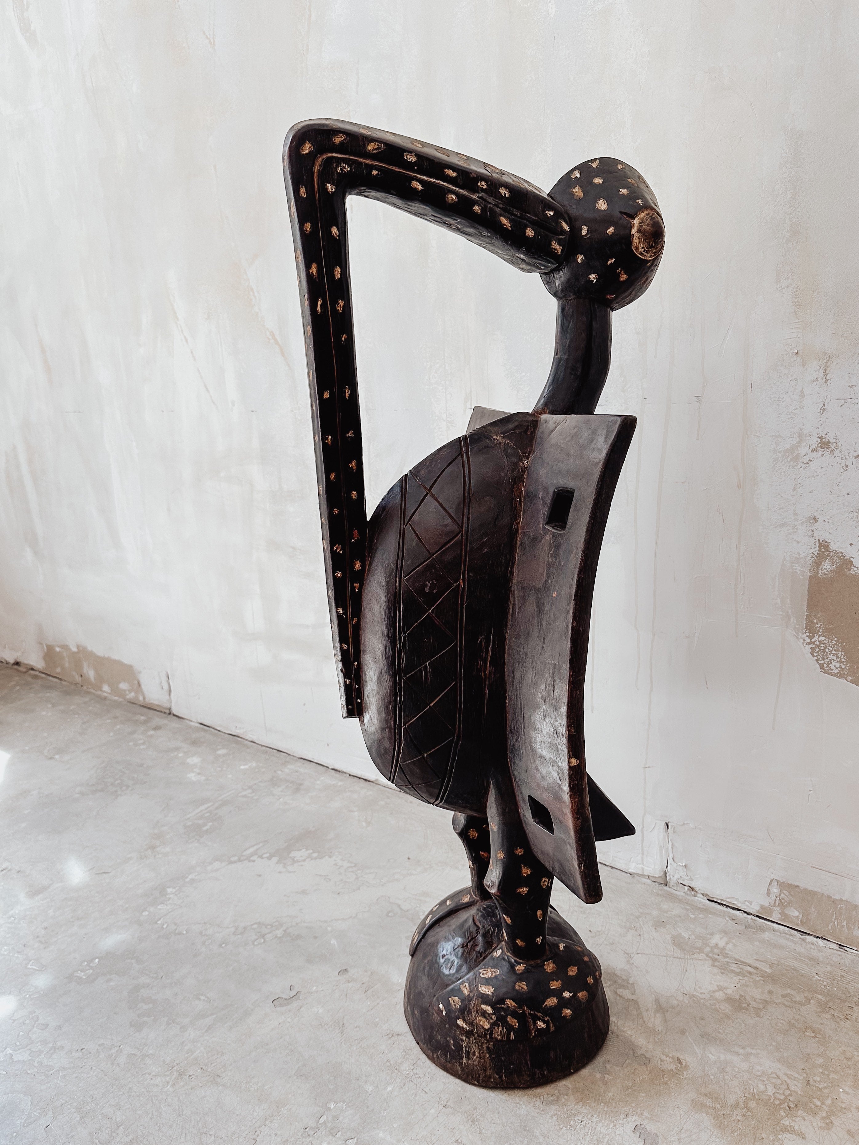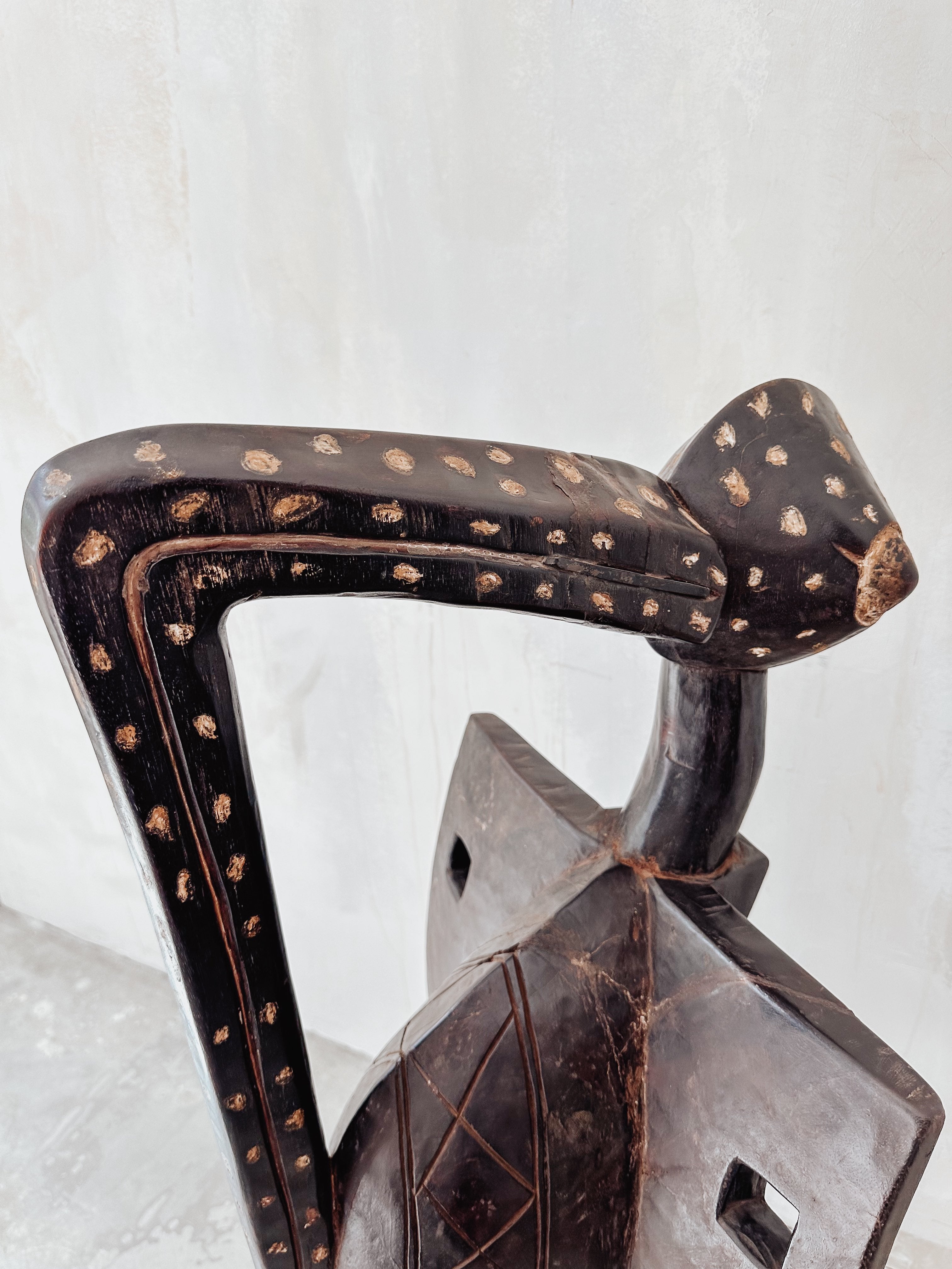 Diese einzigartige Skulptur stammt von der Elfenbeinküste aus der Region Korhogo und ist aus einem Stück Hartholz gefertigt.