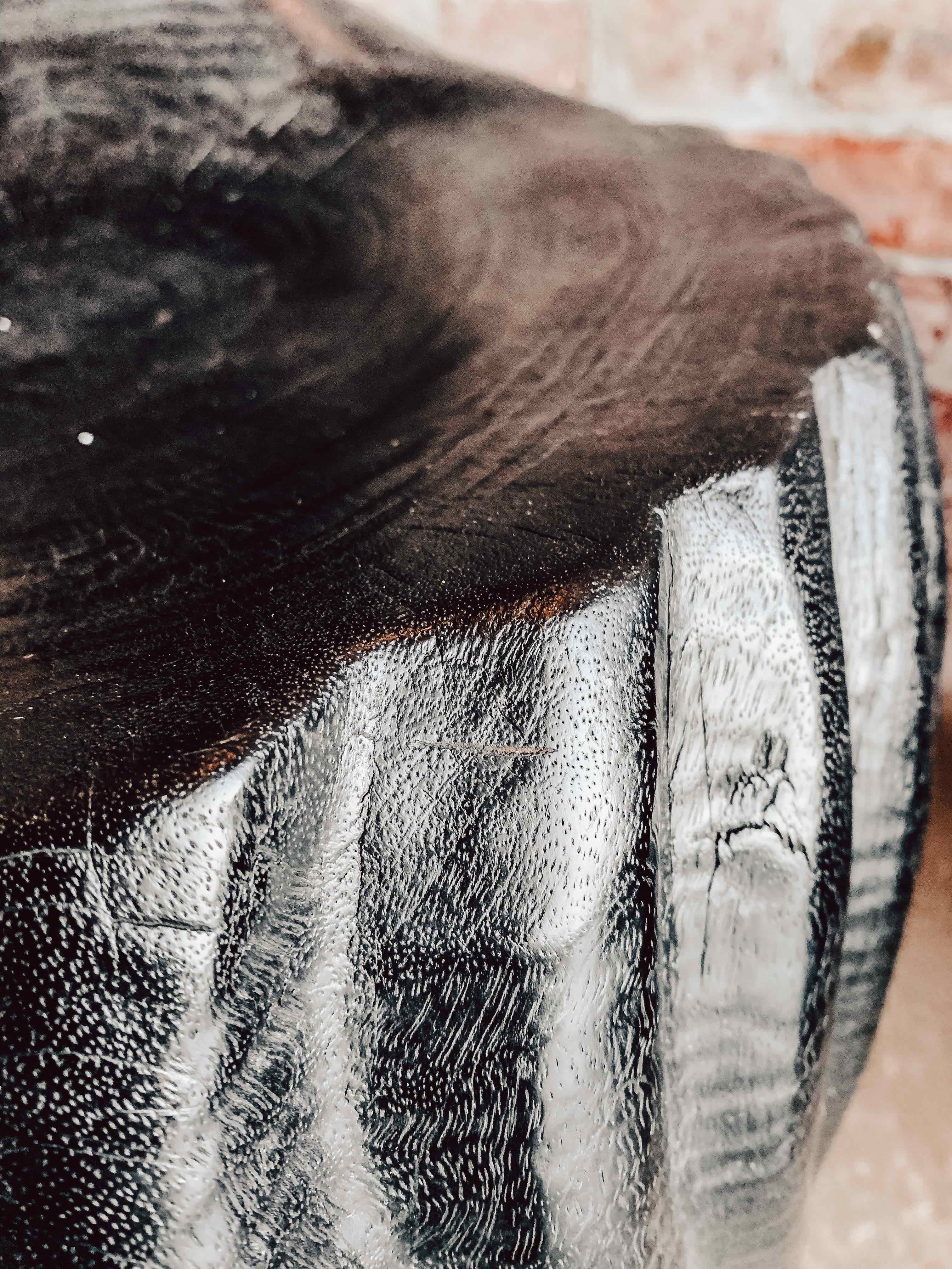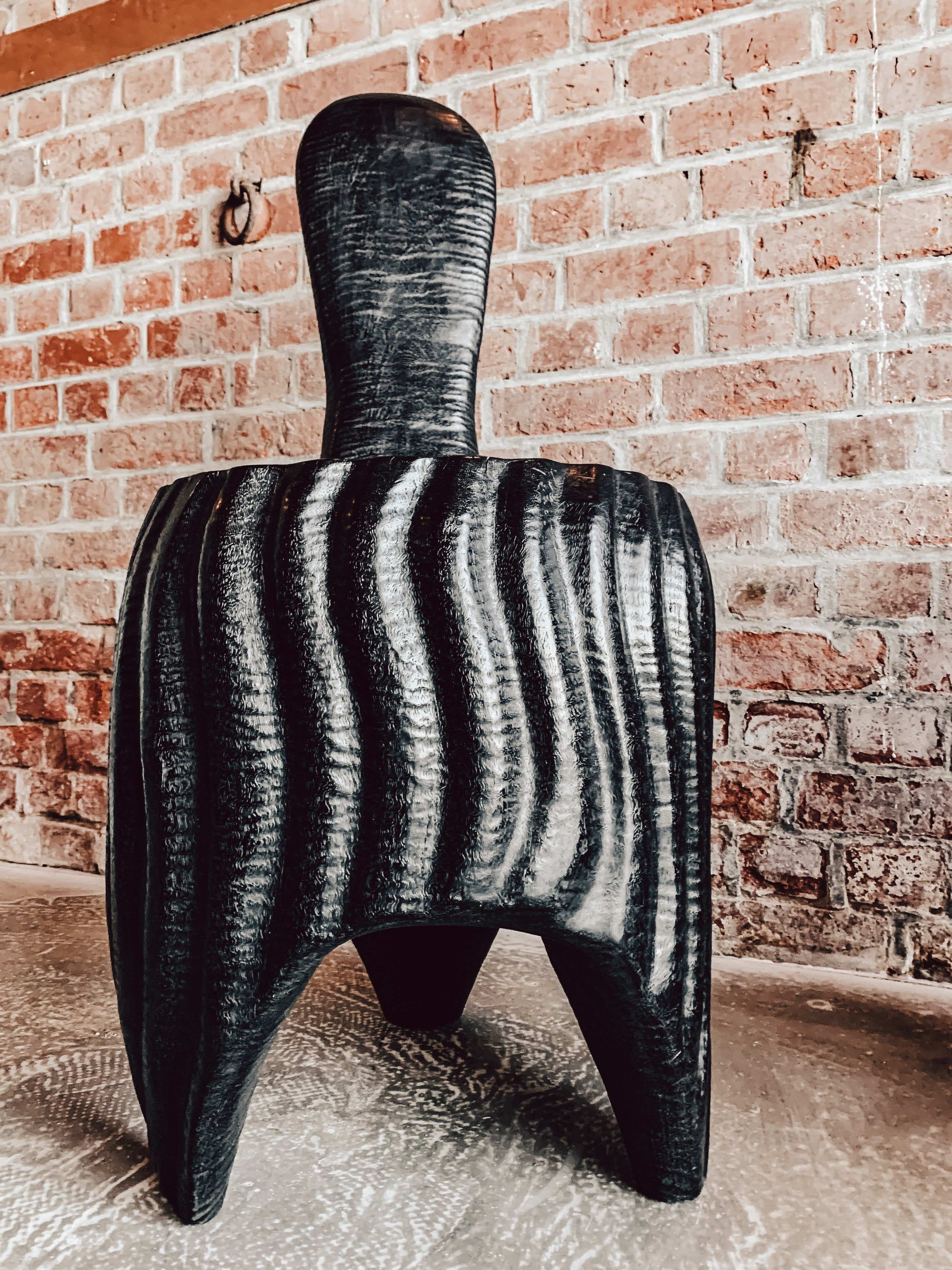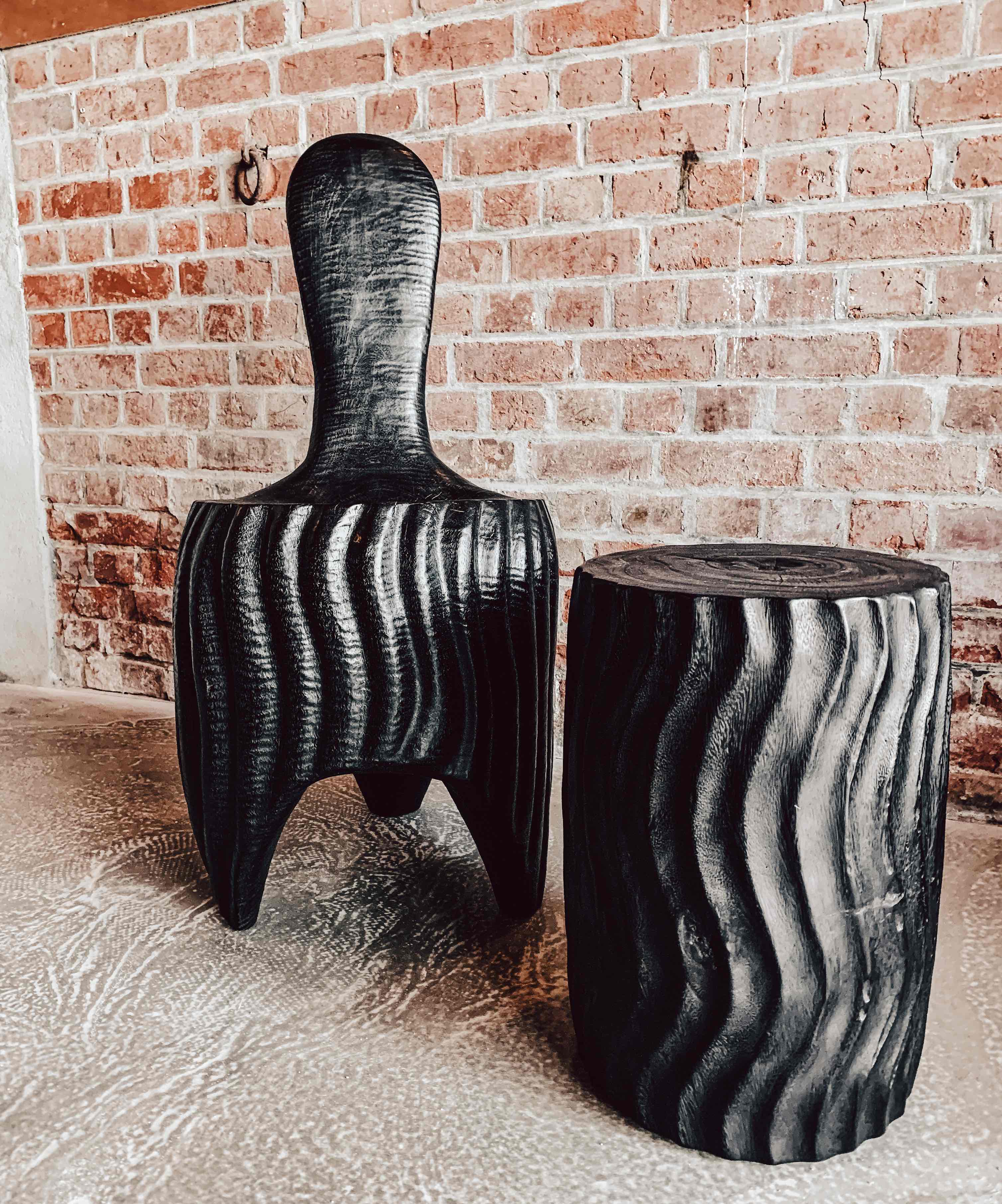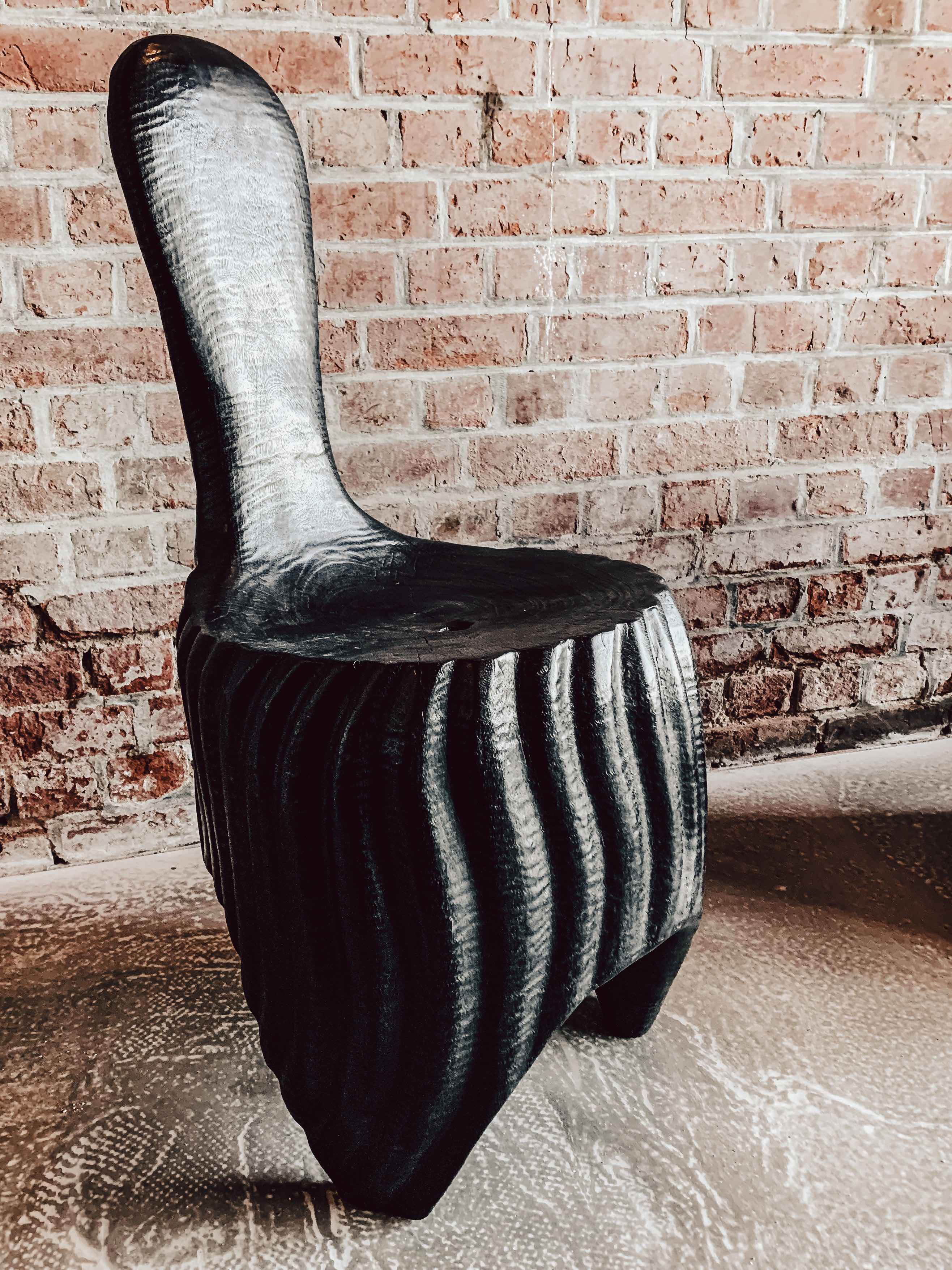 Pechschwarzer, schwerer Stuhl in geschwungenem Design. Aus Suar Wood, bekannt als asiatische Eiche.