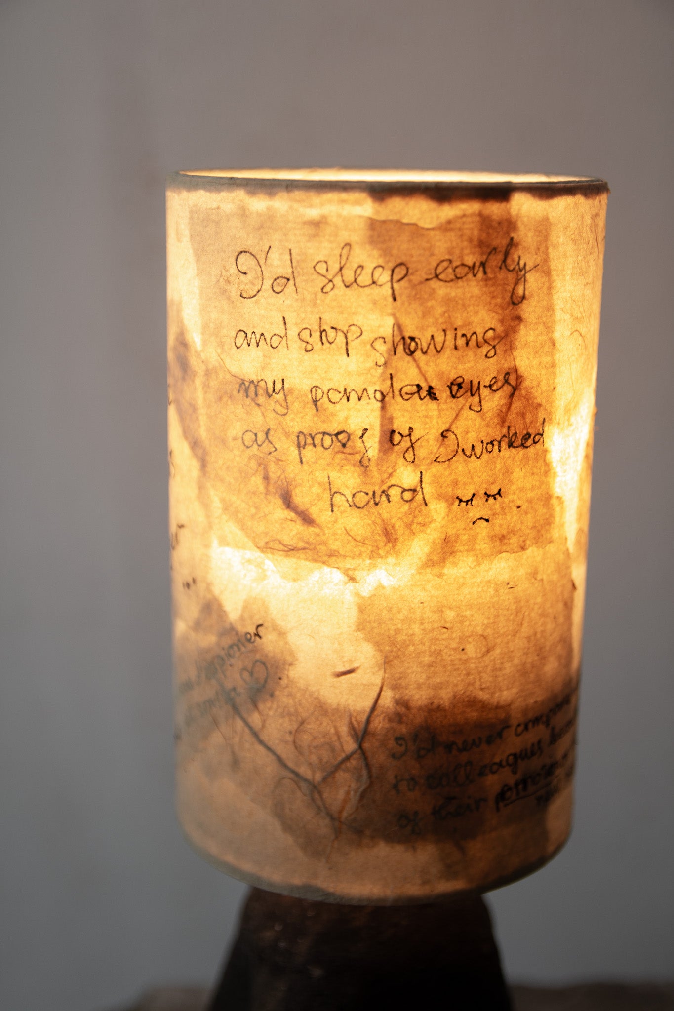 Die handgeschriebenen Notizen auf Dó-Papier sind Fragmente von Gedanken, entstanden im Spannungsfeld zwischen Beschleunigung und Achtsamkeit. Sie erinnern daran, langsamer zu werden und die flüchtigen Momente bewusst wahrzunehmen.