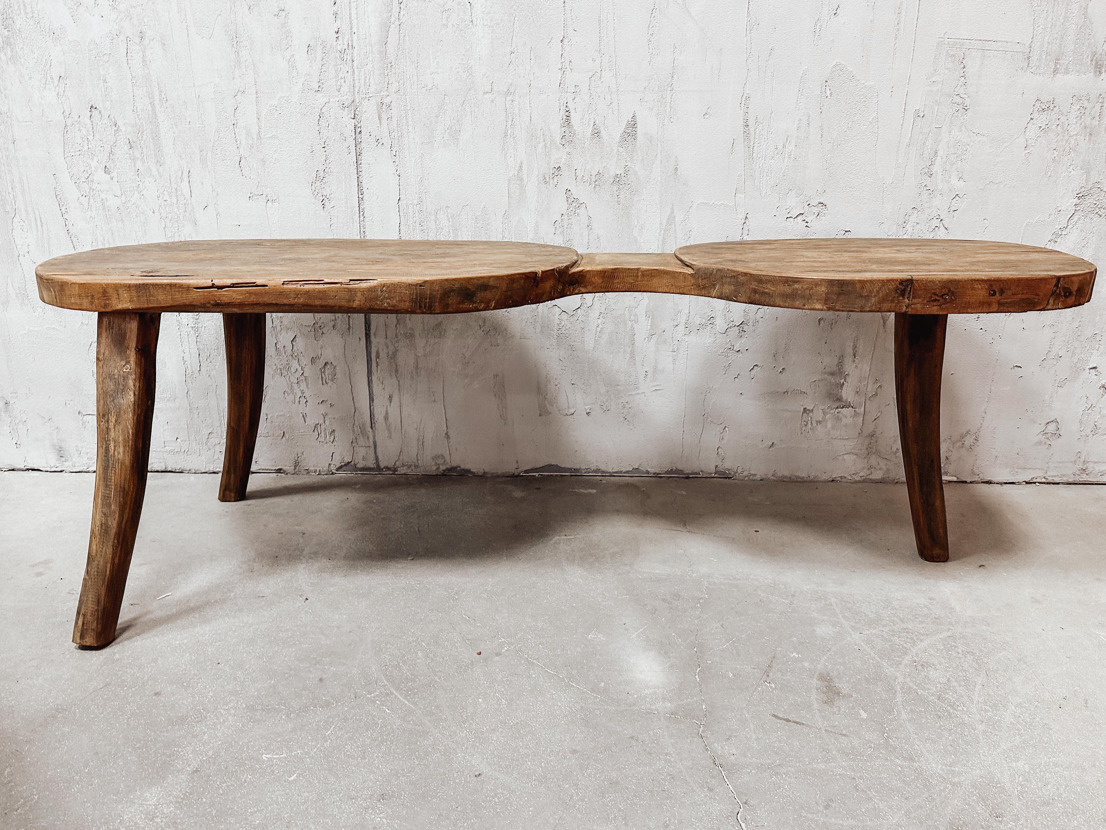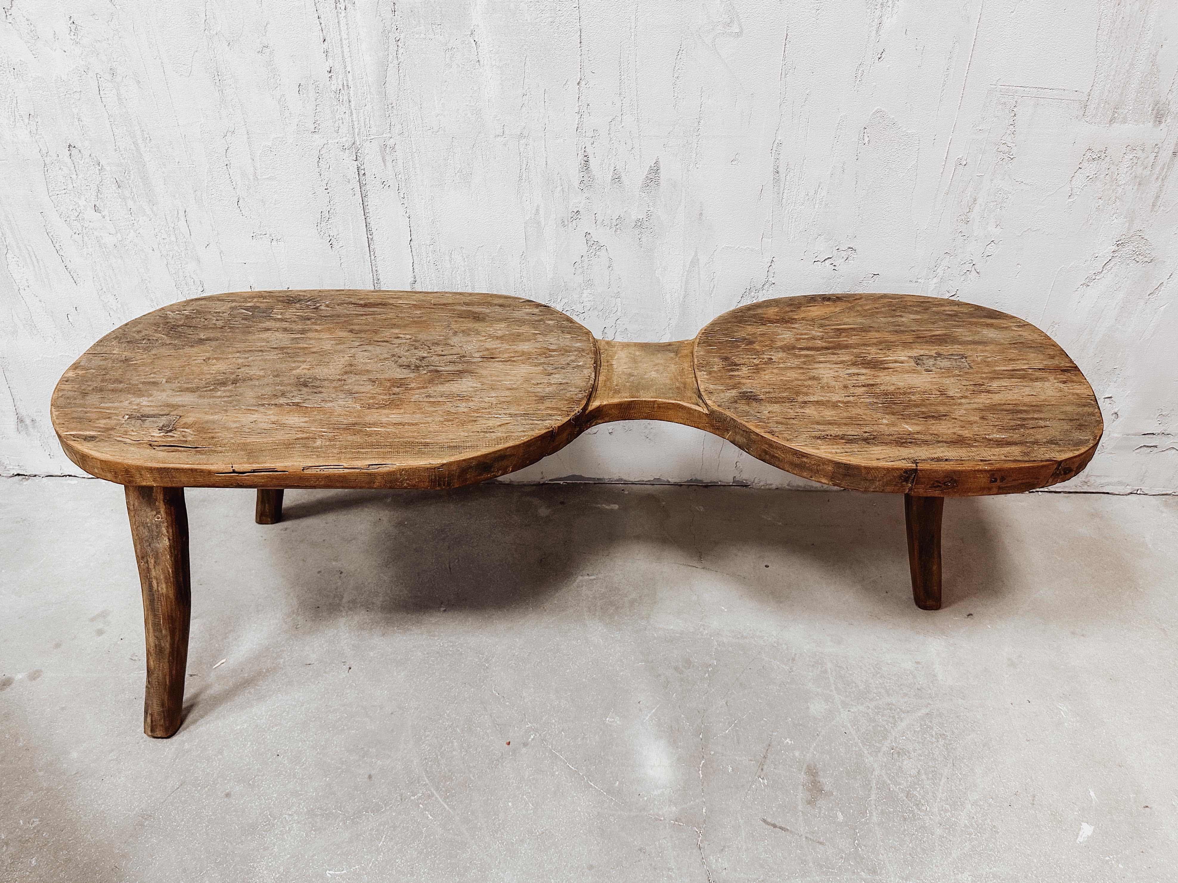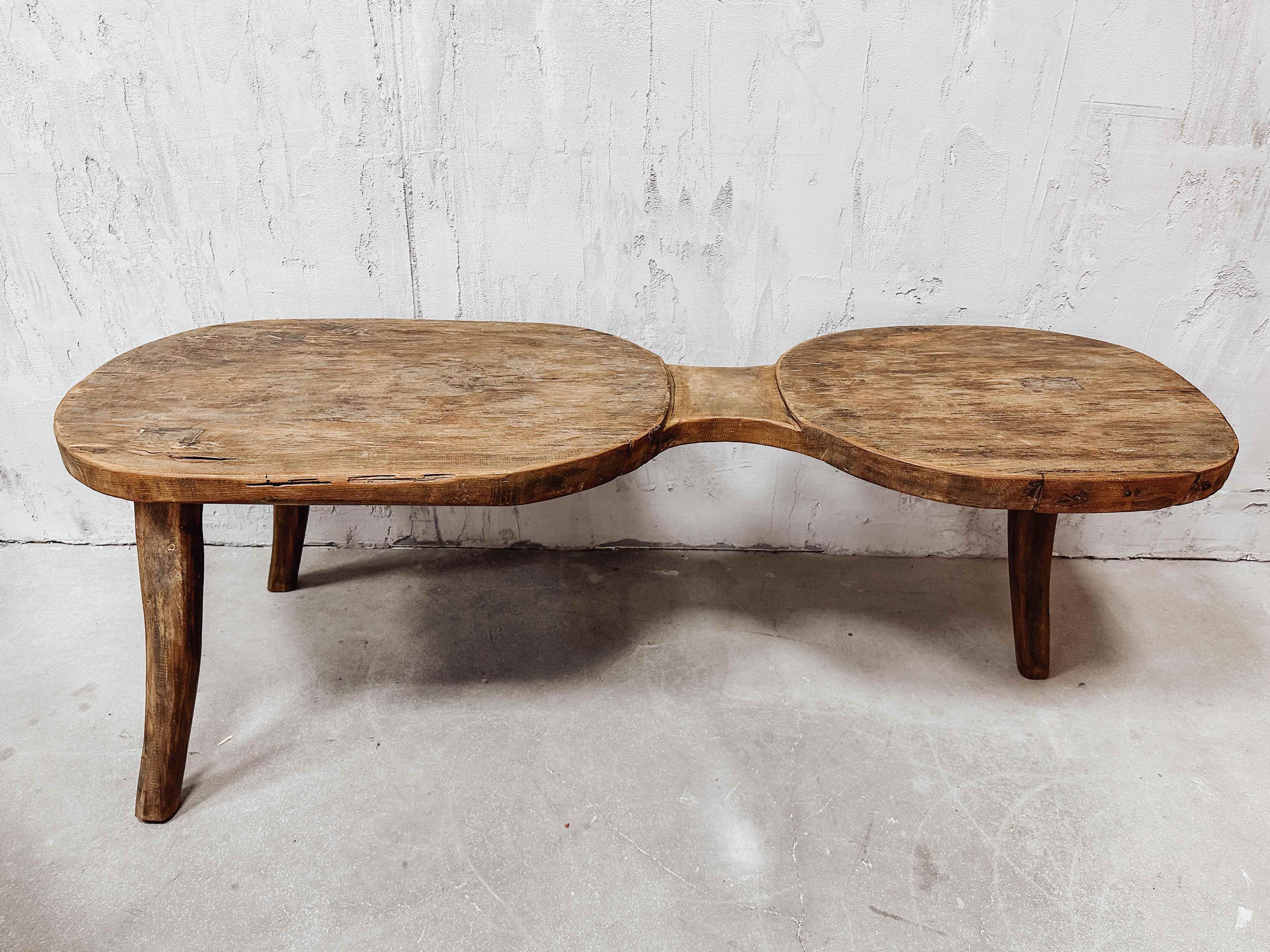 Coffee Table bestehend aus zwei runden Tischplatten. Handgefertigt, altes Teakholz.