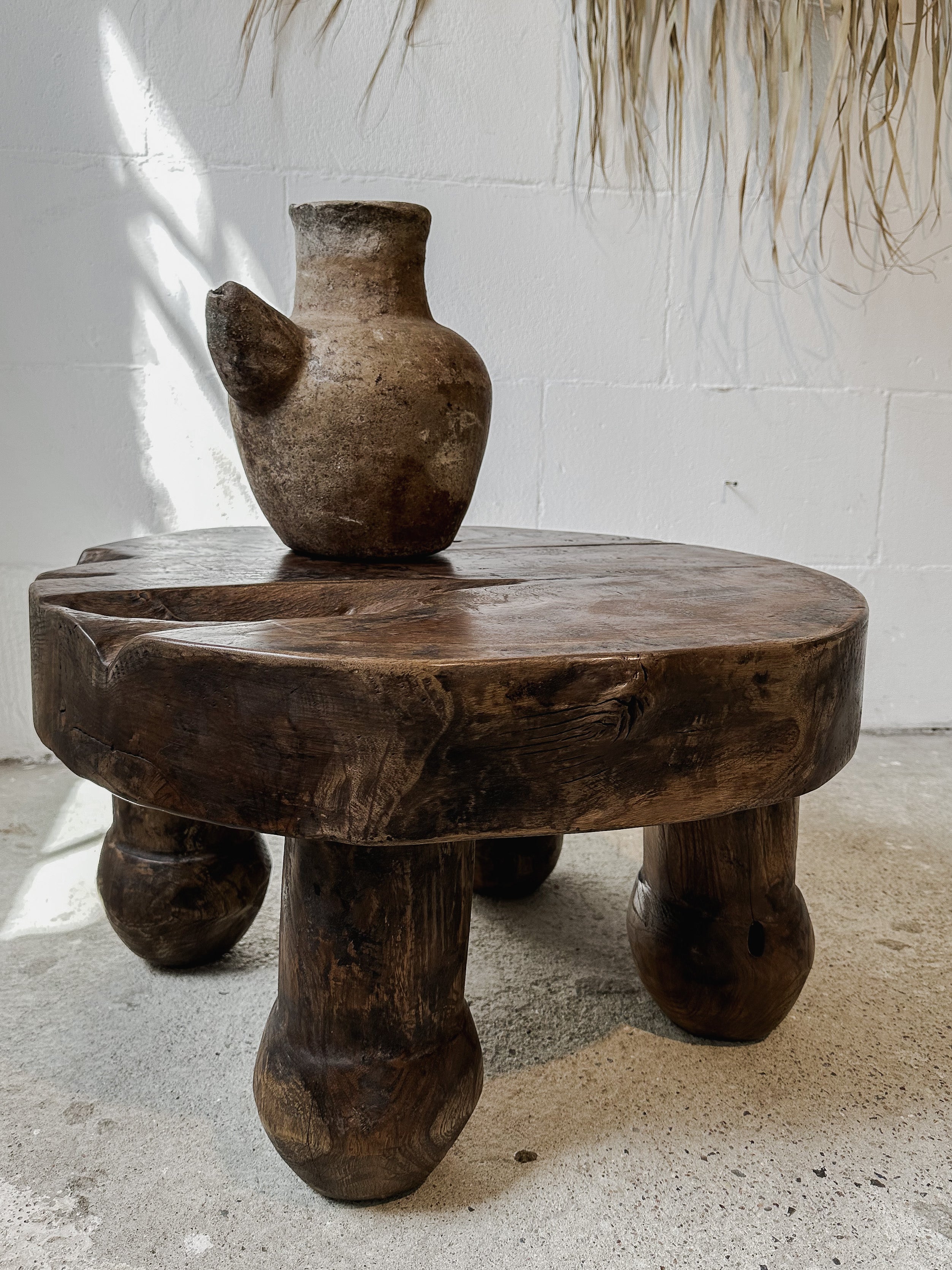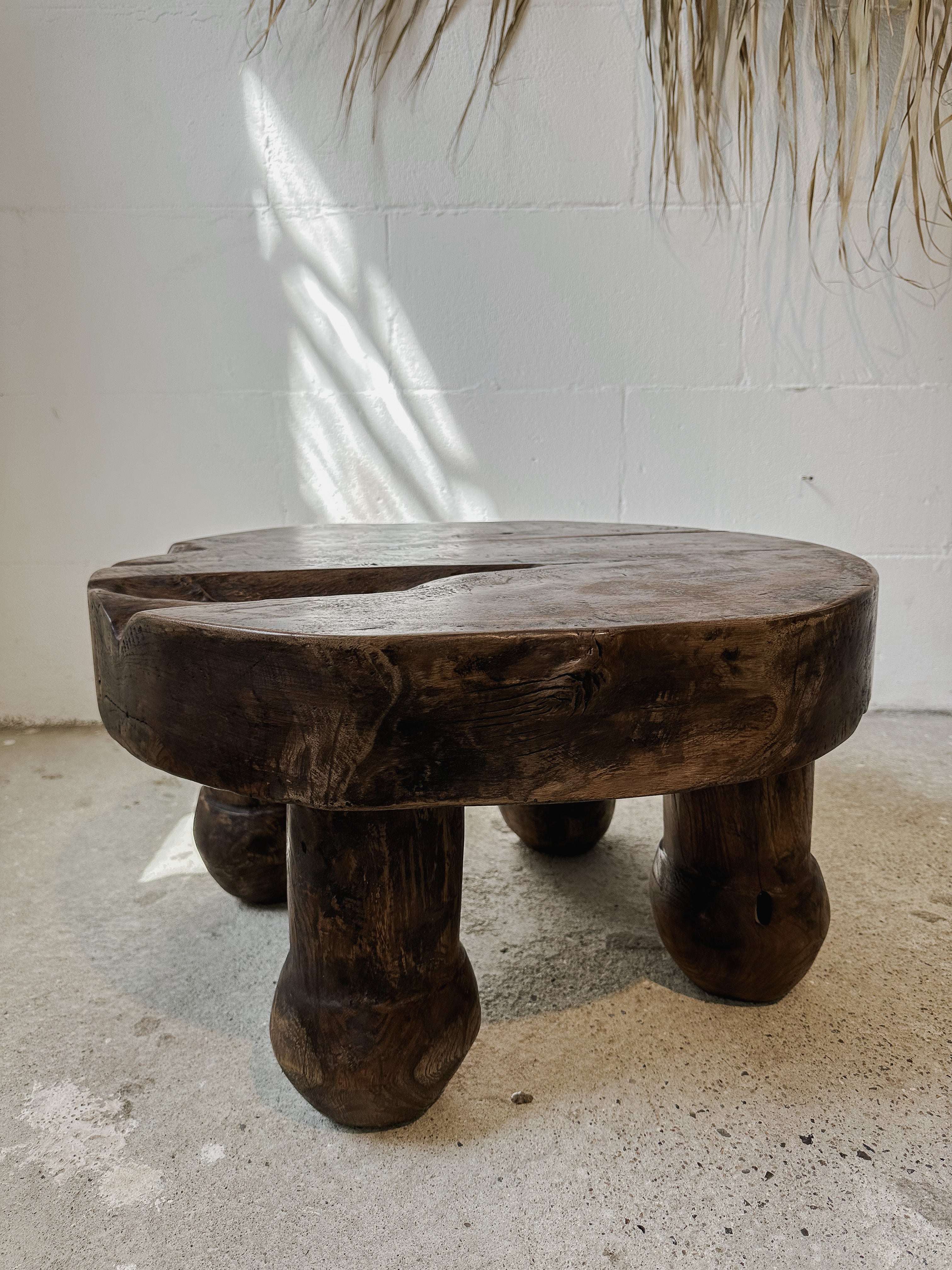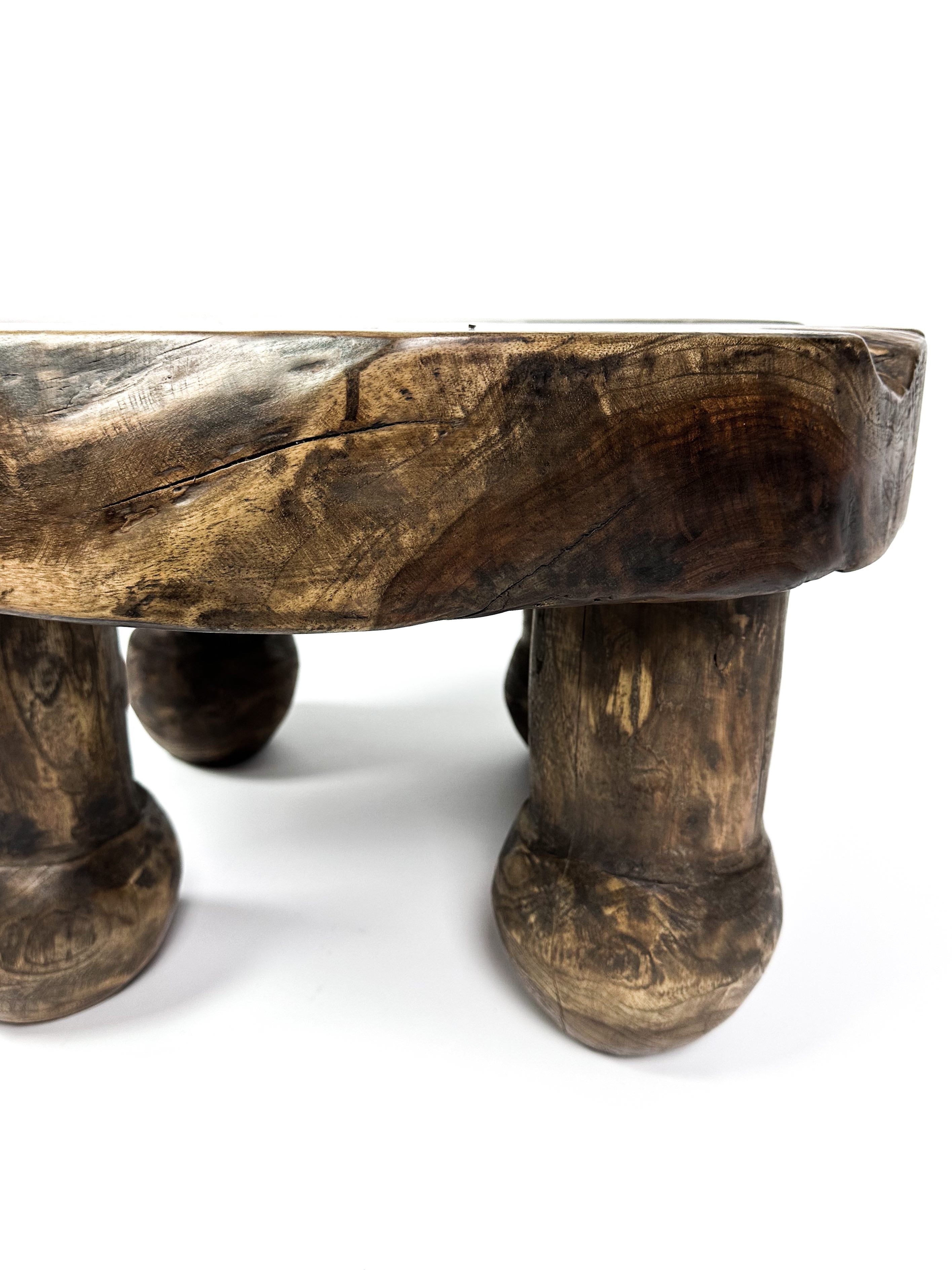 Von Hand gefertigter Coffee Table im Organic Look. Die Füße bestehen aus robusten Teakholz Bällen.