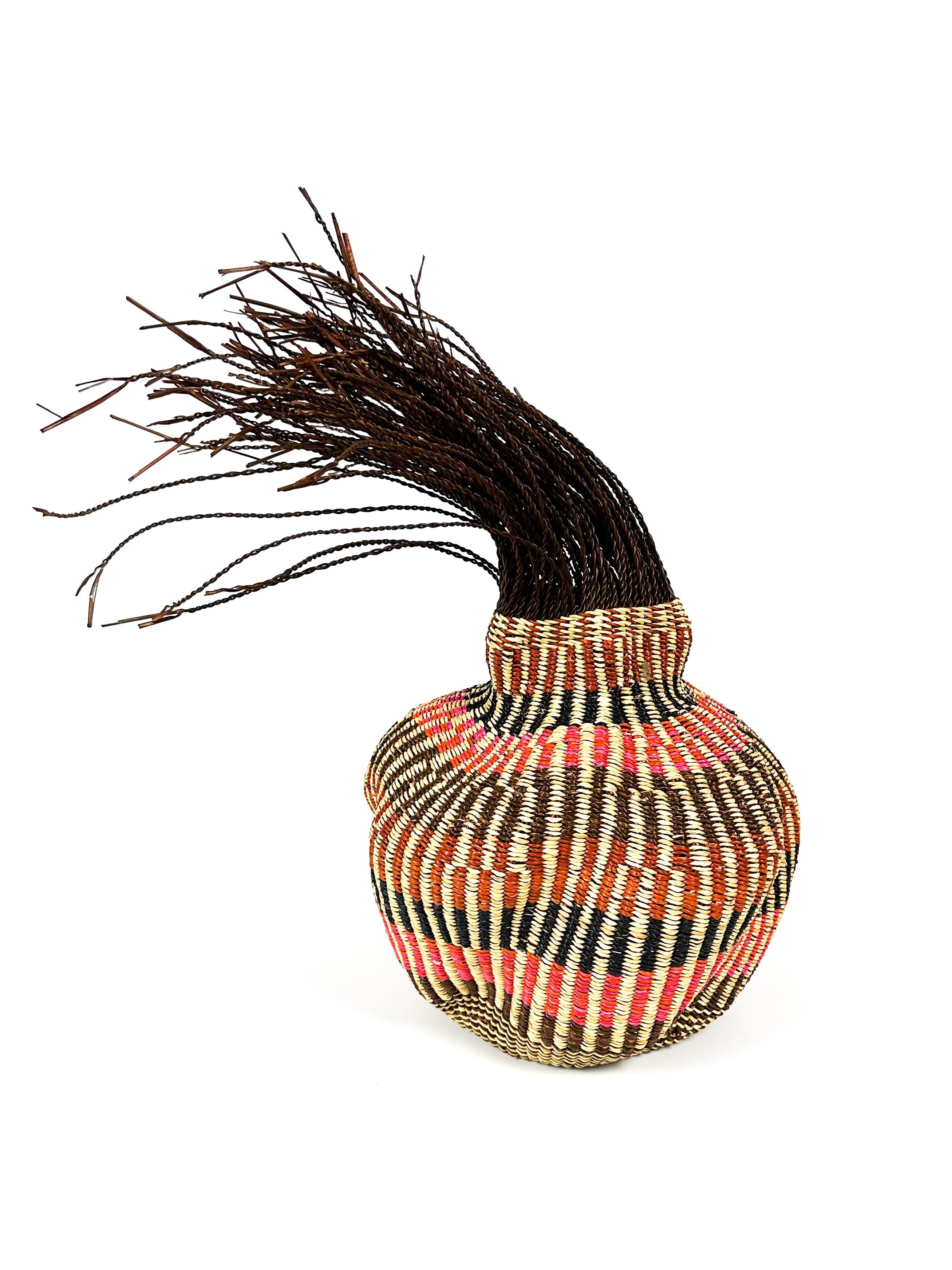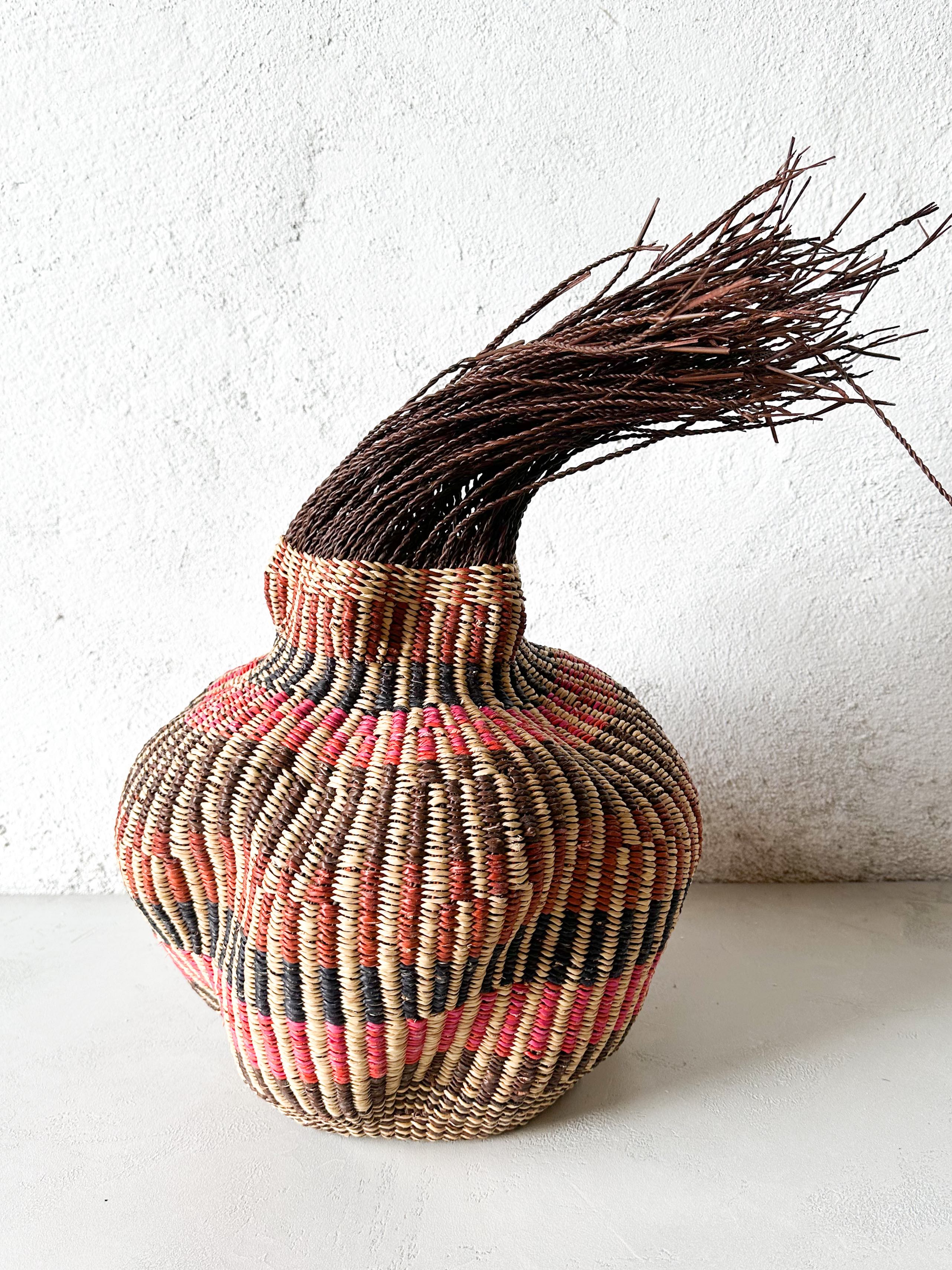 Die Tua Tia Körbe entstehen in der Gurunsi-Gemeinschaft in Bolgatanga. Jede üppige Kurve ist der Handabdruck oder die Signatur des Webers, der deinen Korb fachmännisch handgefertigt hat. Wir lieben die einzigartigen Unterschiede in jedem einzelnen Stück.