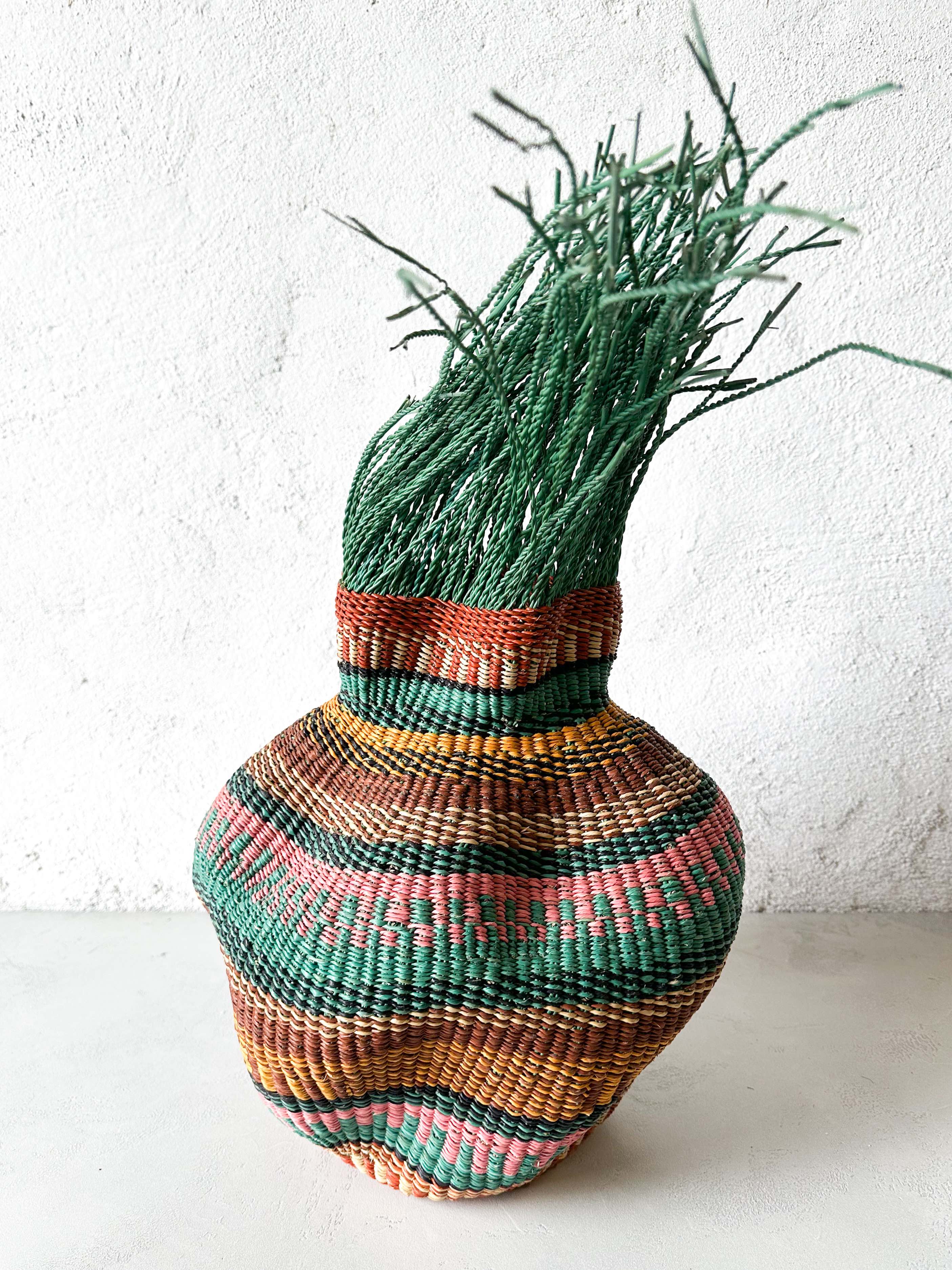 Die Tua Tia Körbe entstehen in der Gurunsi-Gemeinschaft in Bolgatanga. Jede üppige Kurve ist der Handabdruck oder die Signatur des Webers, der deinen Korb fachmännisch handgefertigt hat. Wir lieben die einzigartigen Unterschiede in jedem einzelnen Stück.