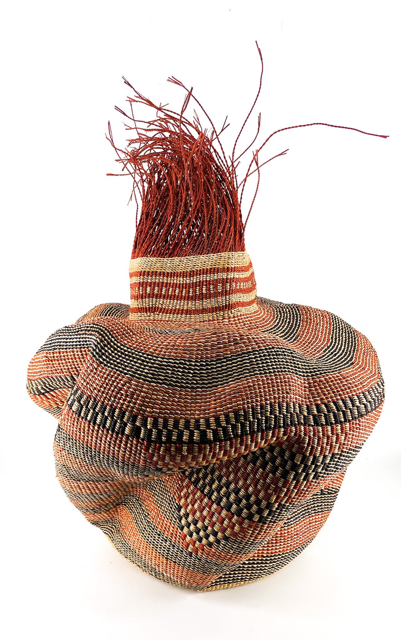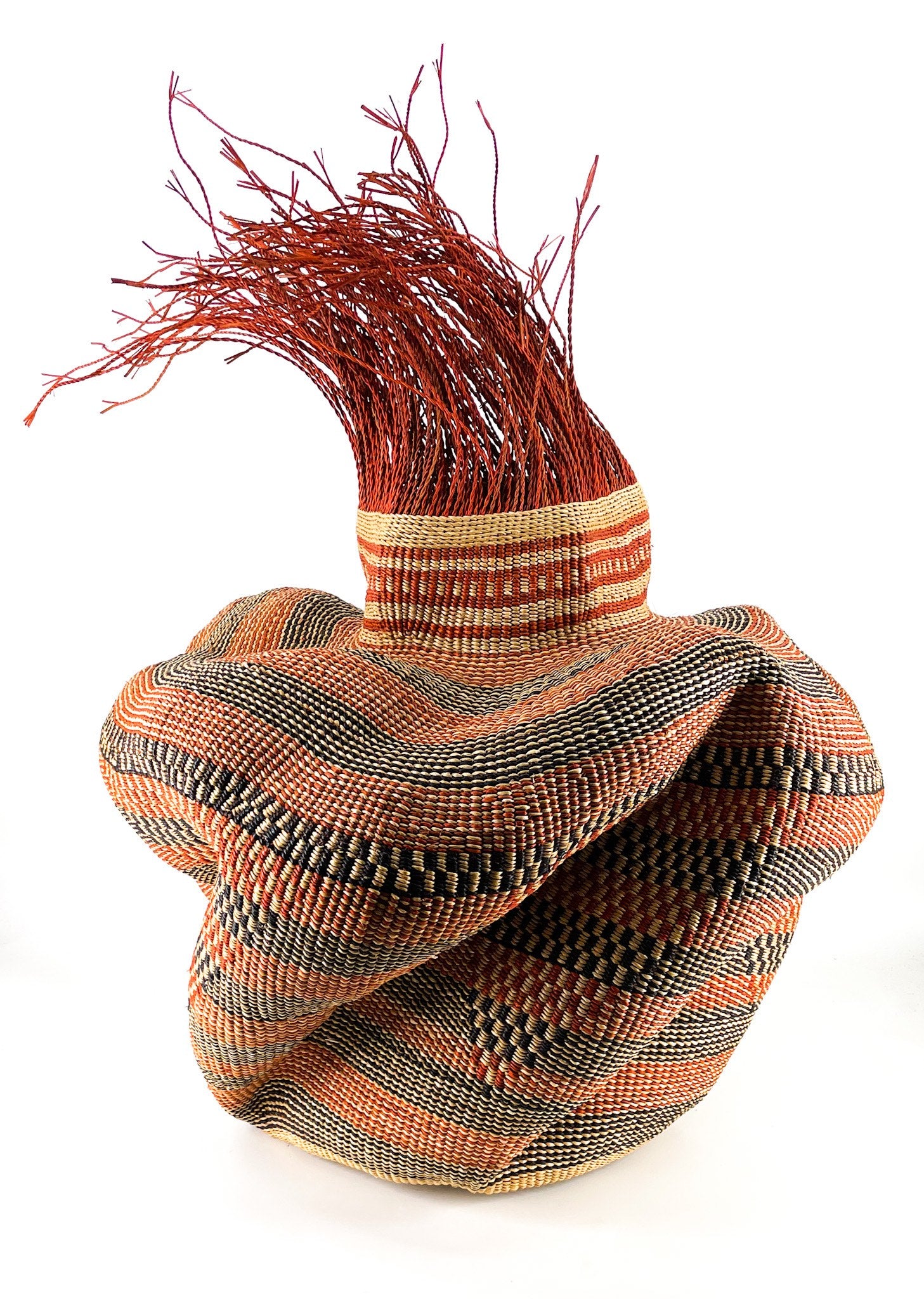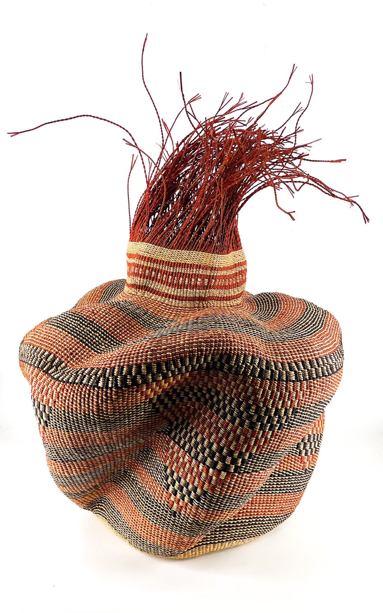Die Tua Tia Körbe entstehen in der Gurunsi-Gemeinschaft in Bolgatanga. Jede üppige Kurve ist der Handabdruck oder die Signatur des Webers, der deinen Korb fachmännisch handgefertigt hat. Wir lieben die einzigartigen Unterschiede in jedem einzelnen Stück.