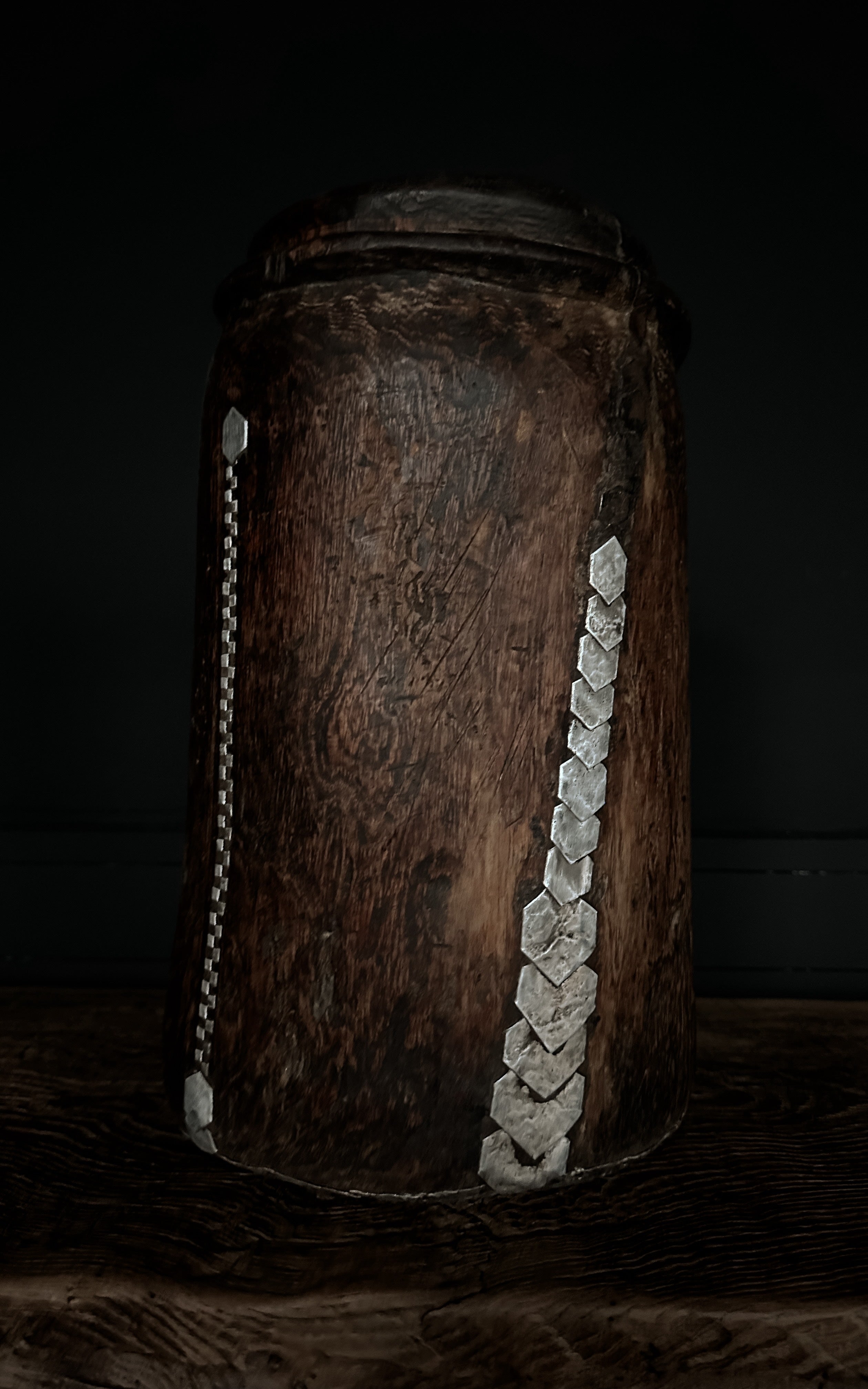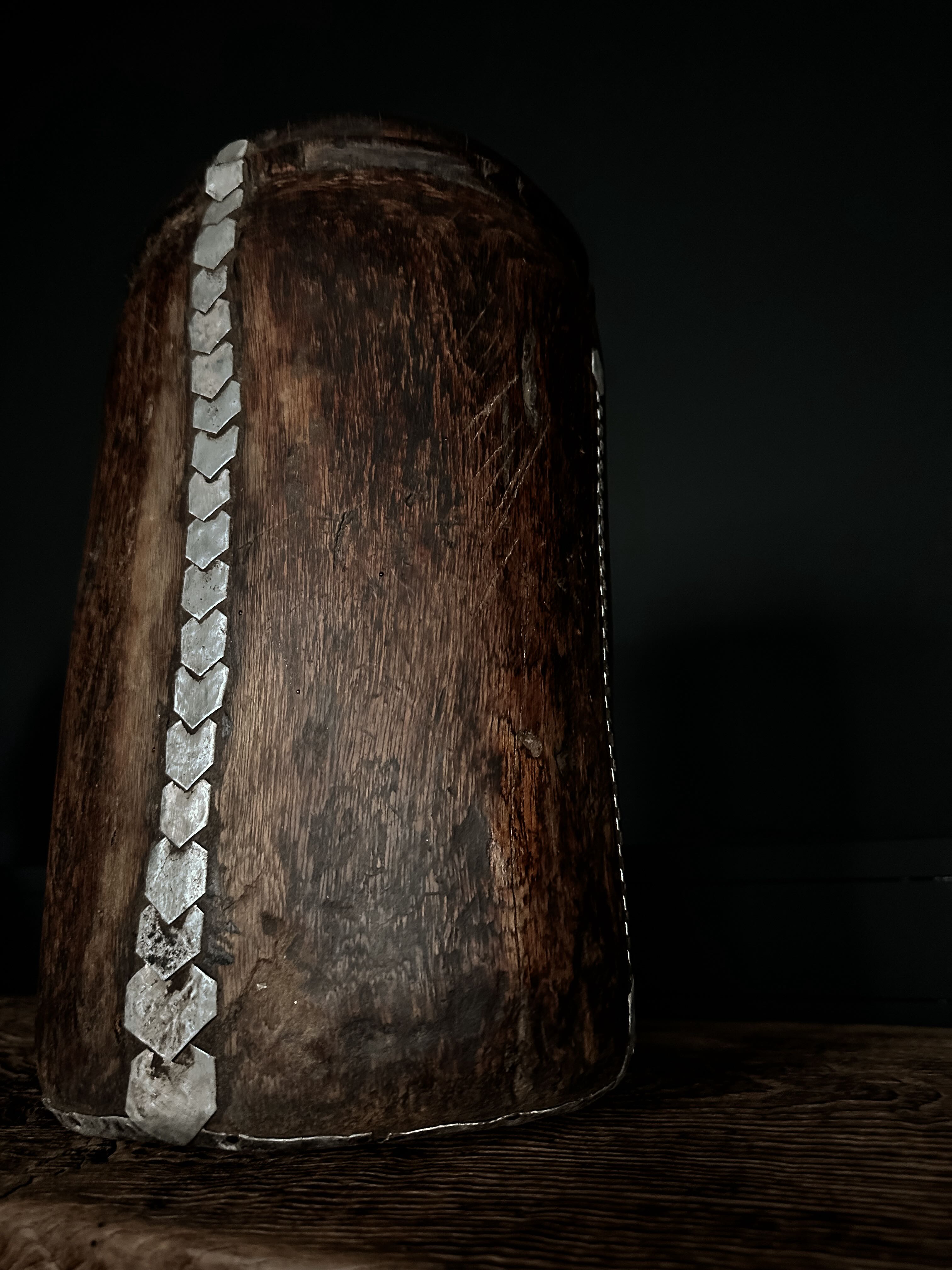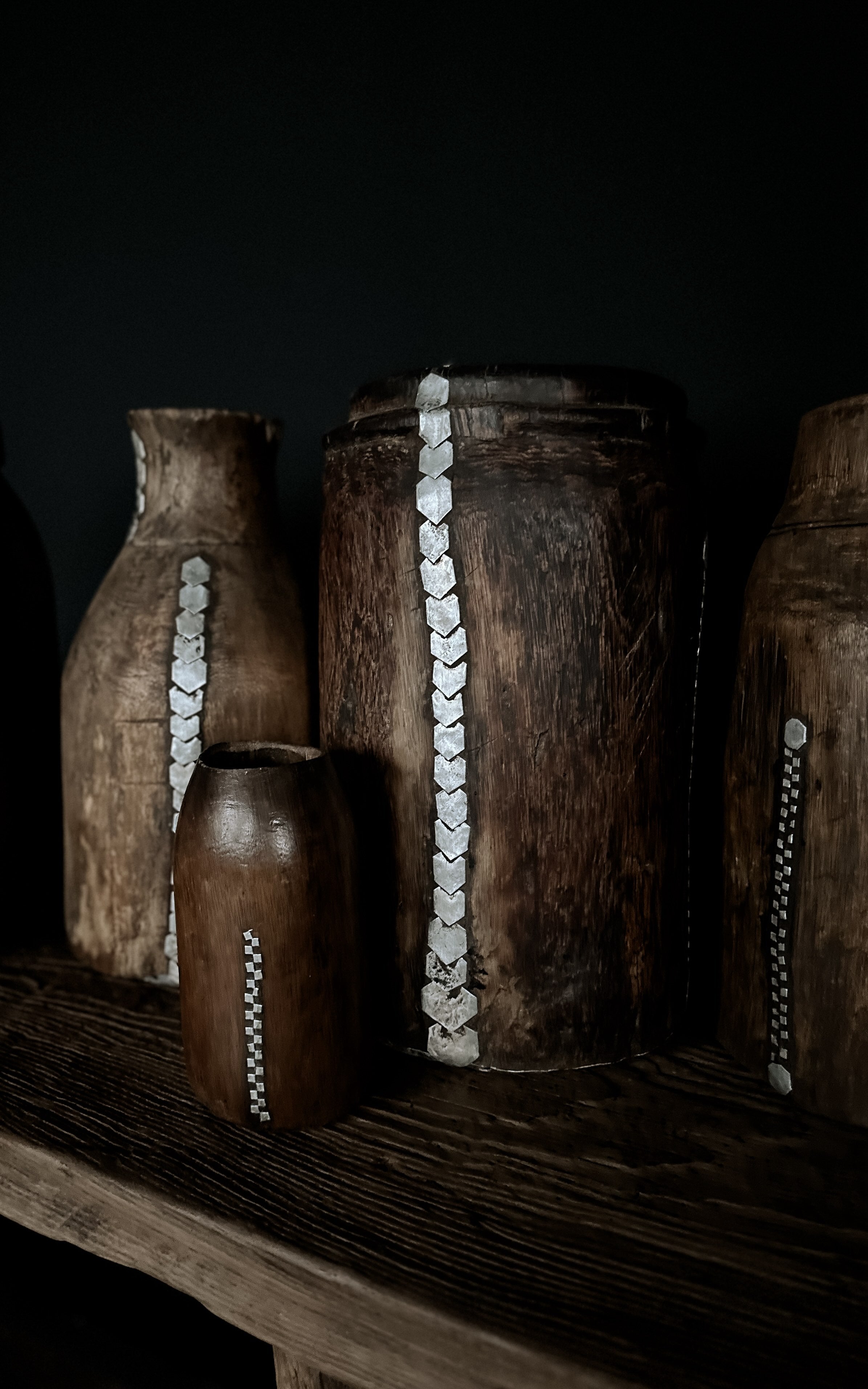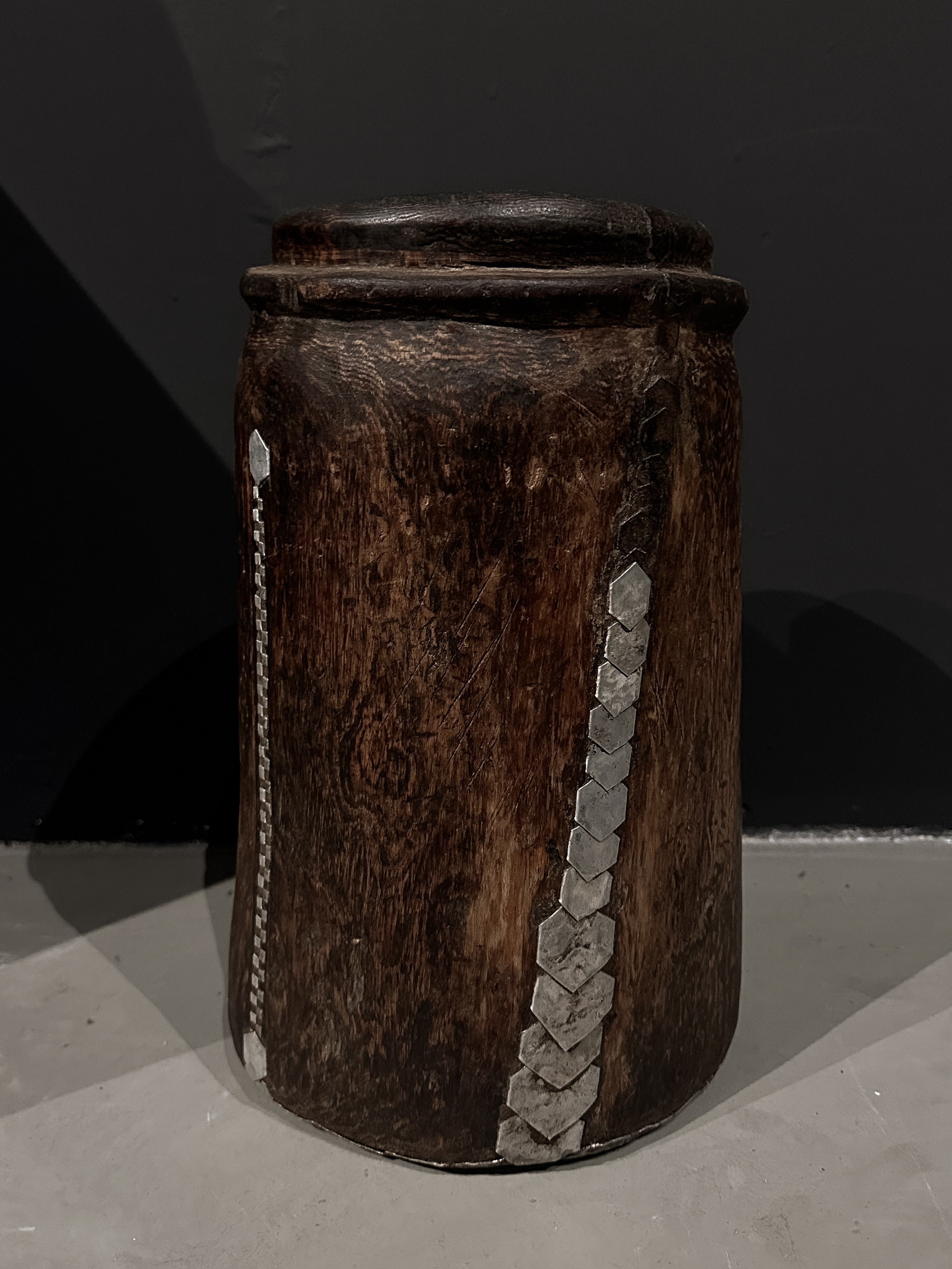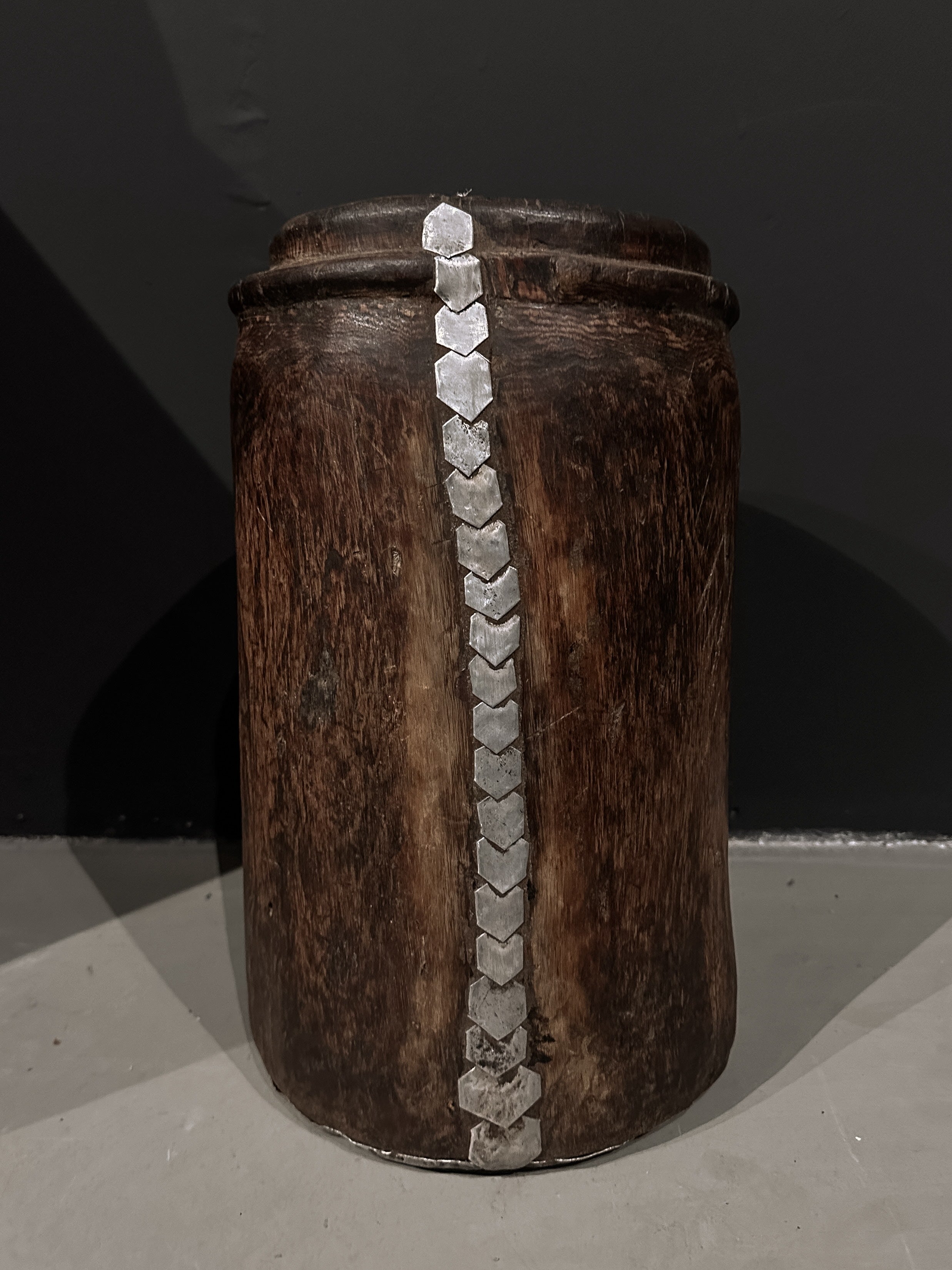 Diese kunstvollen Behälter sind meisterhaft von Hand aus einem einzigen Holzblock geschnitzt und mit Zinnverzierungen akzentuiert. Sie dienten dem Tutsi-Volk Ruandas sowie den Nomadengemeinschaften im ländlichen Hinterland von Burundi, Kenia und Nordtansania als unverzichtbare Gebrauchsgegenstände. So wurden diese Gefäße ursprünglich zum Sammeln von Milch oder Honig verwendet.