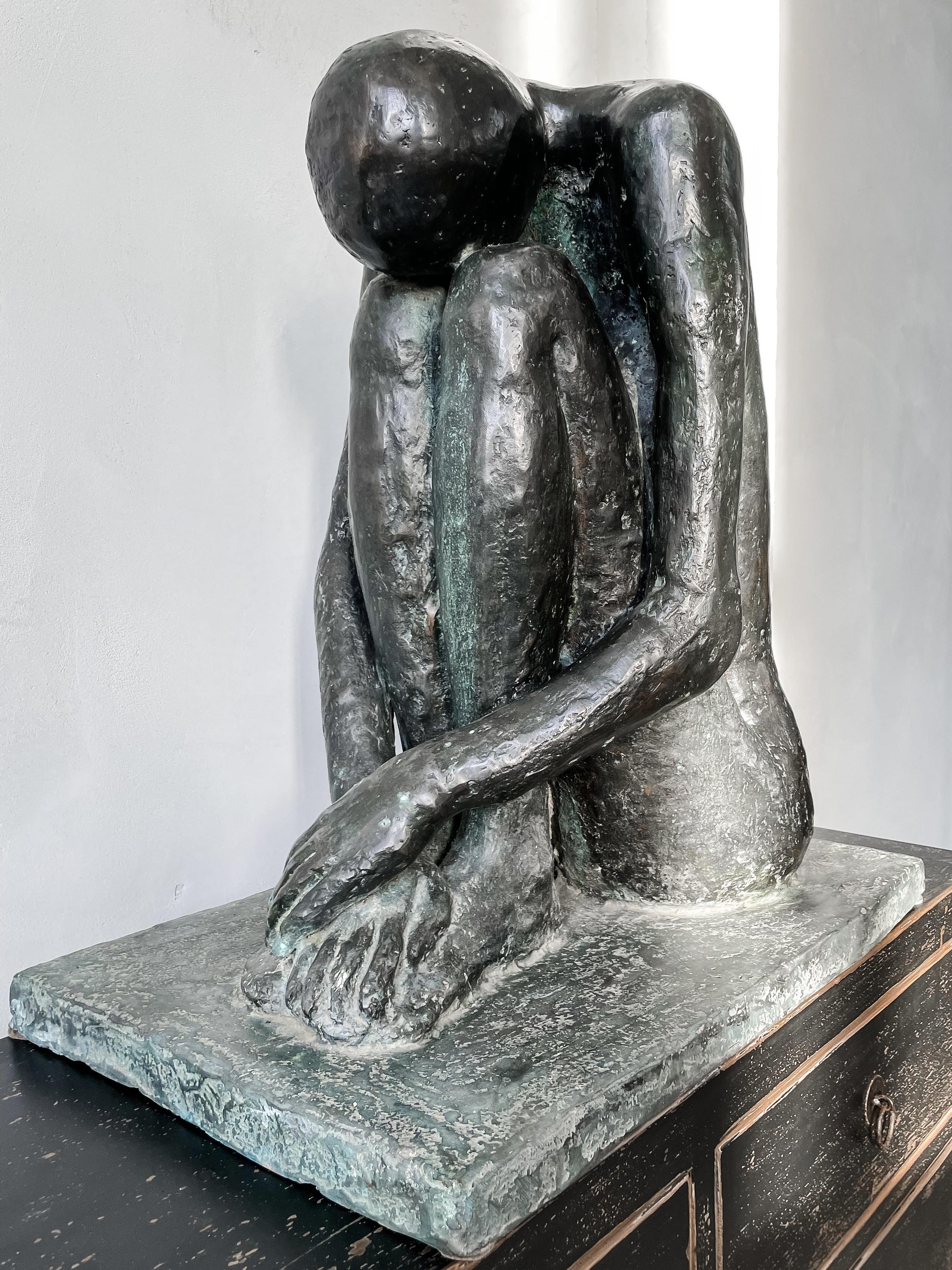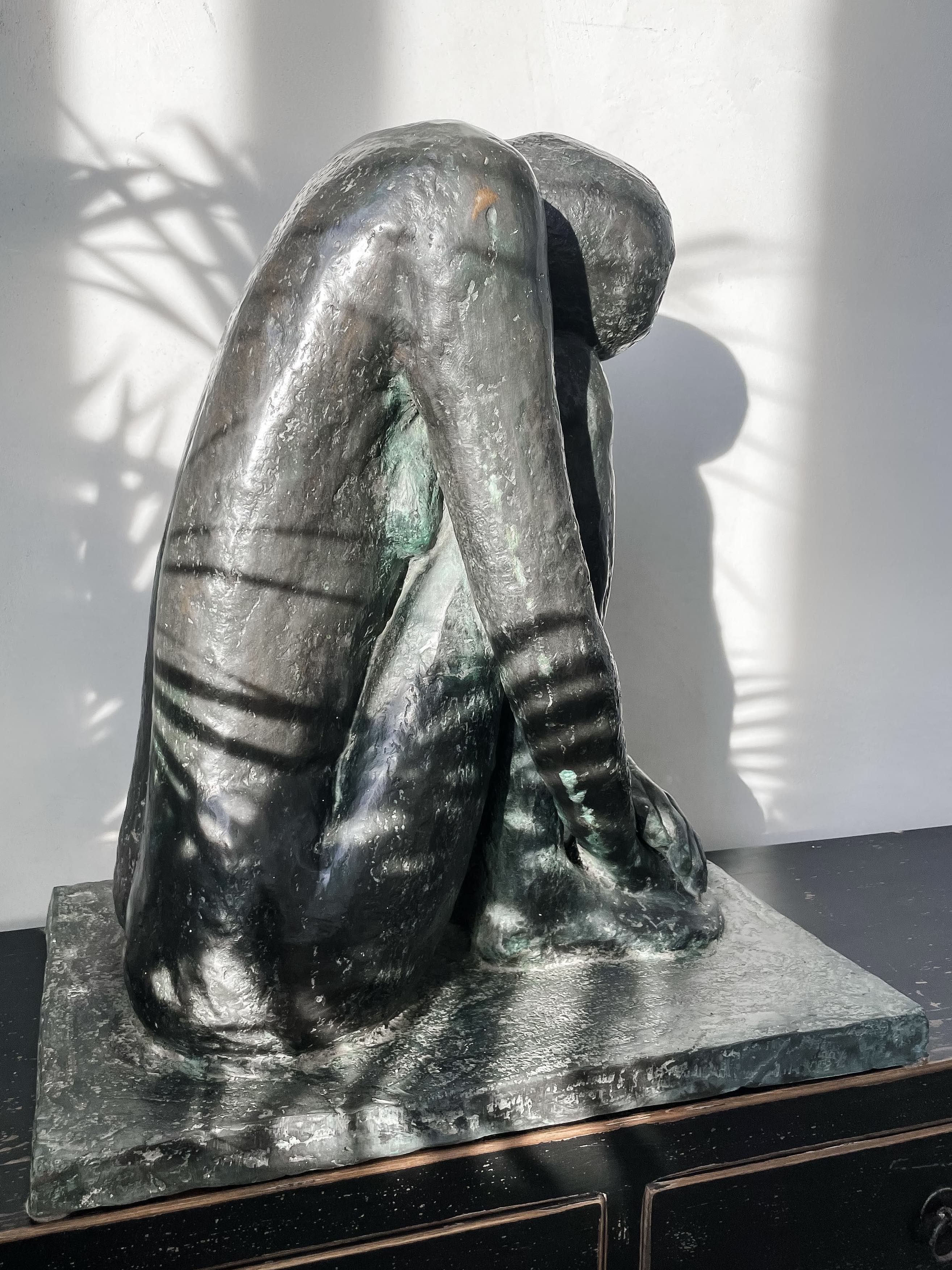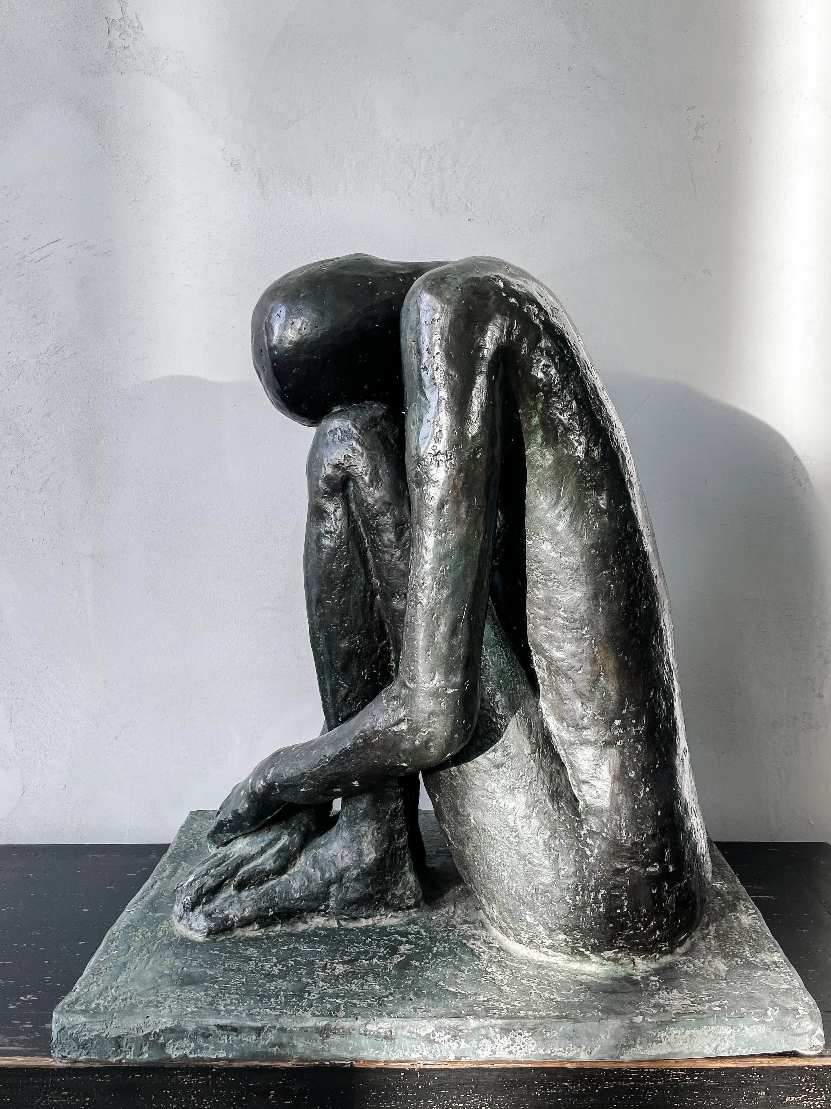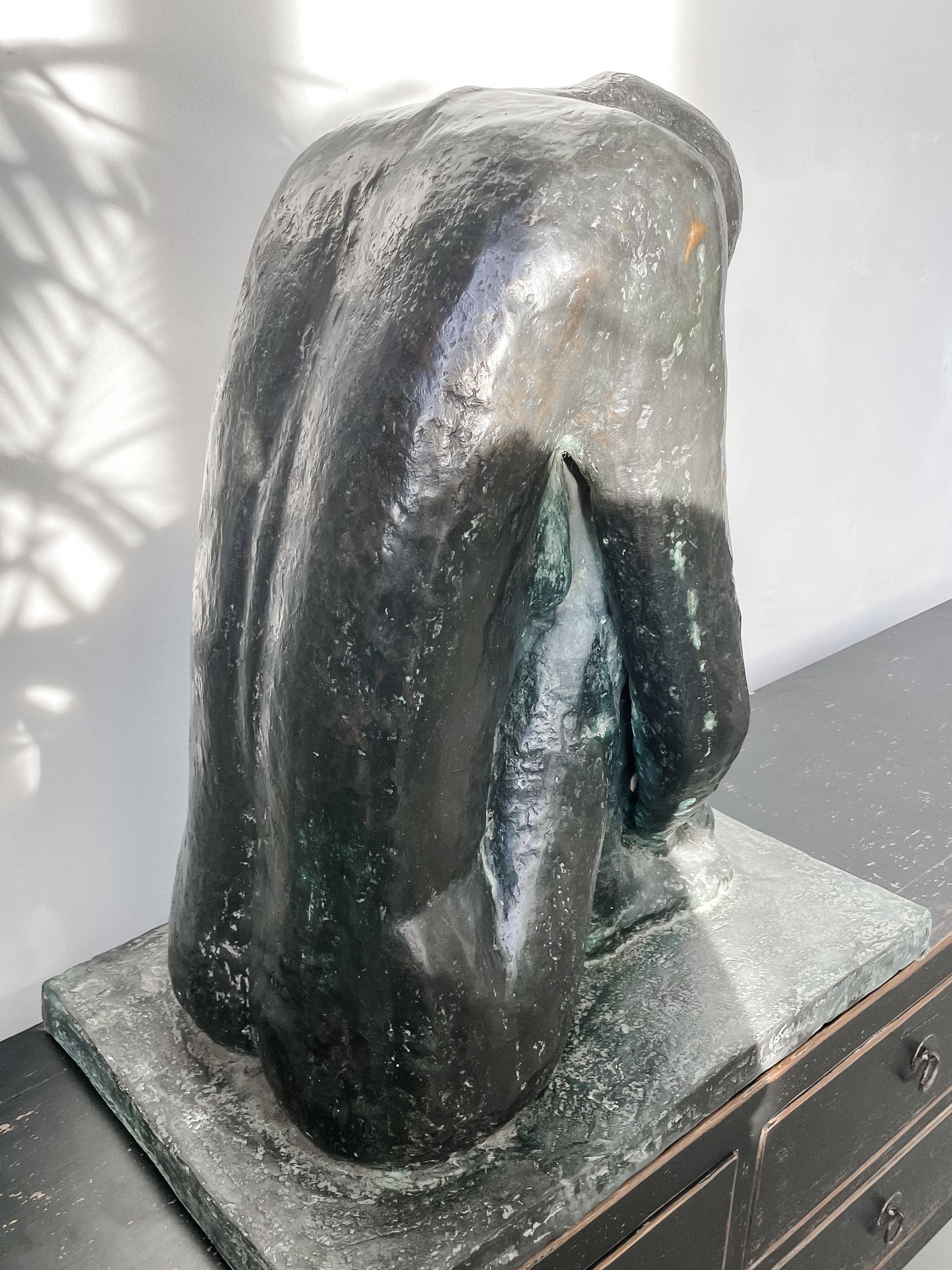 Beeindruckende Bronzeskulptur, die mit ihrer eleganten Form und zeitlosen Aura begeistert. Ihre genaue Herkunft und ihr Alter bleiben ein Rätsel, doch man vermutet, dass sie aus Frankreich stammt. Die wunderschöne Patina lässt auf ein Alter von etwa 50 bis 60 Jahren schließen – ein stiller Zeuge vergangener Jahrzehnte.