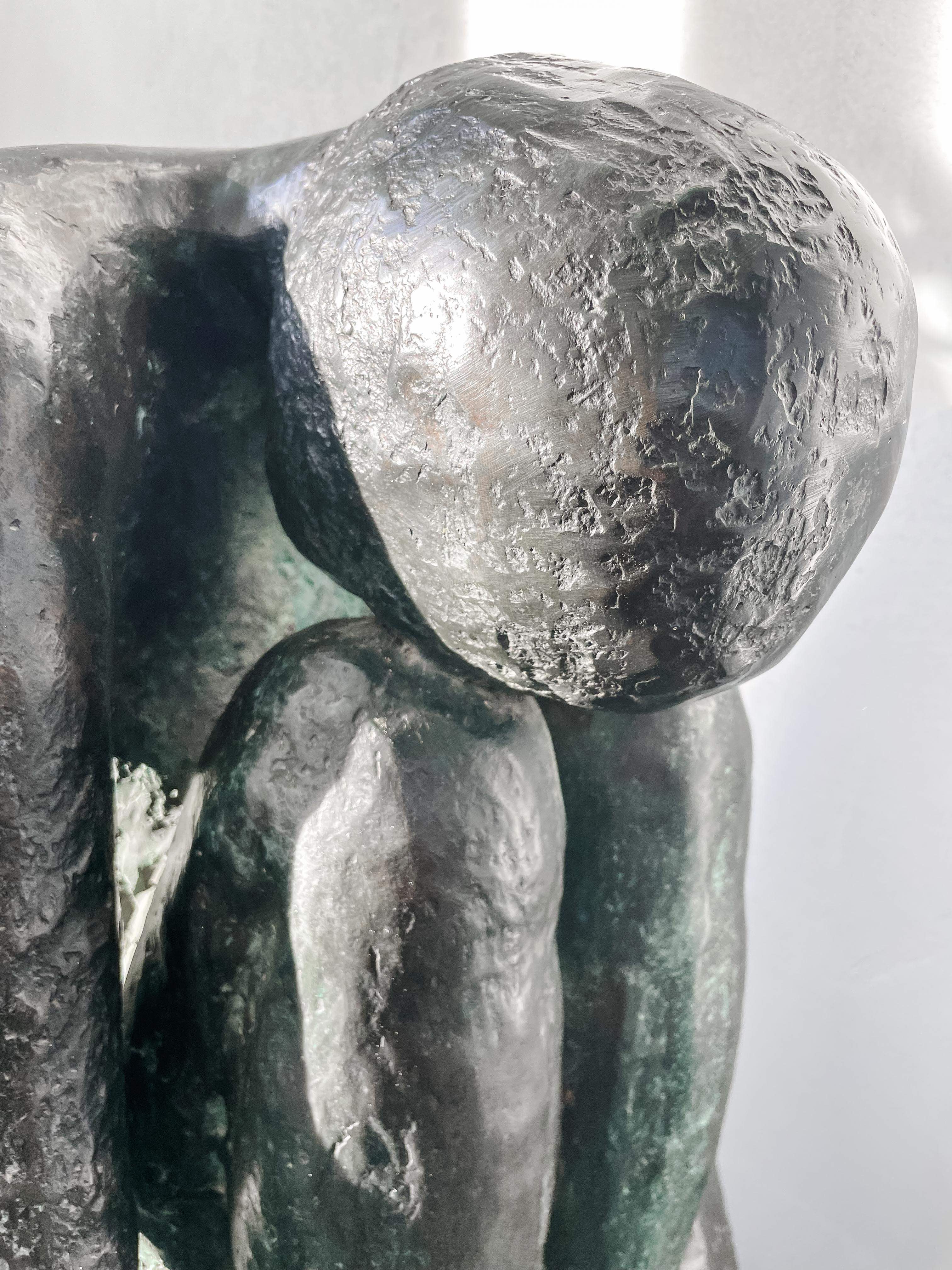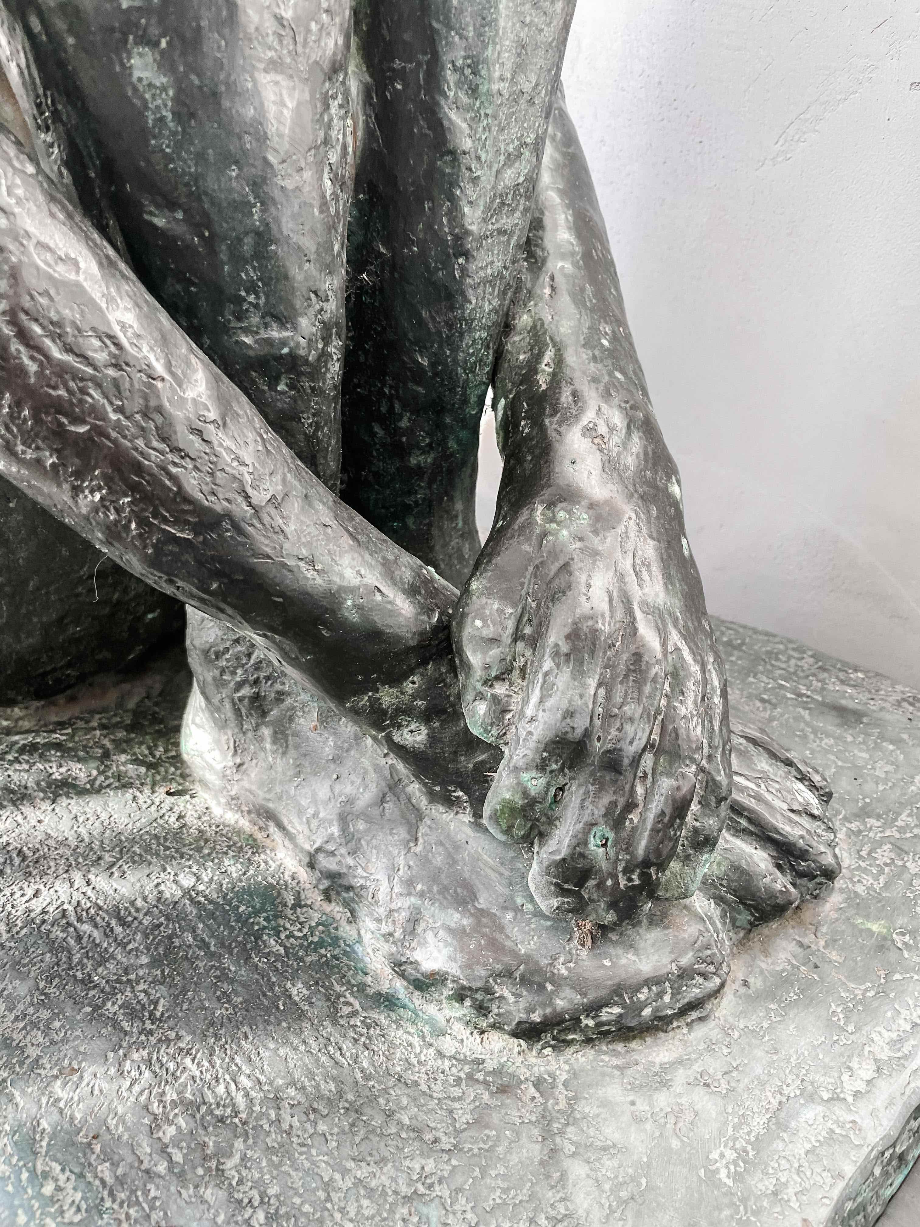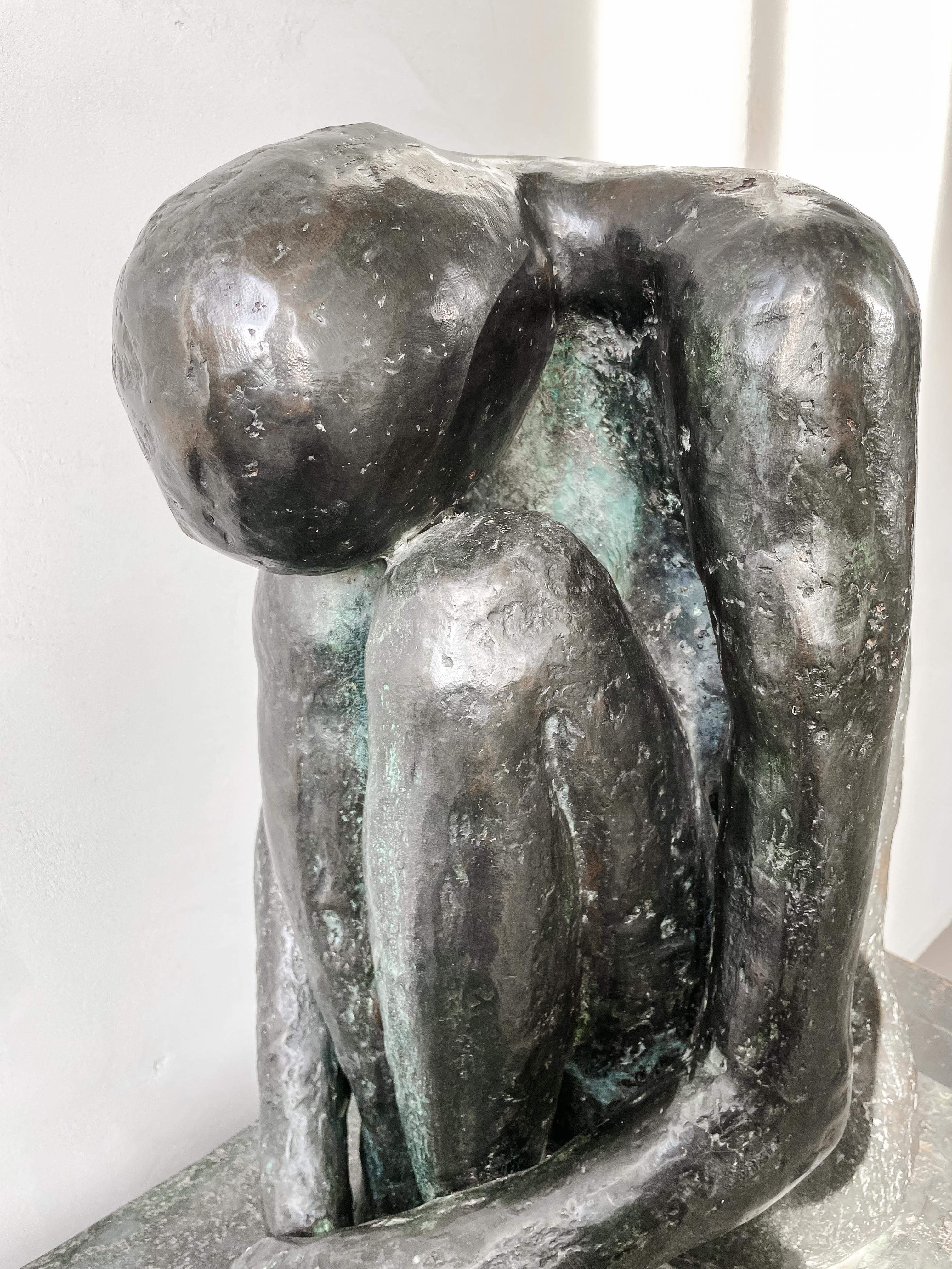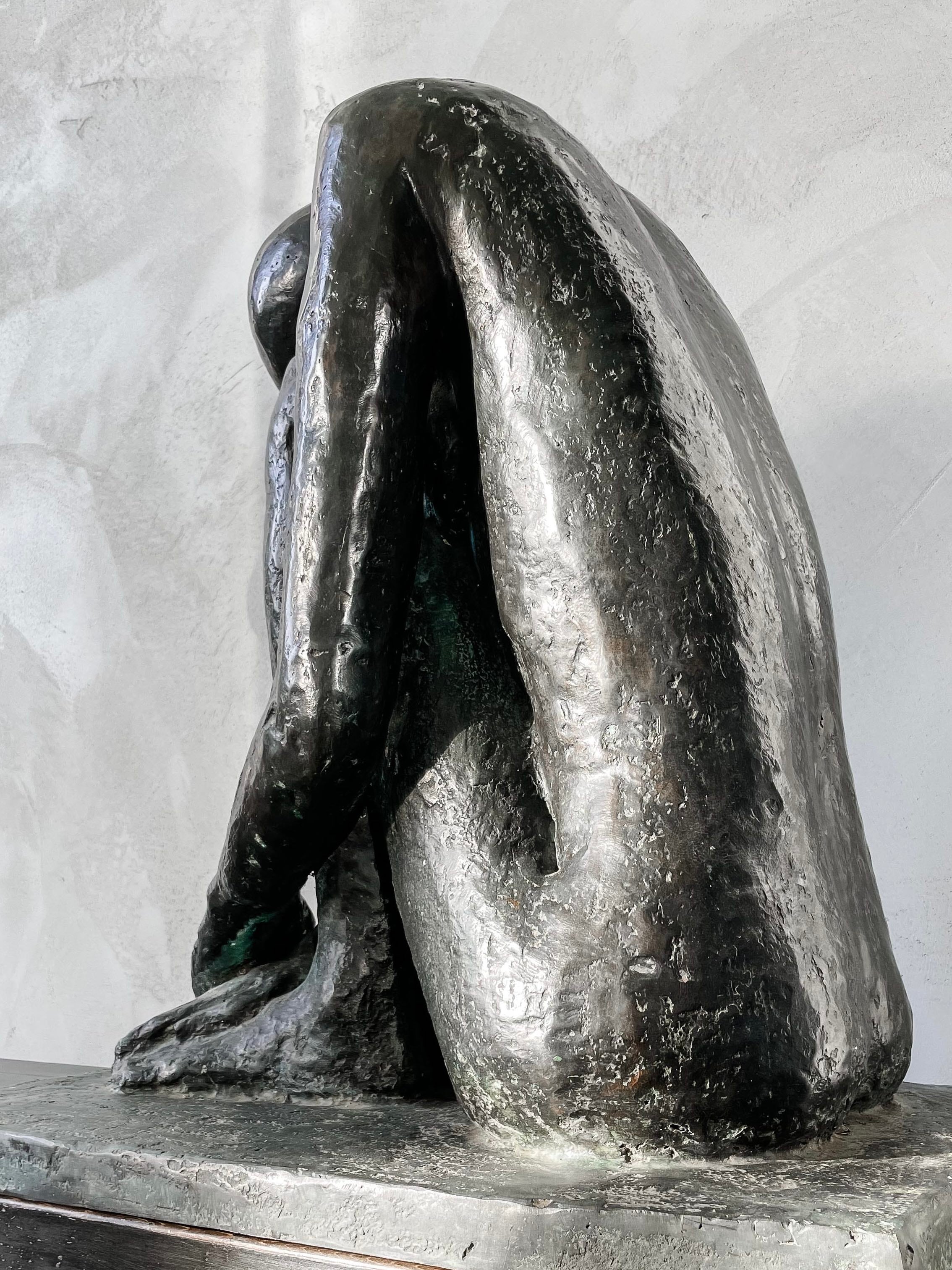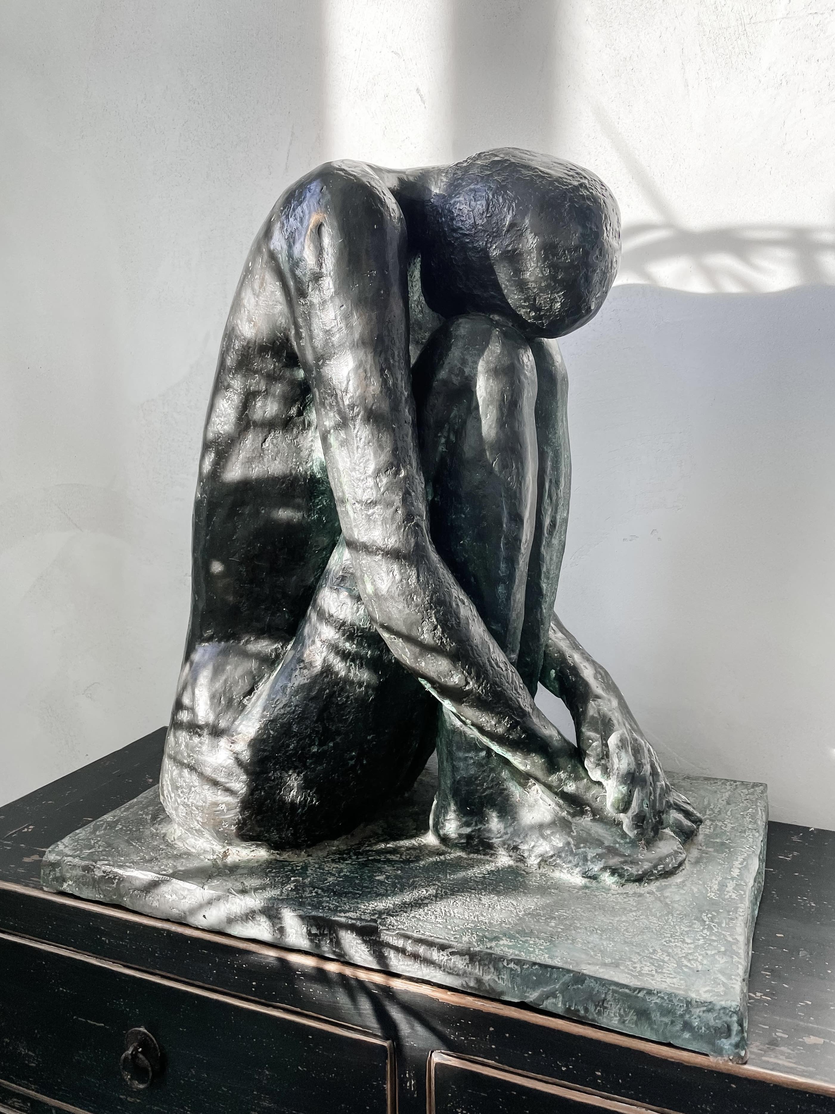 Beeindruckende Bronzeskulptur, die mit ihrer eleganten Form und zeitlosen Aura begeistert. Ihre genaue Herkunft und ihr Alter bleiben ein Rätsel, doch man vermutet, dass sie aus Frankreich stammt. Die wunderschöne Patina lässt auf ein Alter von etwa 50 bis 60 Jahren schließen – ein stiller Zeuge vergangener Jahrzehnte.