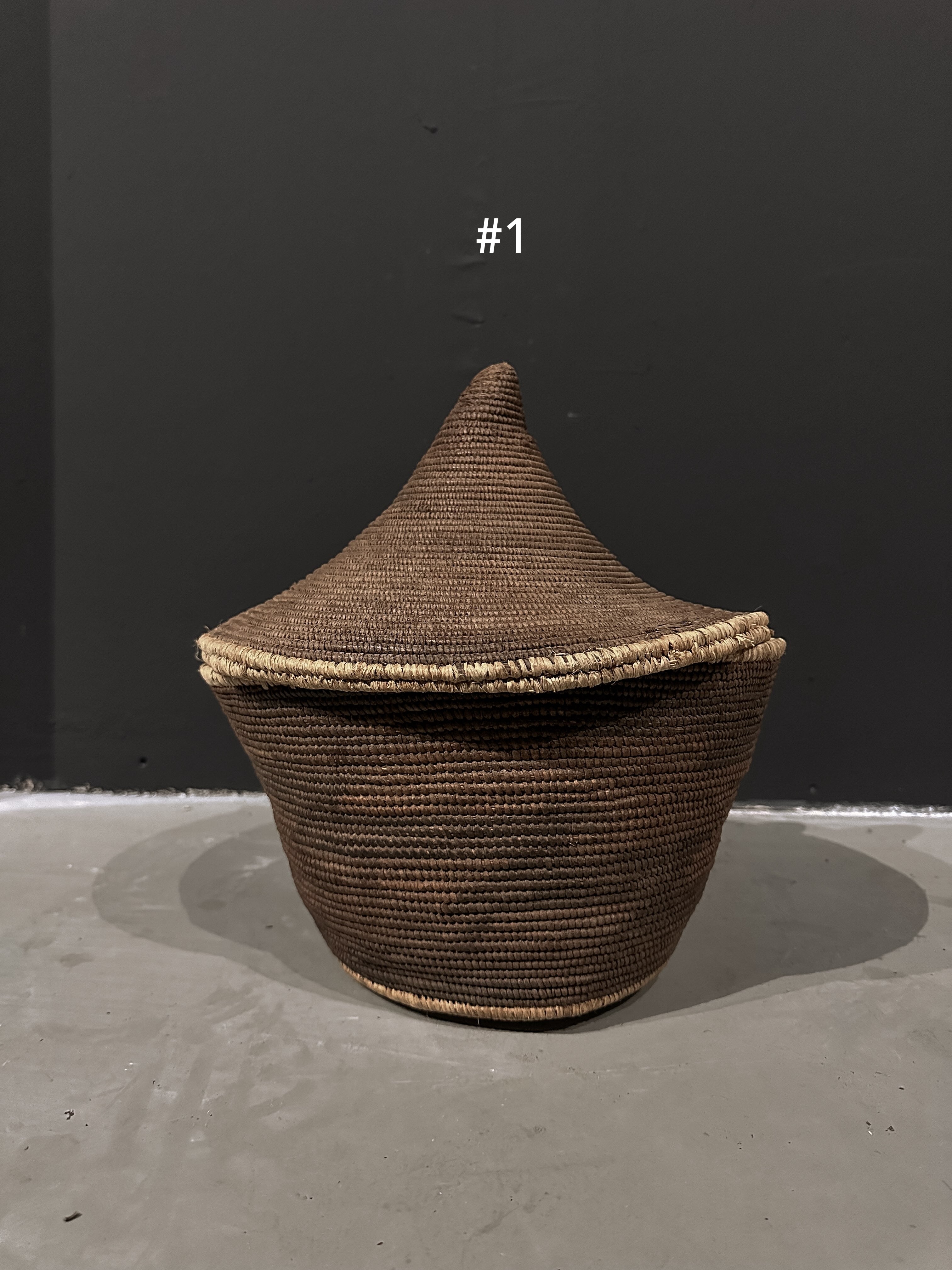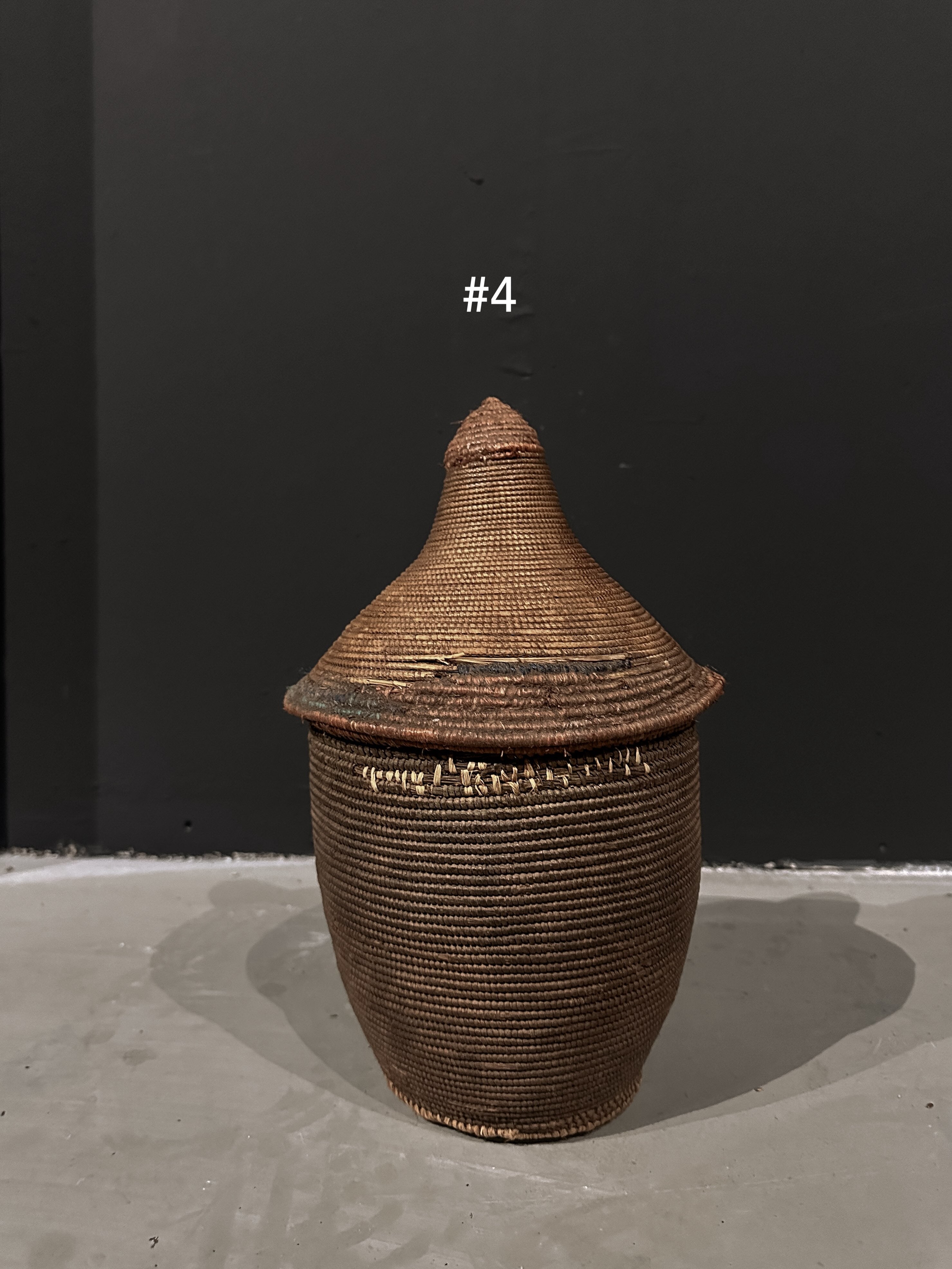 Charakteristisch für dies Körbe sind ihre aufwendigen Webmuster und die außerordentlich dichte und feine Webart.