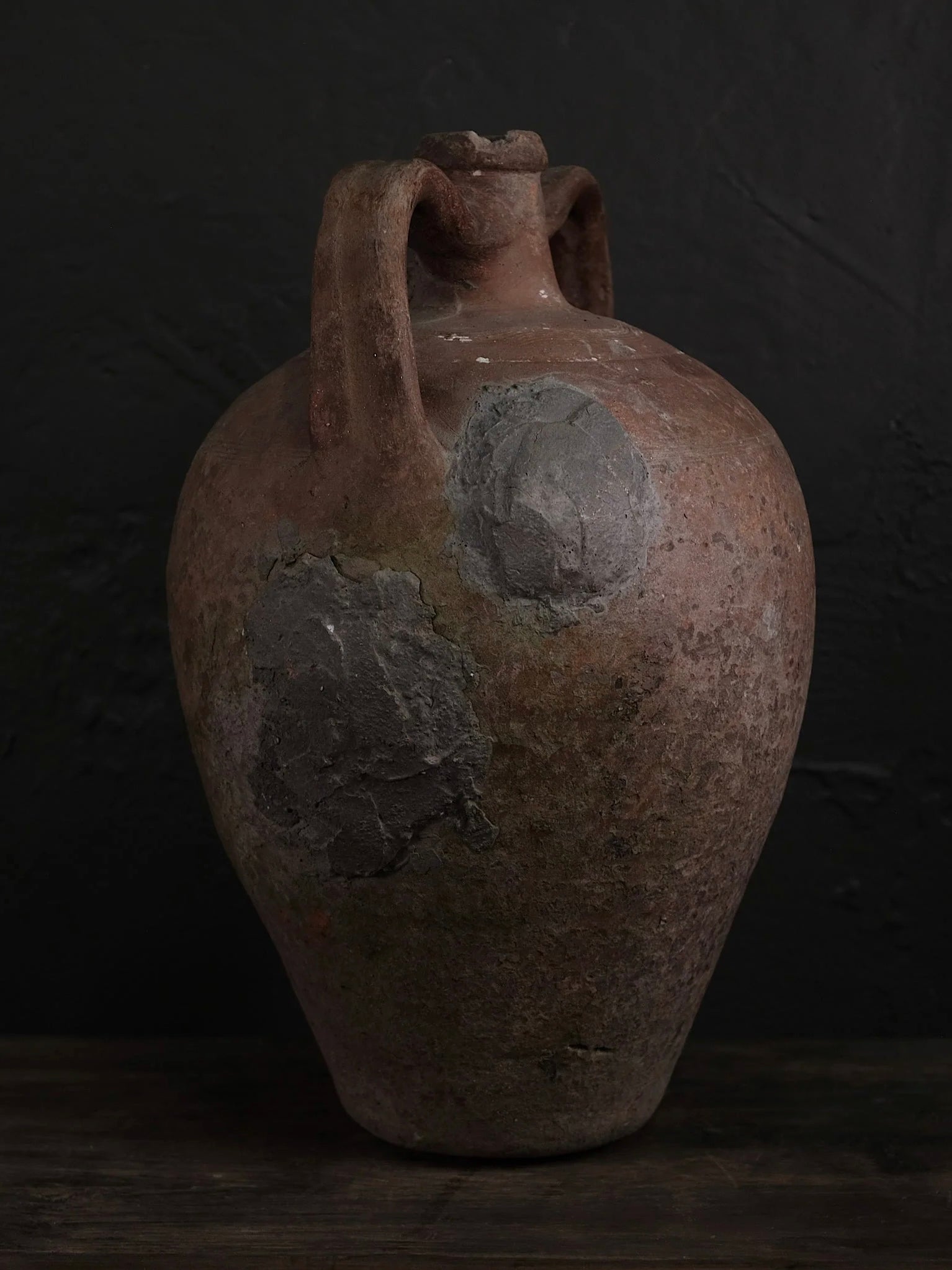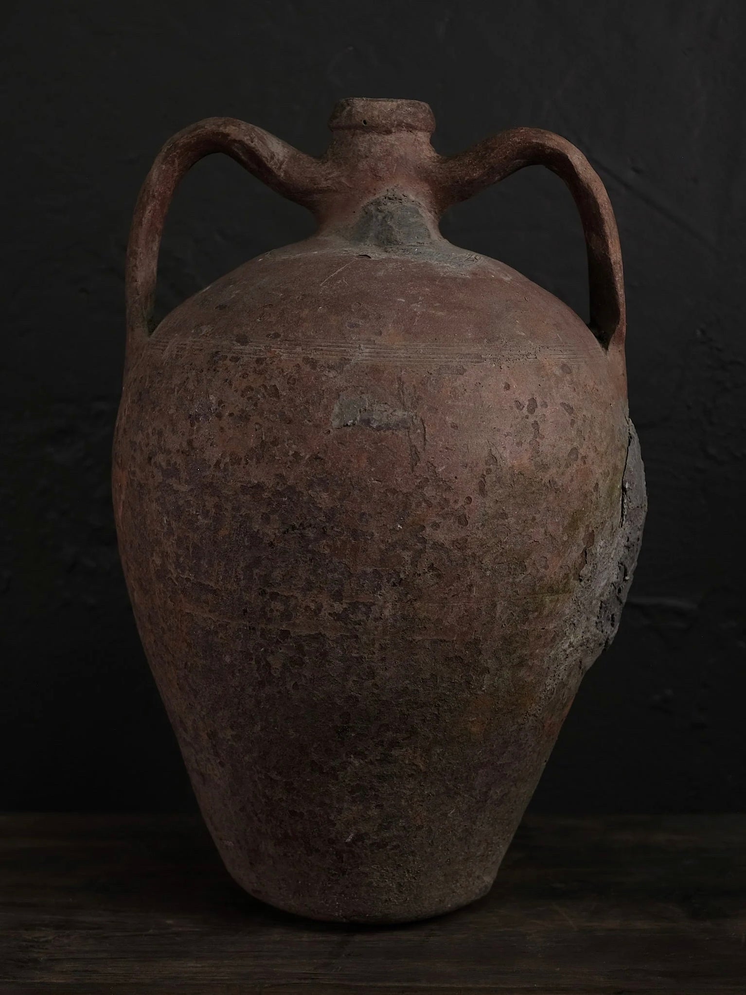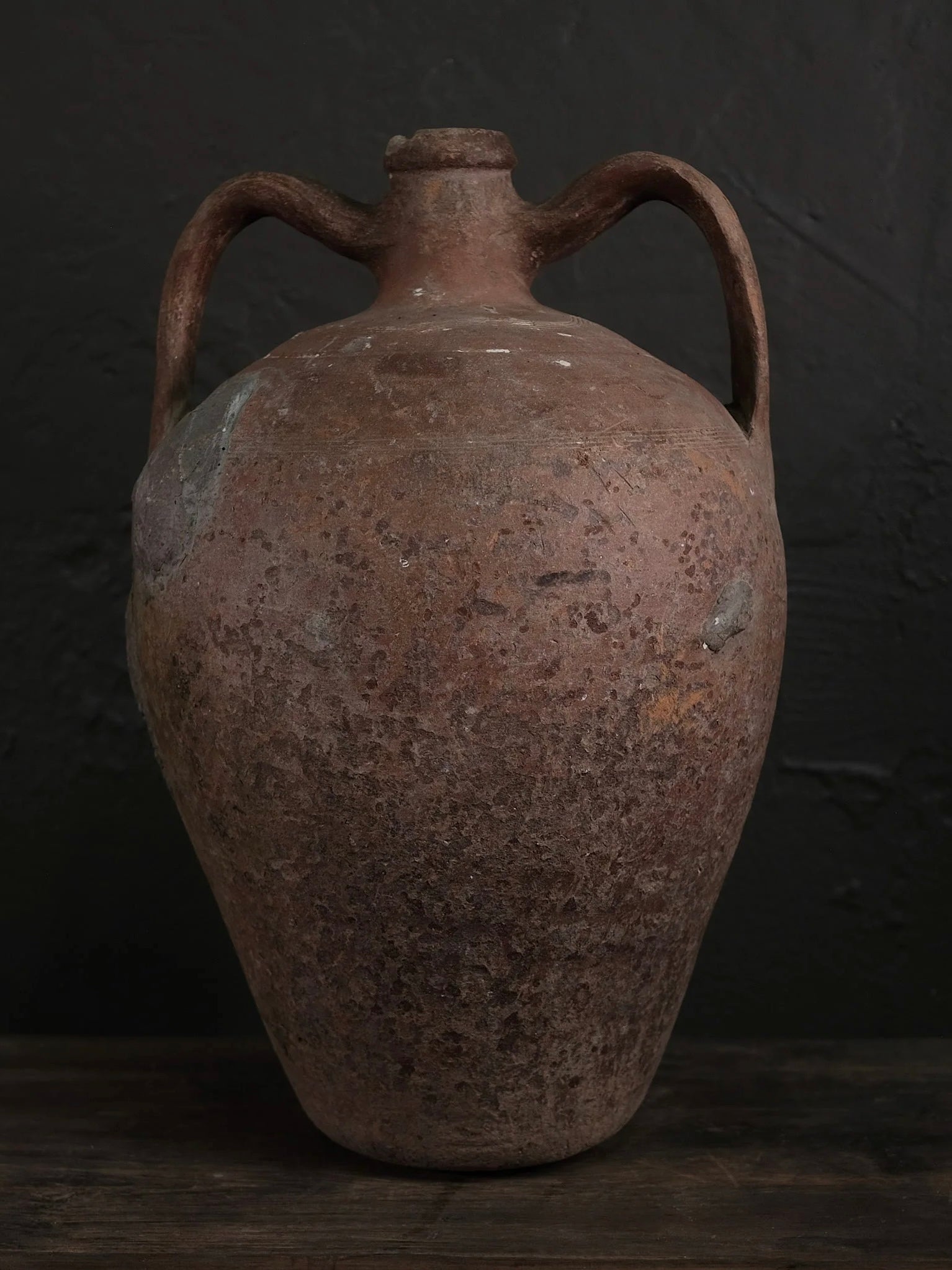 Alte türkische Amphora, aus der Zeit des beginnenden letzten Jahrhunderts, mit charakteristisch schmalem Hals und wunderschöner Terrakotta Farbe. Früher wurden diese Pötte zur Aufbewahrung von Wein verwendet.