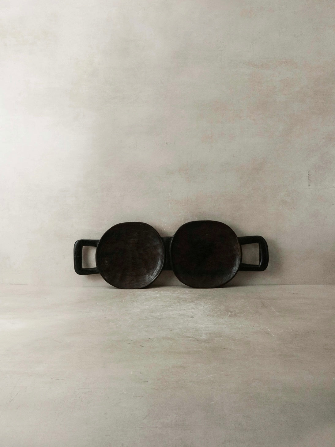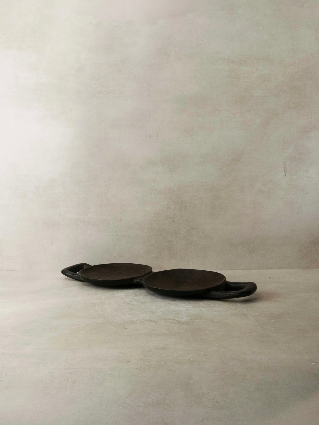 Außergewöhnliches, aus altem Zulu-Holz geschnitztes Tablett aus Südafrika. Diese Tabletts wurden verwendet, um verschiedene Arten von Lebensmitteln zu servieren. Dabei dienten Platten, die kopfüber auf eine andere Platte gelegt wurden, als Abdeckung.